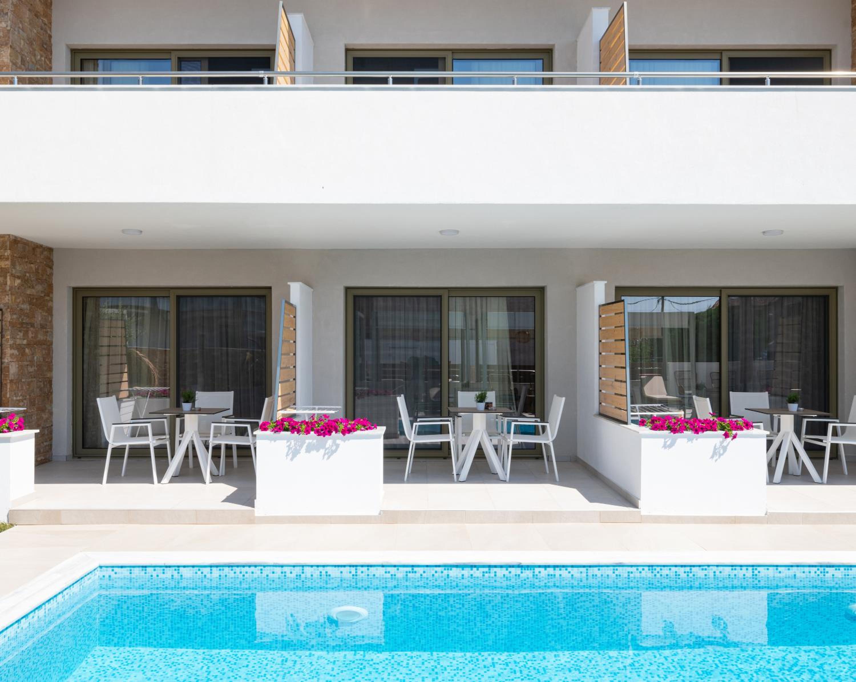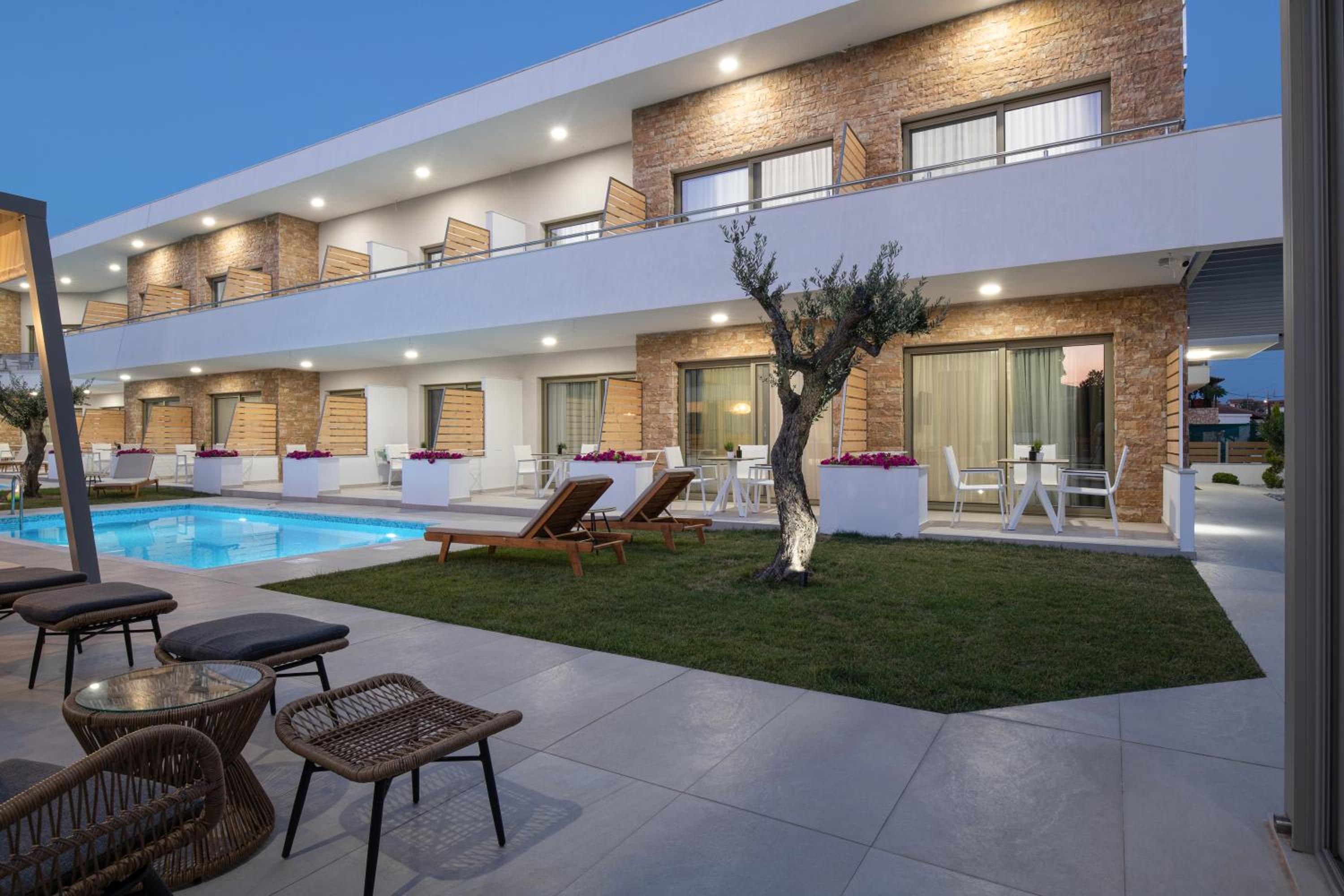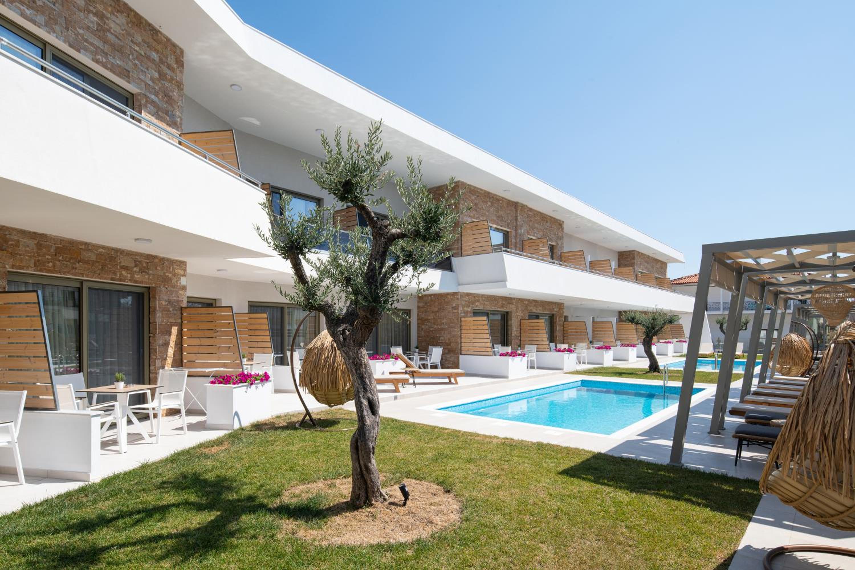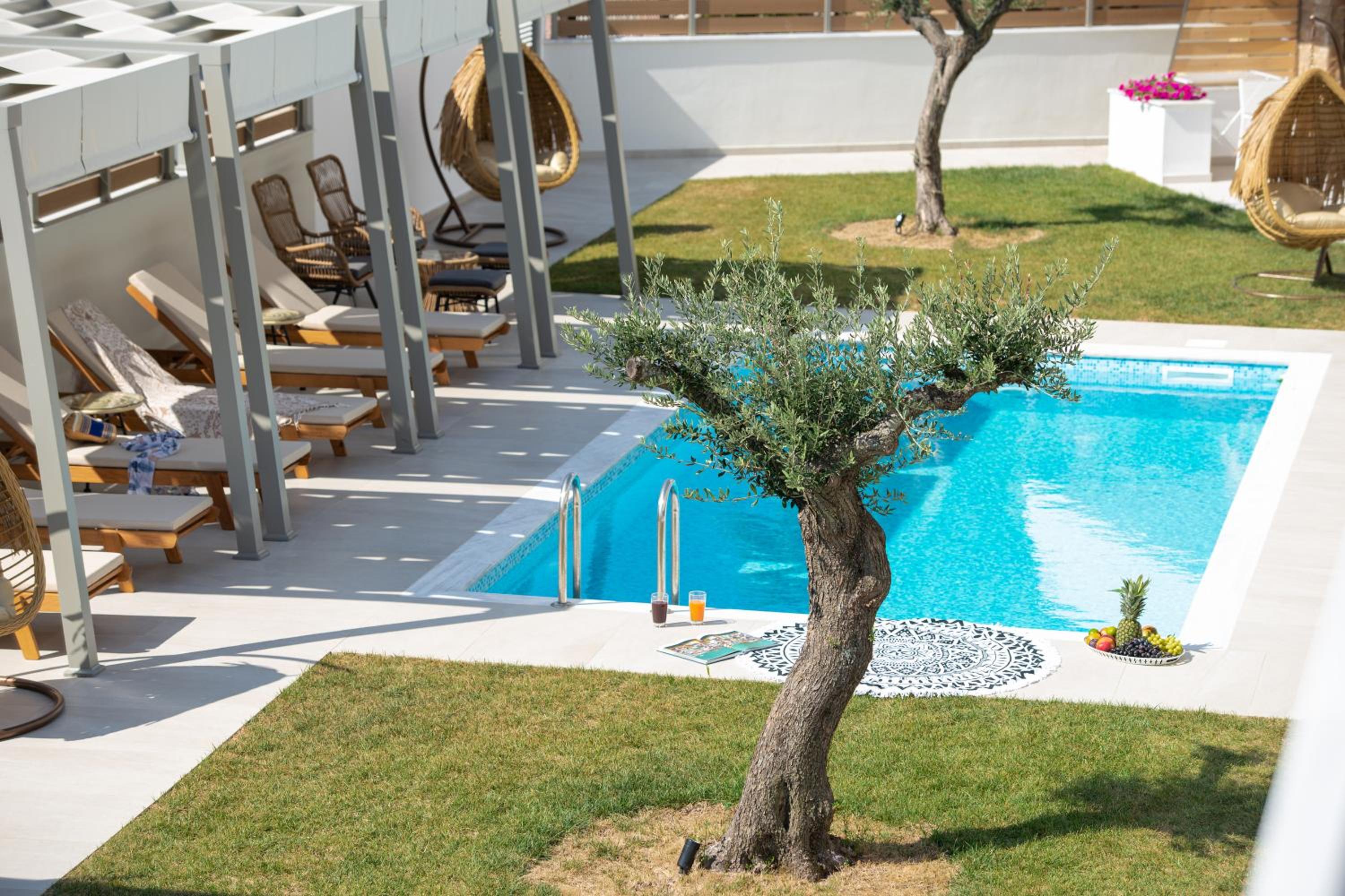 Very good hotel with comfortable beds and spacious rooms. The whole environment is beautifully maintained, with olive trees in the garden creating a very relaxing atmosphere. The swimming pool area has clear rules, and all guests were respectful of them, which made it quiet and enjoyable. There is a large parking area, and the location is convenient – about 10 minutes’ walk to the center and very close to two lovely tavernas, a bakery, and several shop.