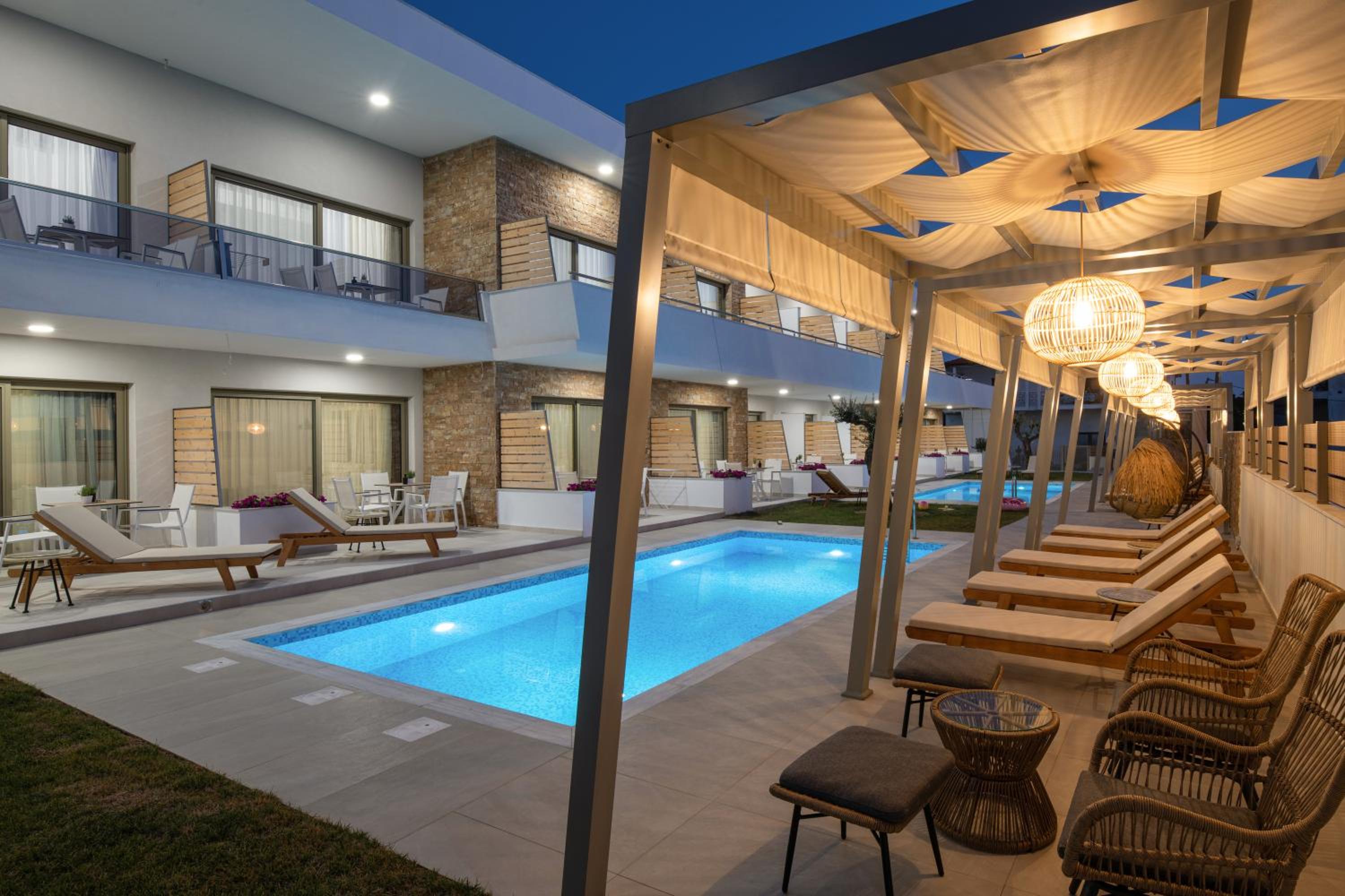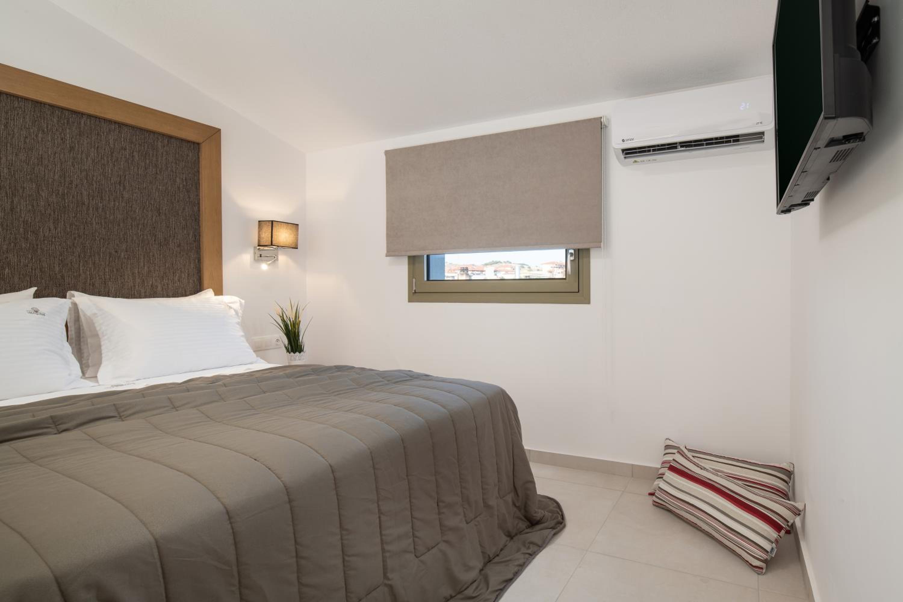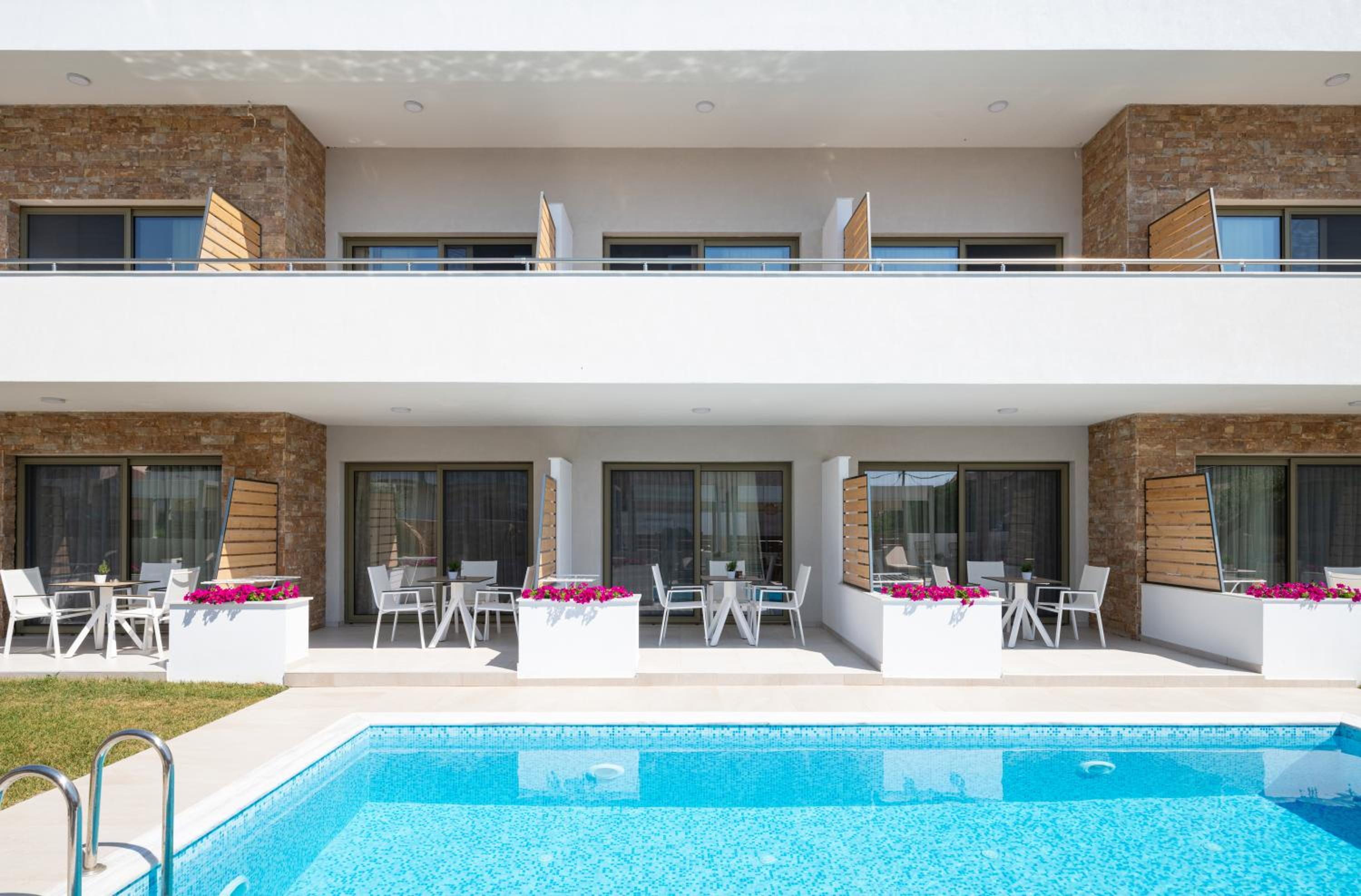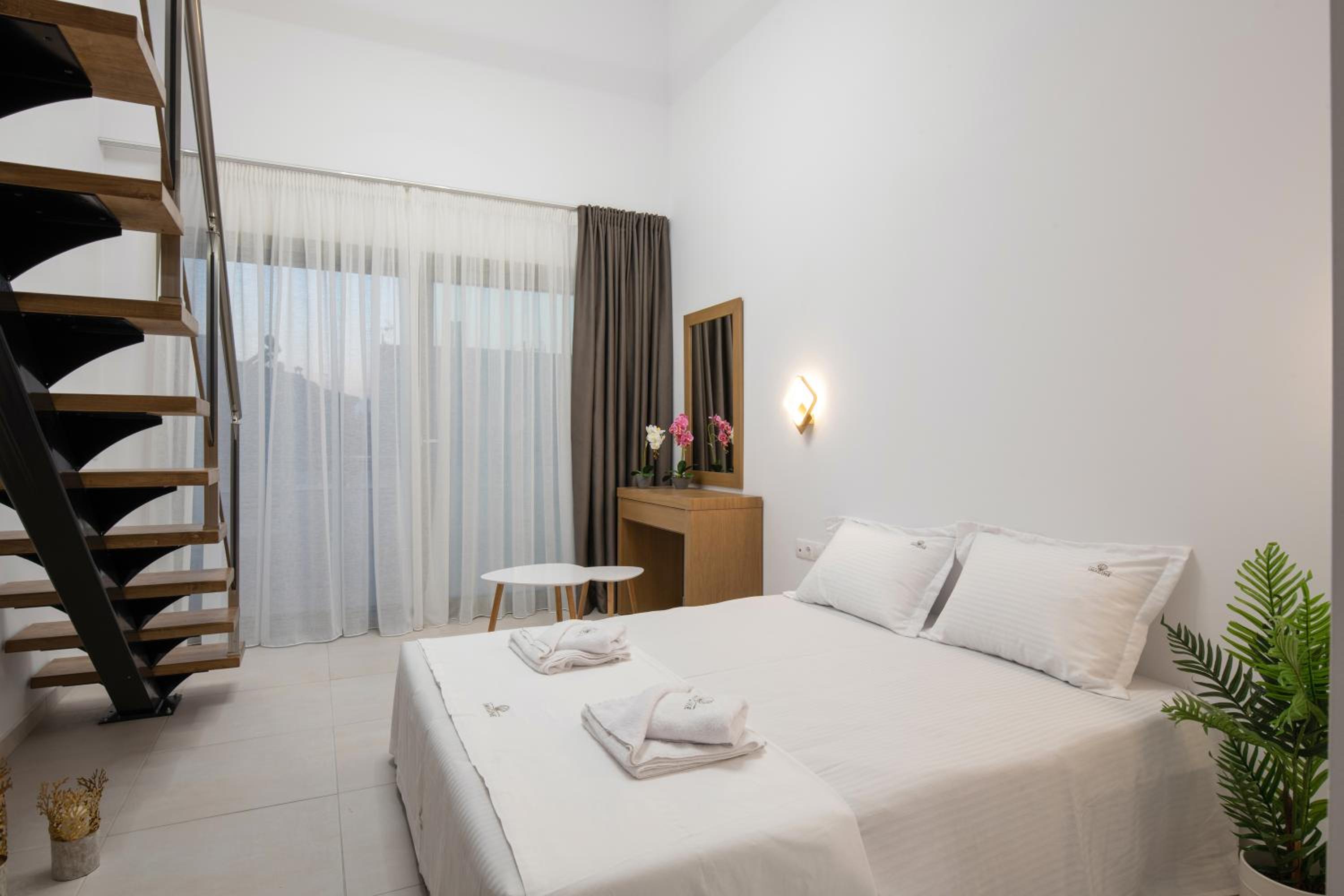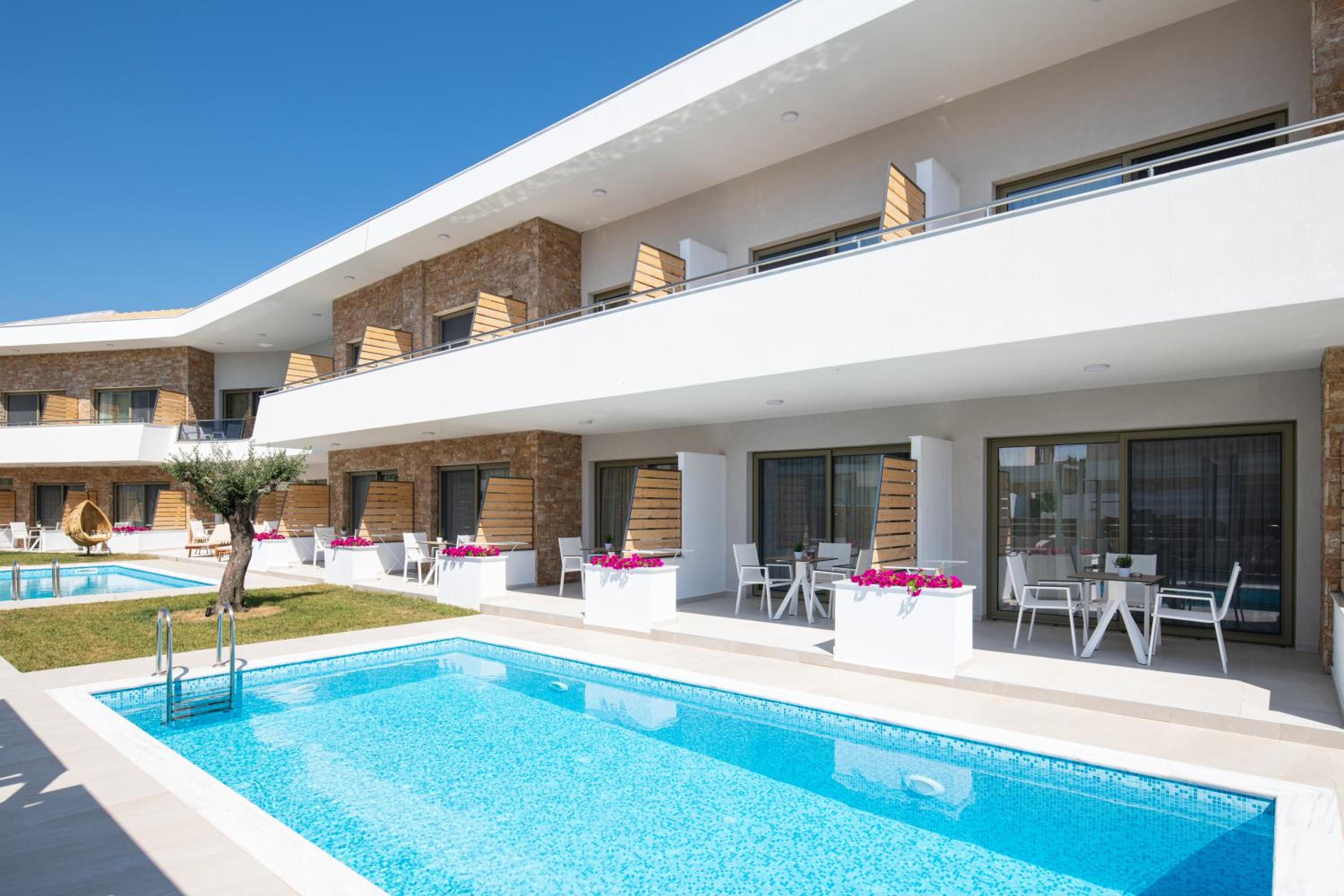Very good hotel with comfortable beds and spacious rooms. The whole environment is beautifully maintained, with olive trees in the garden creating a very relaxing atmosphere. The swimming pool area has clear rules, and all guests were respectful of them, which made it quiet and enjoyable. There is a large parking area, and the location is convenient – about 10 minutes’ walk to the center and very close to two lovely tavernas, a bakery, and several shop.