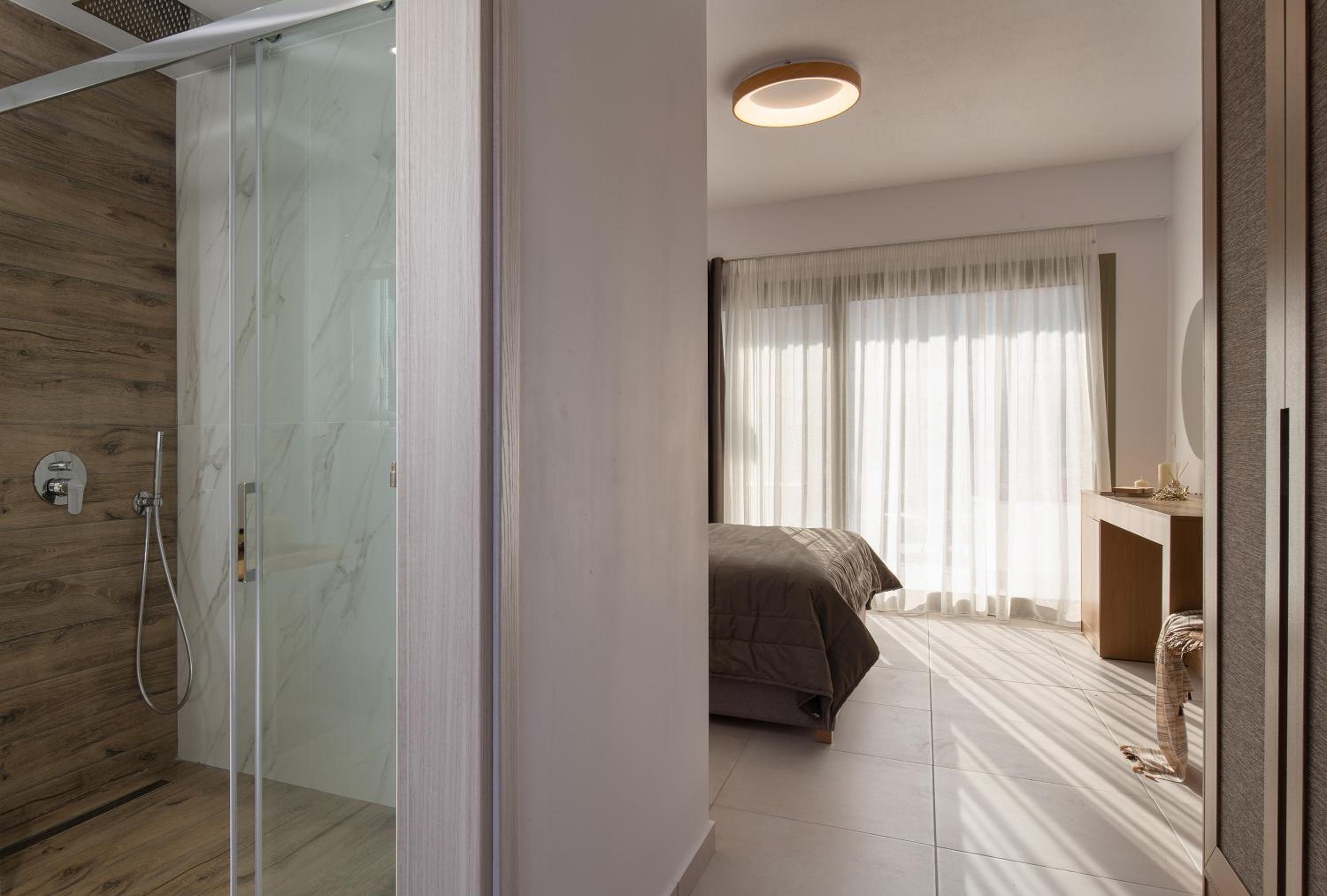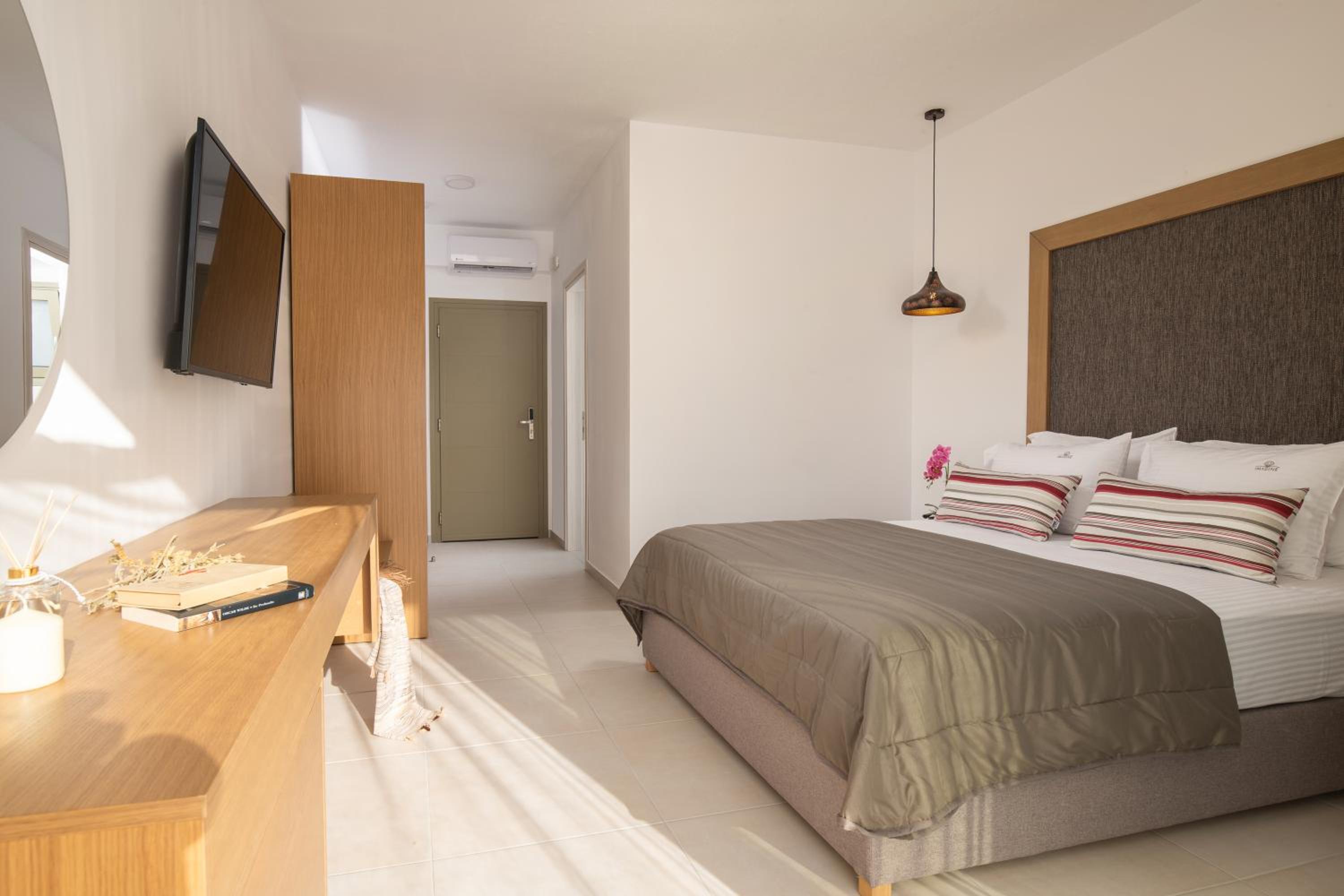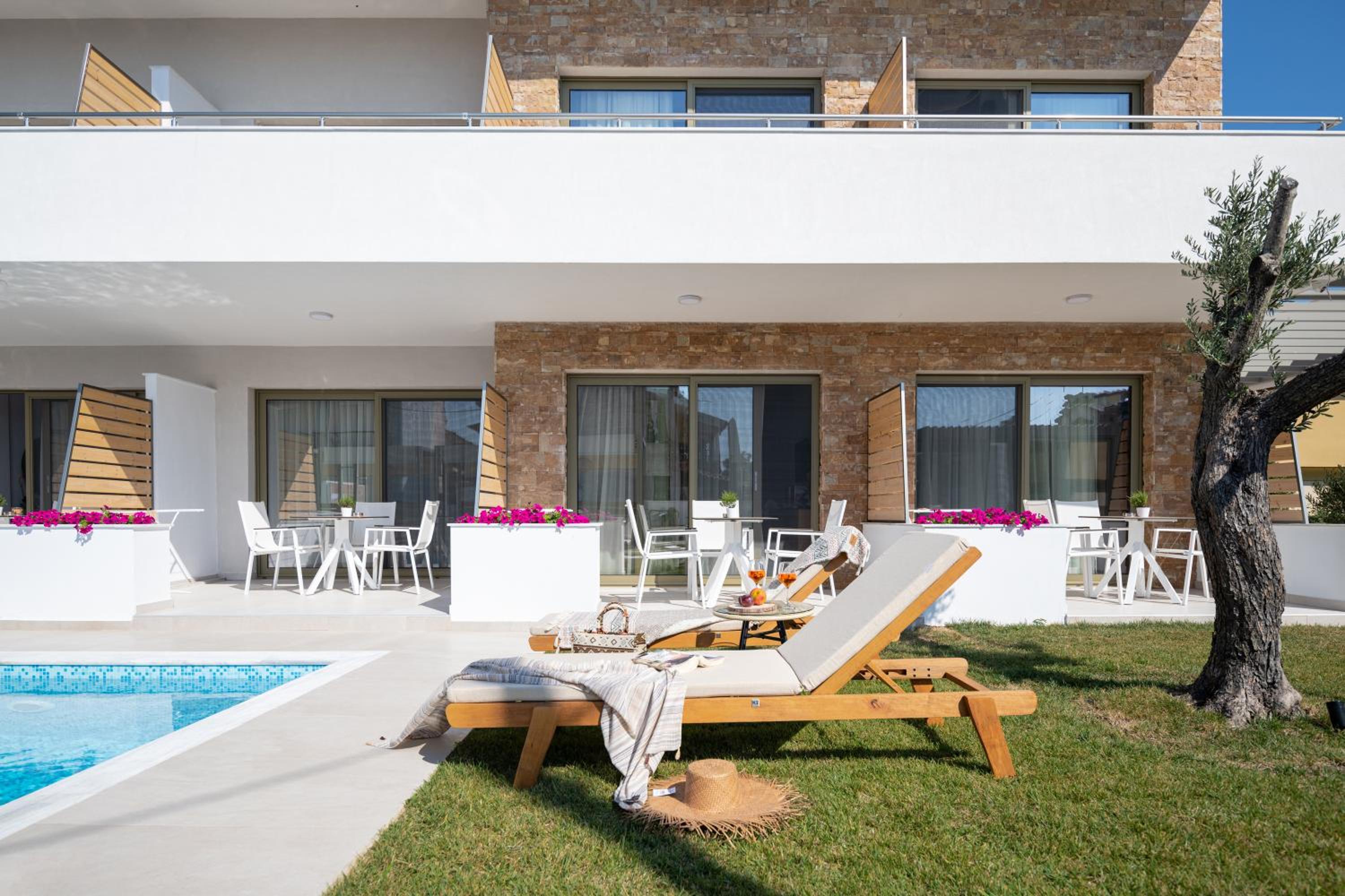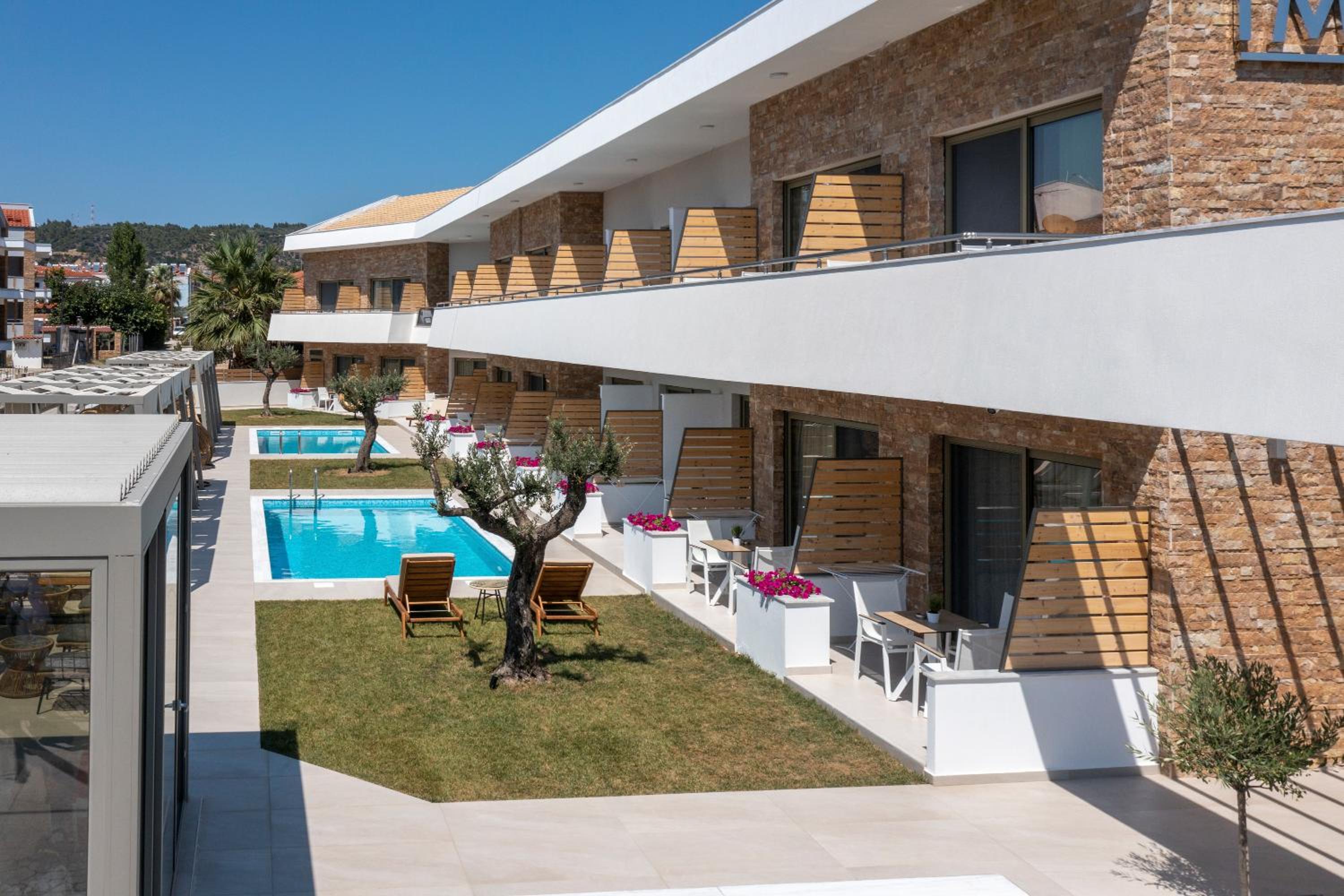 Very good hotel with comfortable beds and spacious rooms. The whole environment is beautifully maintained, with olive trees in the garden creating a very relaxing atmosphere. The swimming pool area has clear rules, and all guests were respectful of them, which made it quiet and enjoyable. There is a large parking area, and the location is convenient – about 10 minutes’ walk to the center and very close to two lovely tavernas, a bakery, and several shop.
