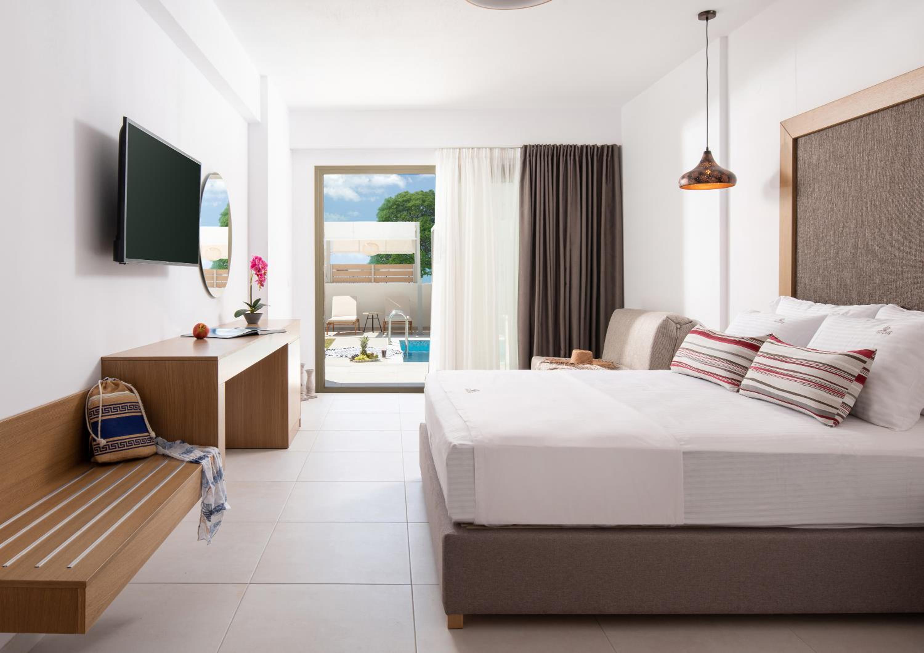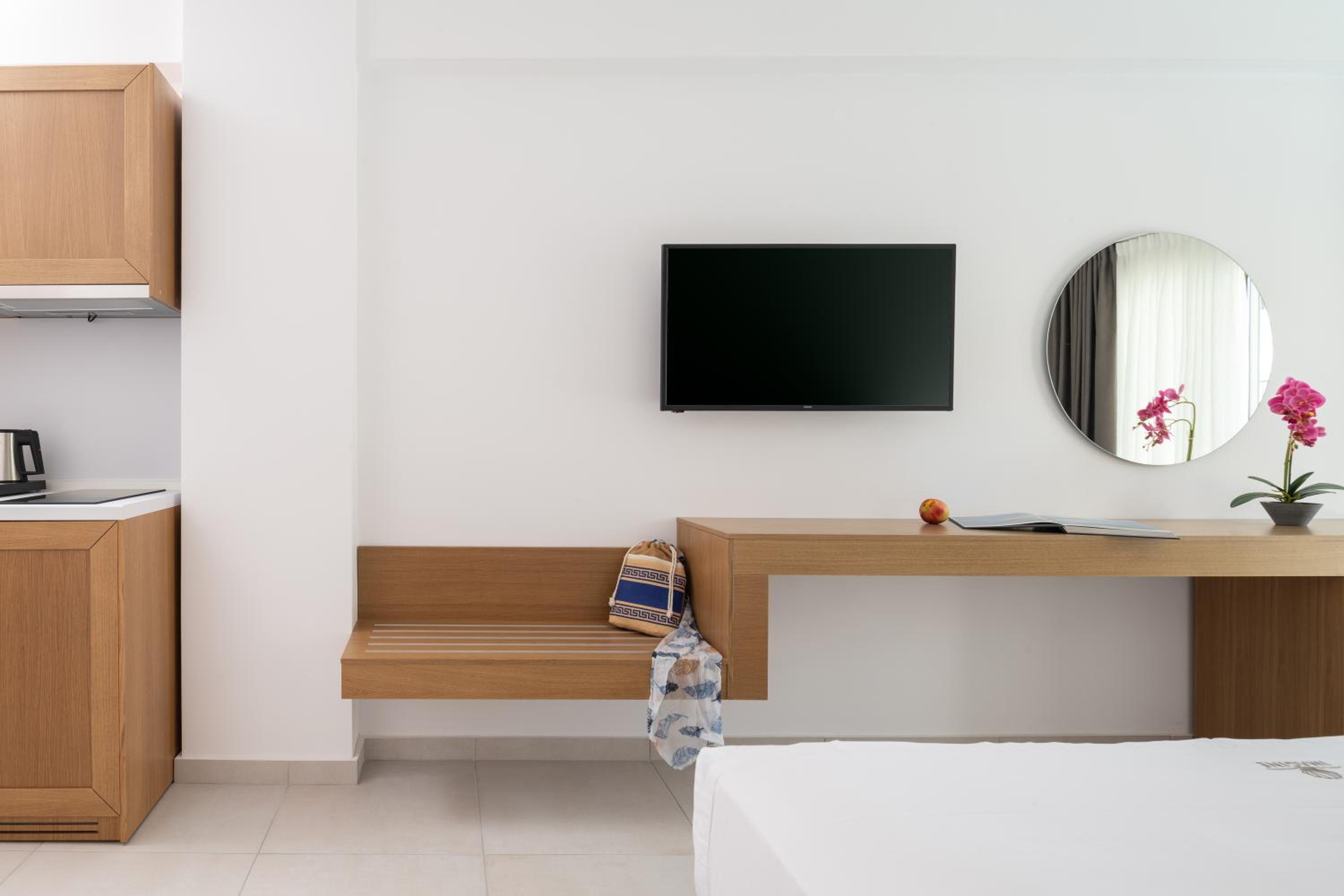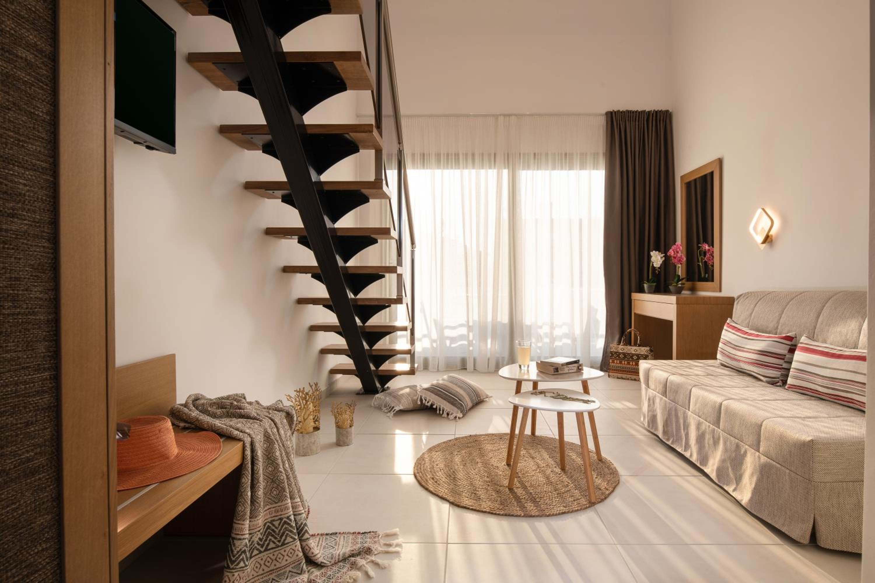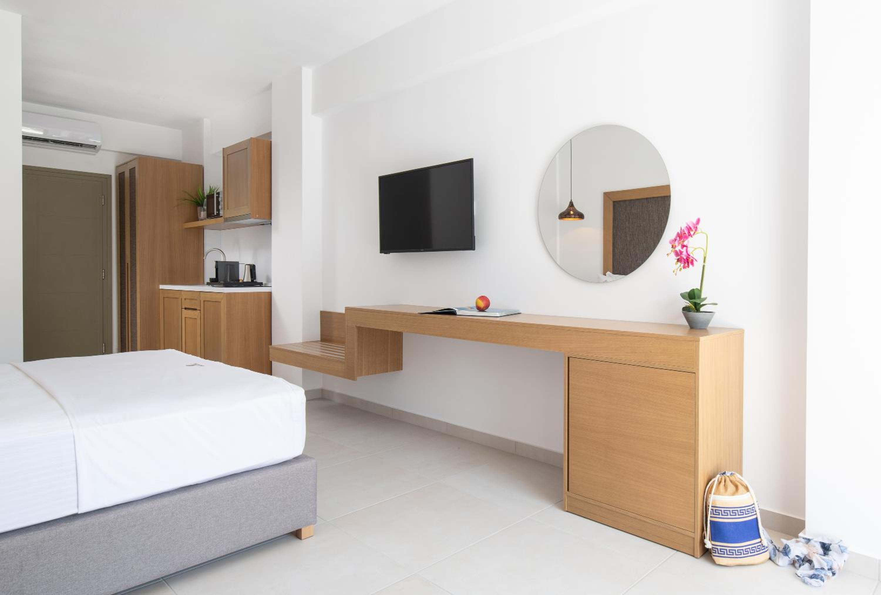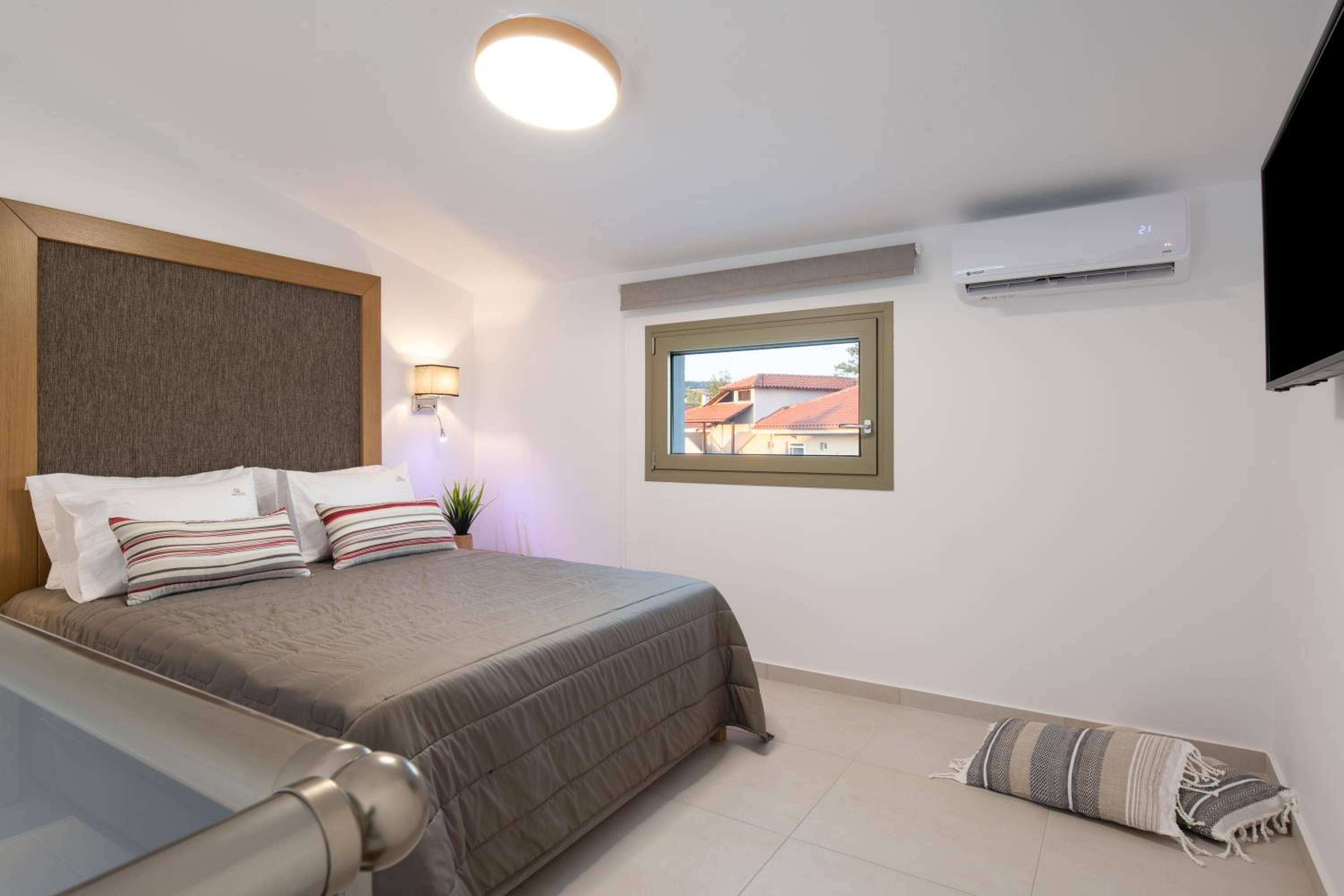 Very good hotel with comfortable beds and spacious rooms. The whole environment is beautifully maintained, with olive trees in the garden creating a very relaxing atmosphere. The swimming pool area has clear rules, and all guests were respectful of them, which made it quiet and enjoyable. There is a large parking area, and the location is convenient – about 10 minutes’ walk to the center and very close to two lovely tavernas, a bakery, and several shop.