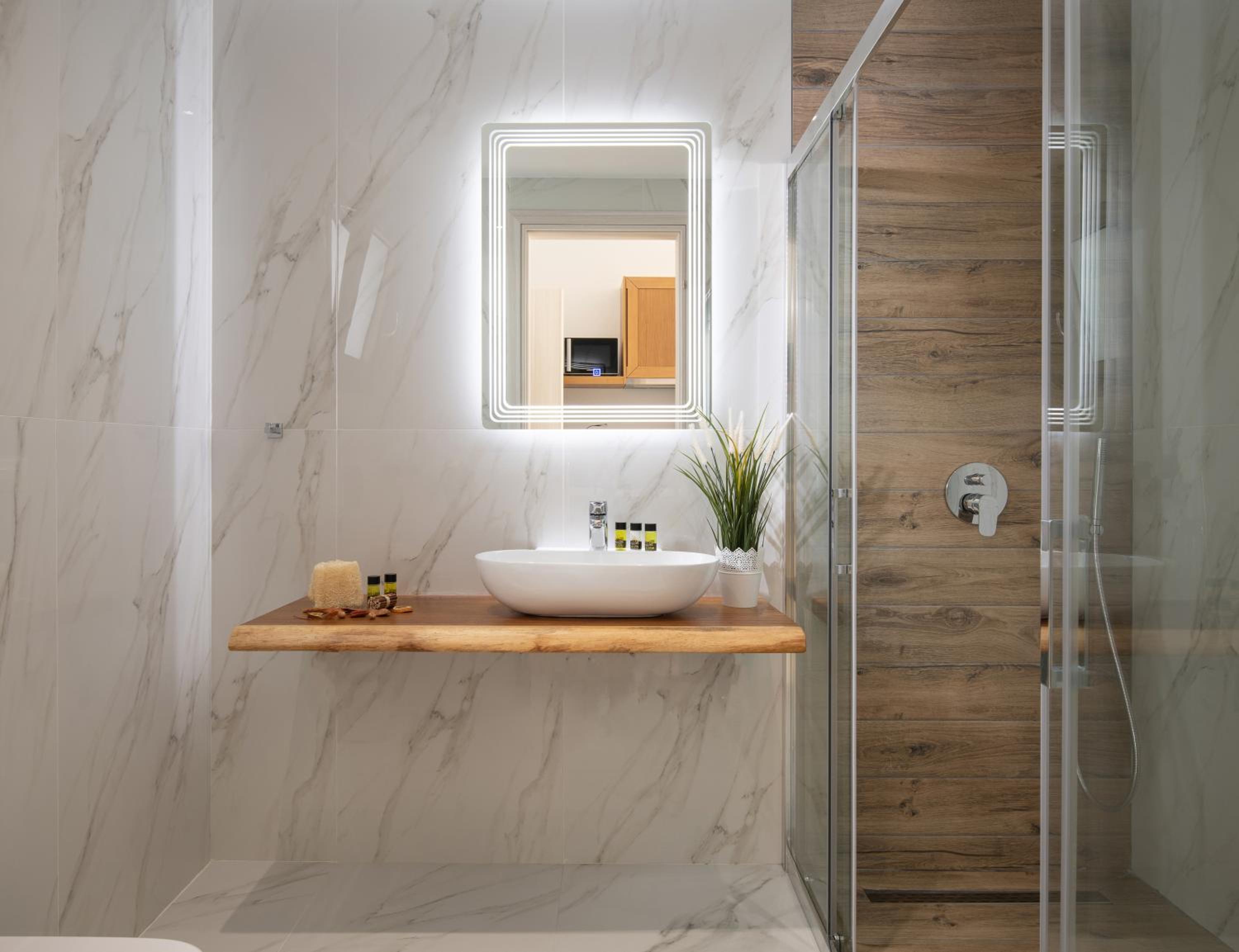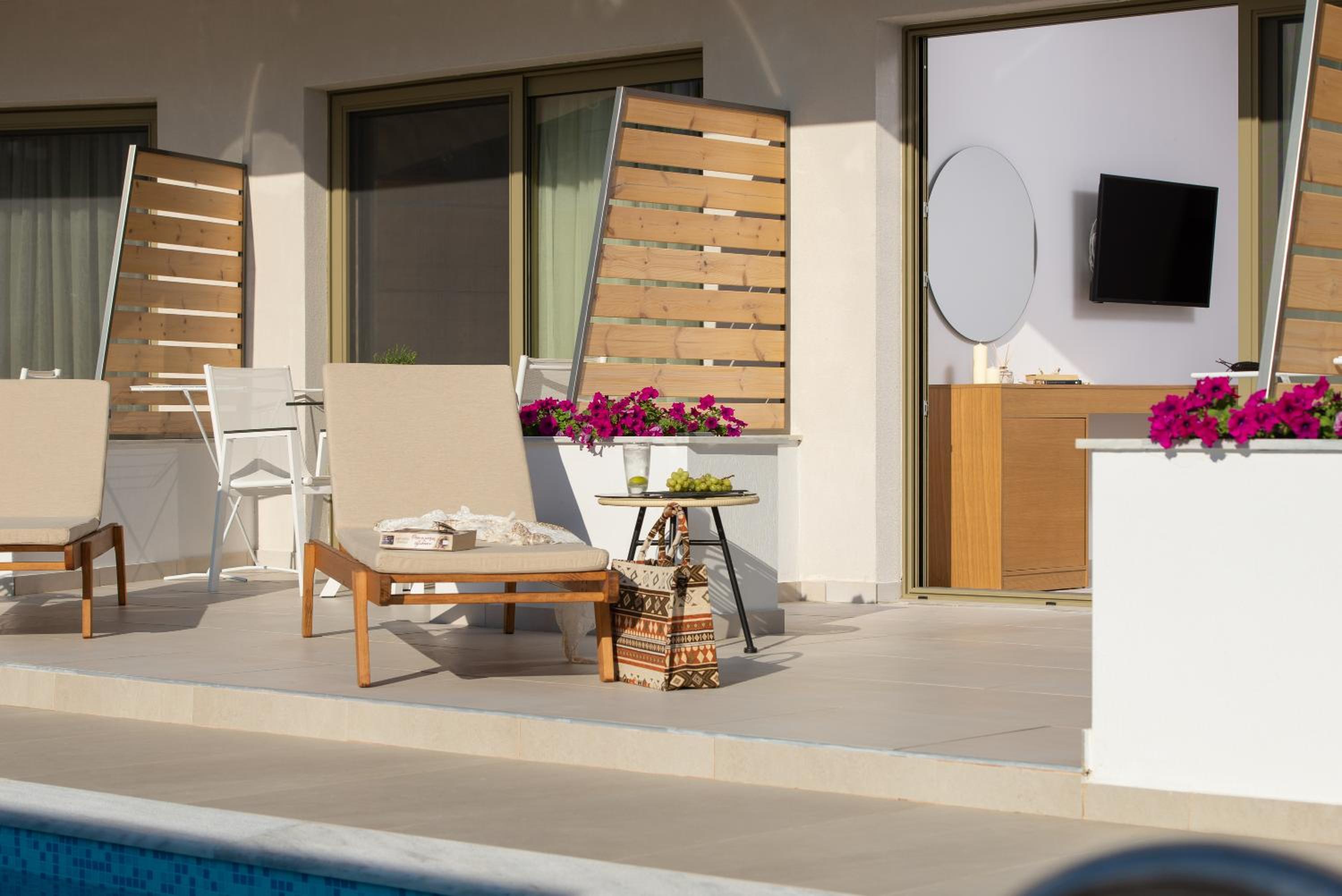 We truly enjoyed our time! The room was very spacious, clean and well-equipped with all amenities. The bathroom was also large and comfortable. The terrace and the view of the pool were very pleasant. The hotel has a sufficiently large private parking area reserved only for guests, so parking was never a problem. On our last night, we were pleasantly surprised with a complimentary treat, which was a very kind gesture. We are extremely satisfied and would definitely visit again.