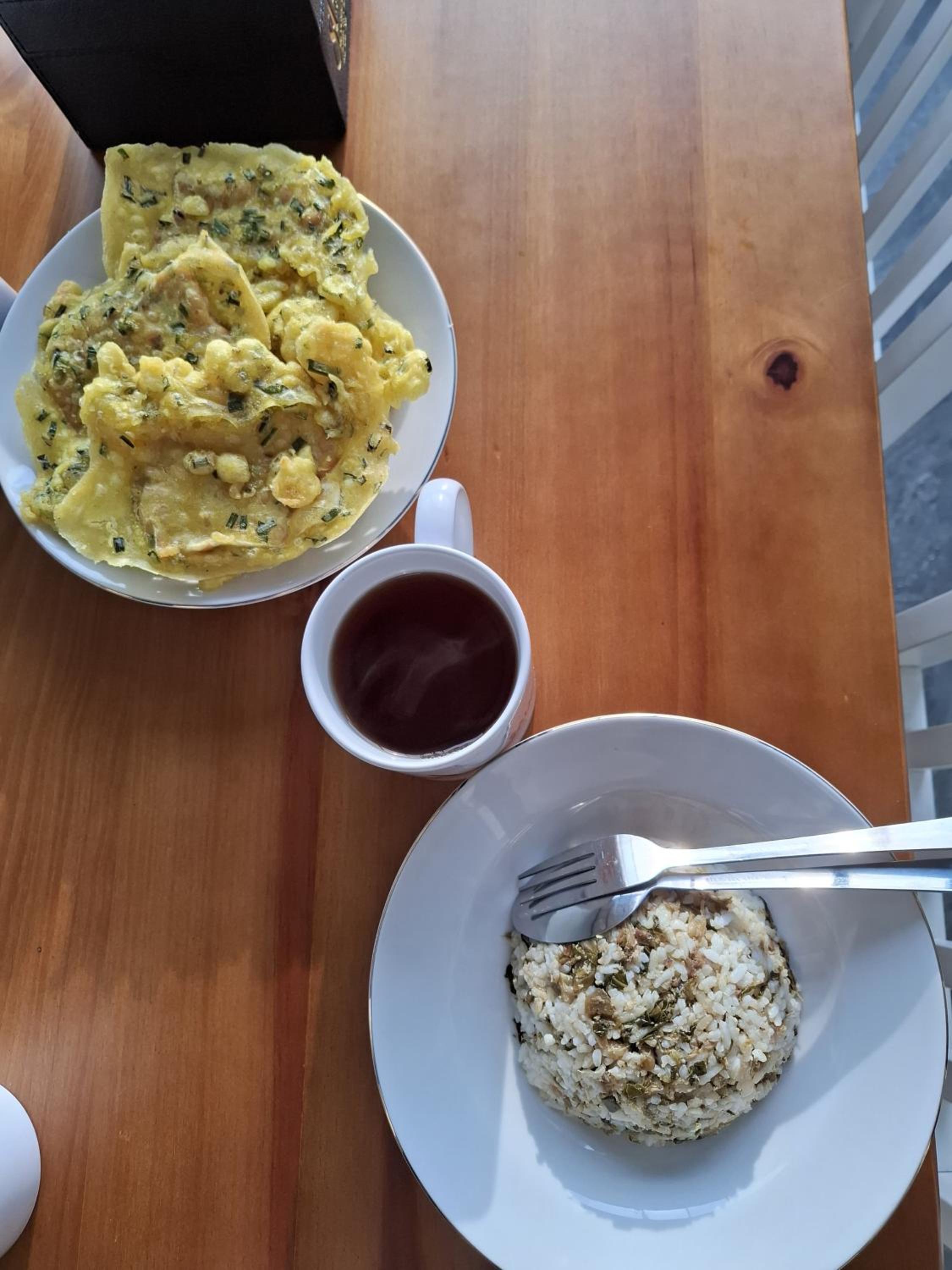 Ontbijt was karig. Witte rijst met een ei of witte boterham met jam of hagelslag.