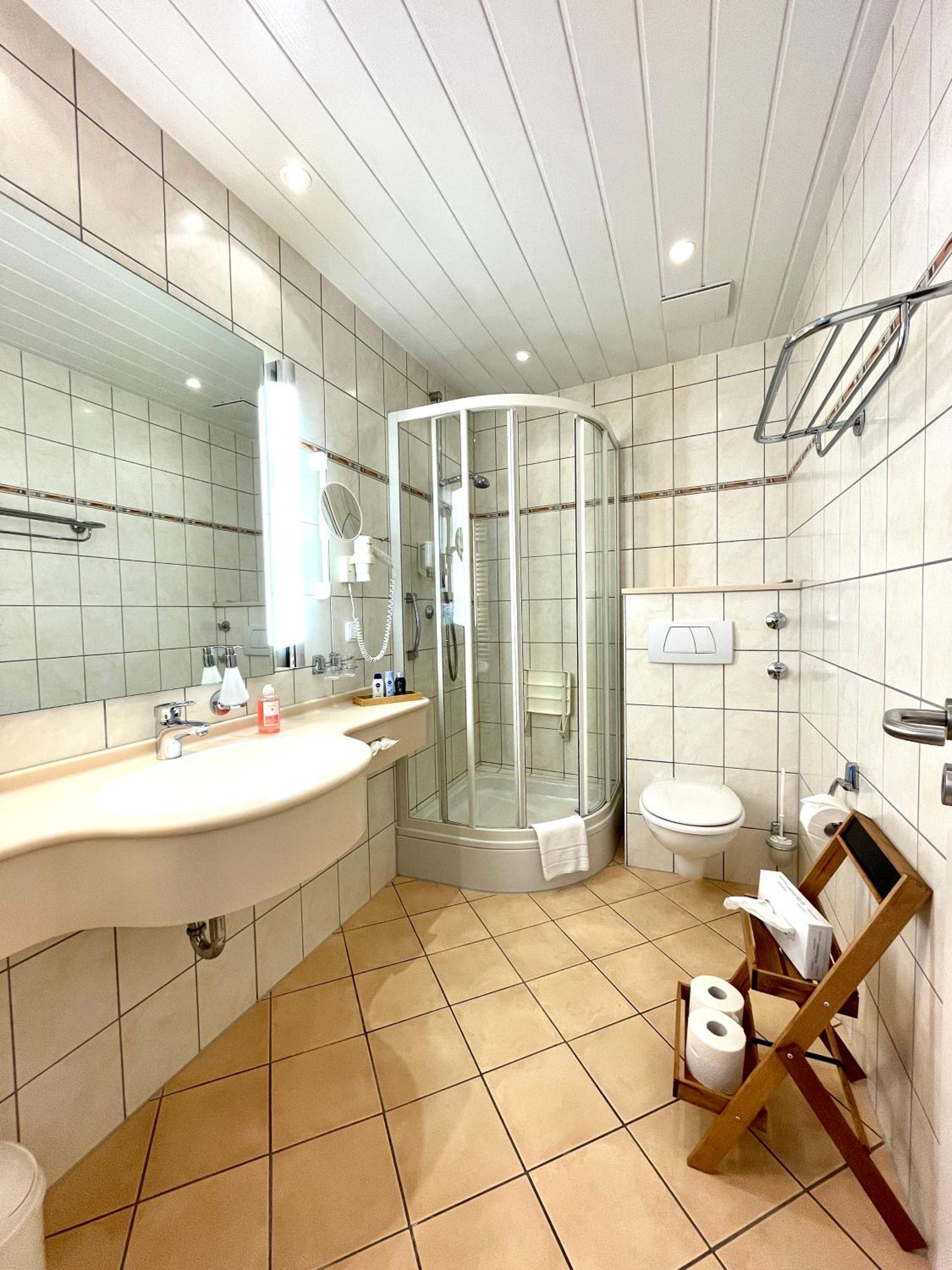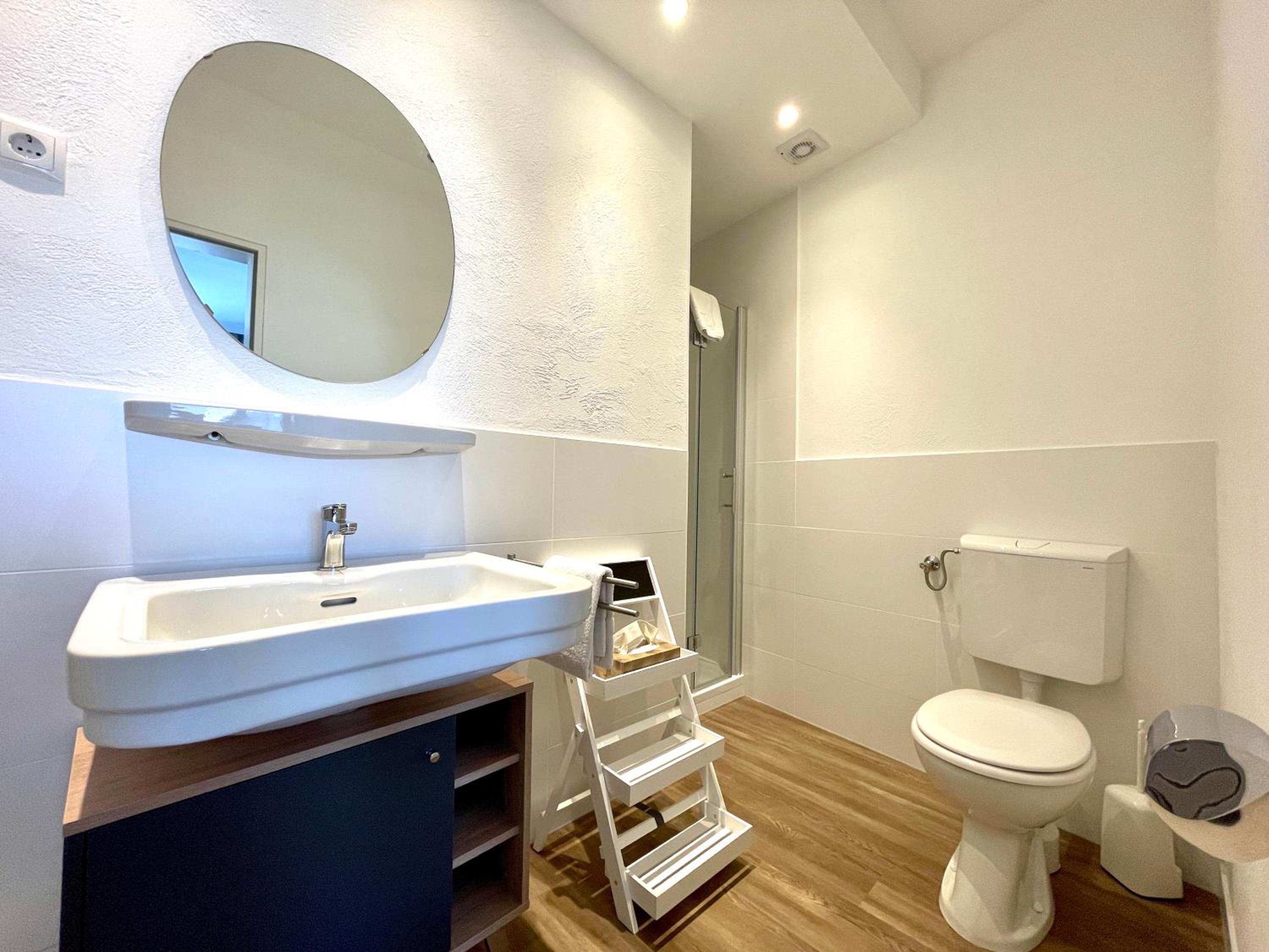 Das Bad ist für XL- Menschen ziemlich klein, aber noch machbar.