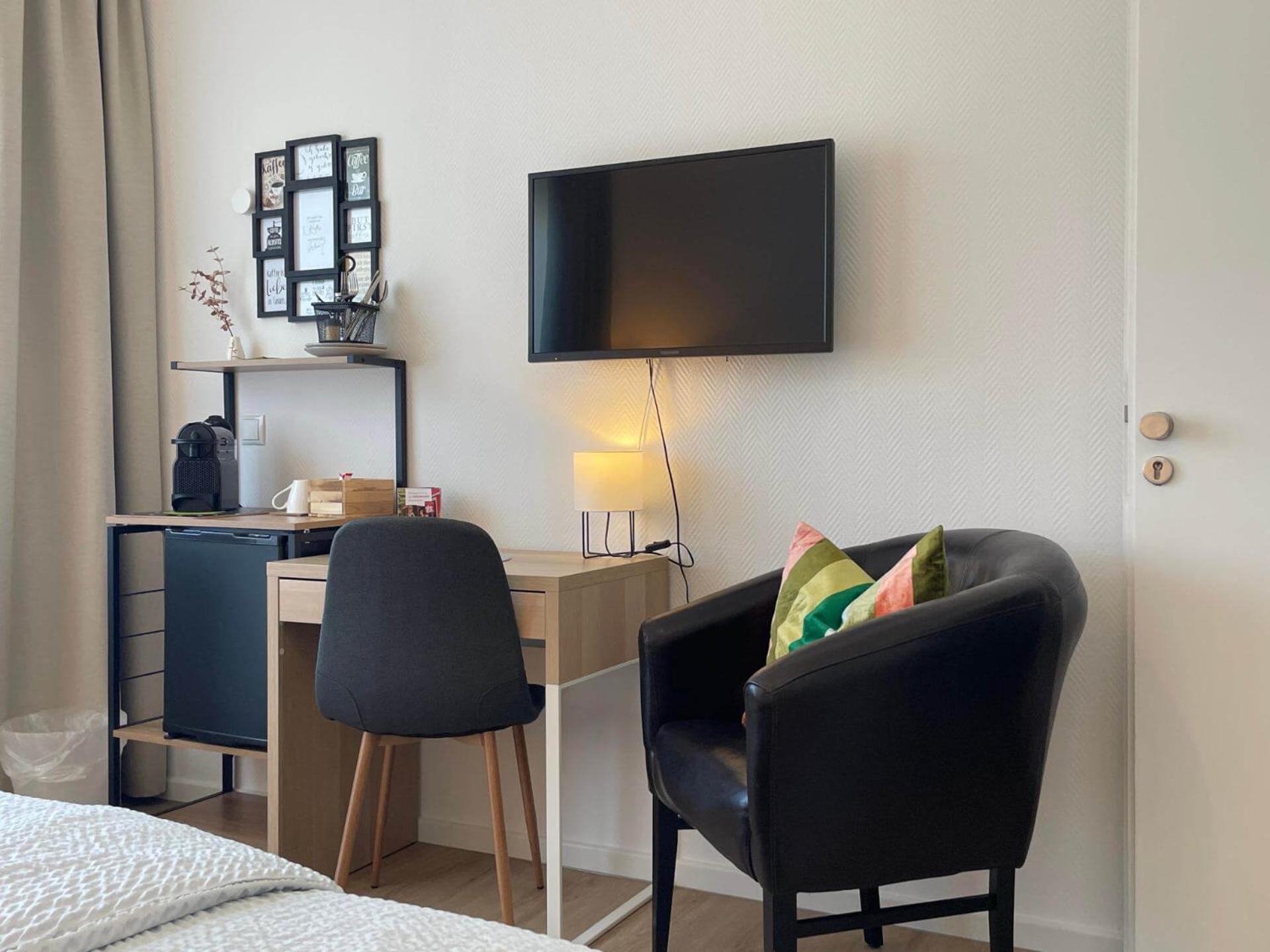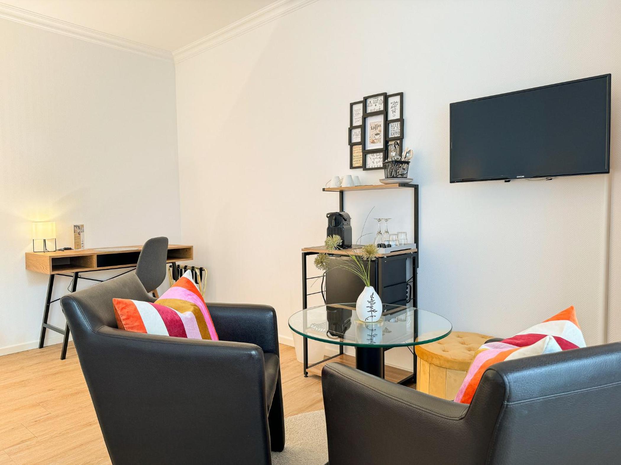 Zentrale Lage, Ankunft und Empfang freundlich und problemlos, Kühlschrank, Toaster, tolles Zimmer, Kaffeetabsmaschine zur Verfügung, bequemes Bett, Fernseher in jedem Raum eins