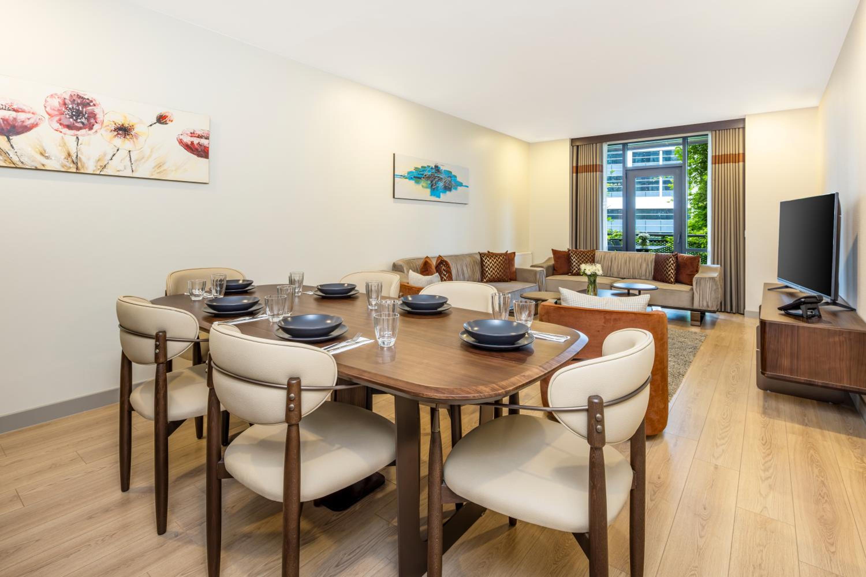Luxurious Amenities: Enjoy free WiFi, private parking, and accommodations for disabled guests. The units boast air conditioning, flat-screen TVs, and fully equipped kitchens for a comfortable stay.