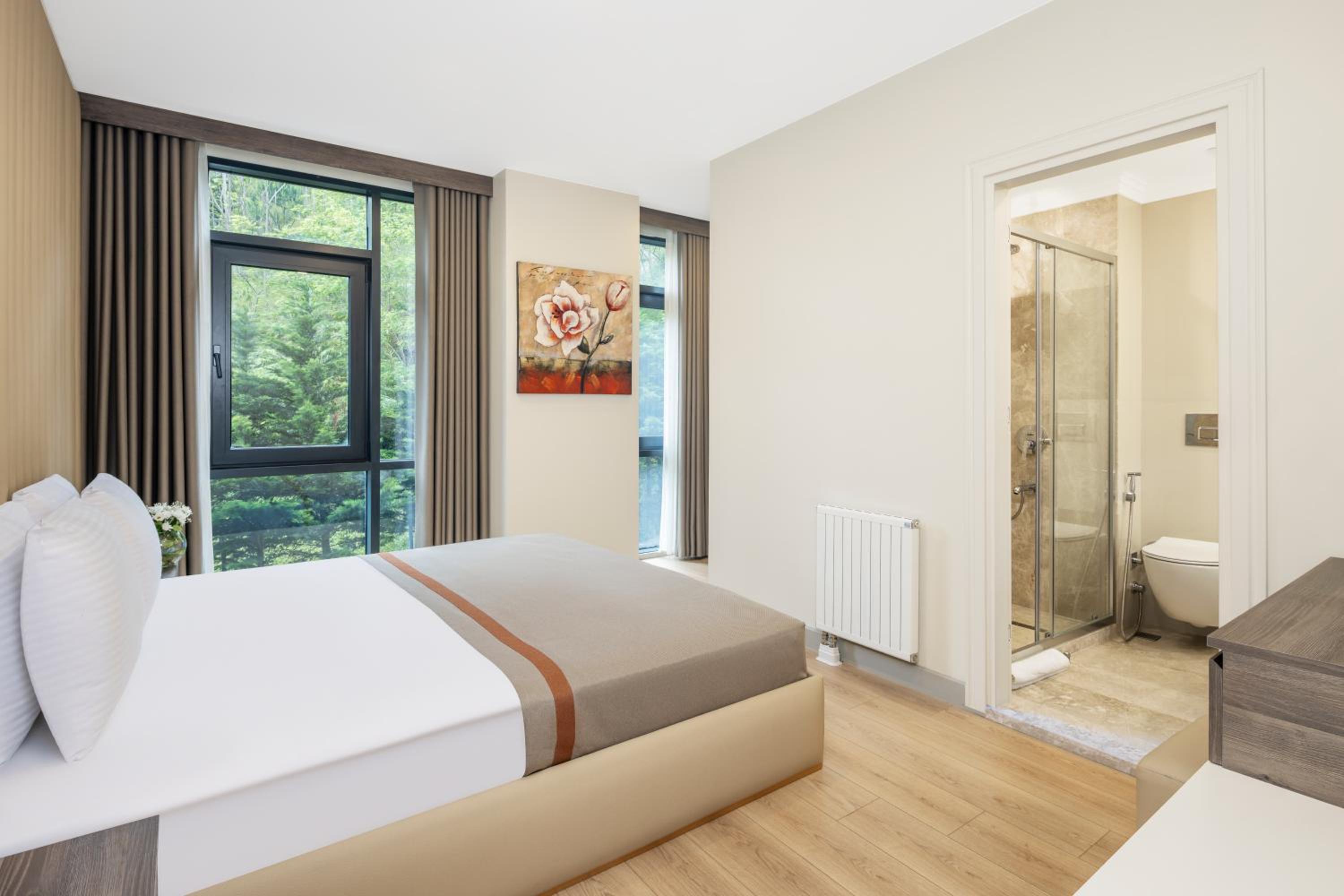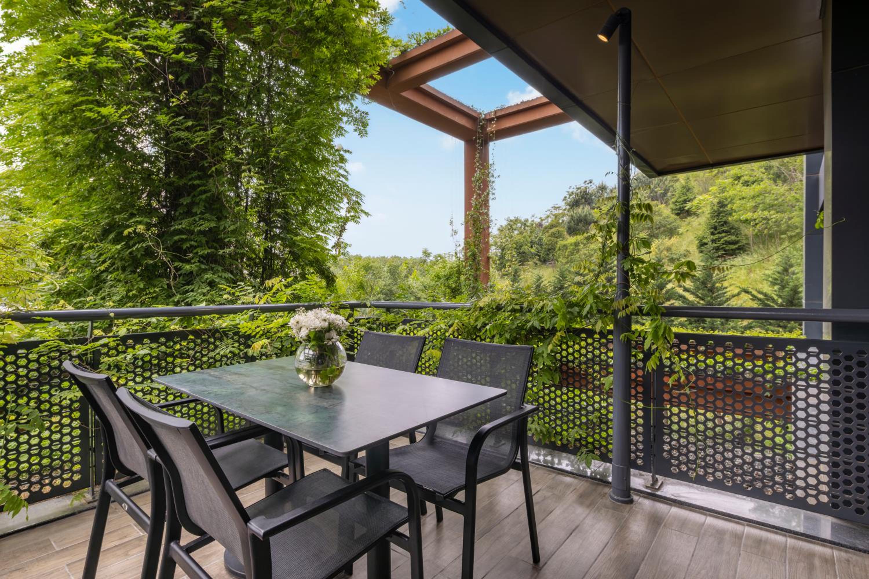 Tranquil Surroundings: Marvel at mountain and garden views from the property, offering a peaceful retreat from the bustling city. The soundproof units ensure a restful night's sleep.