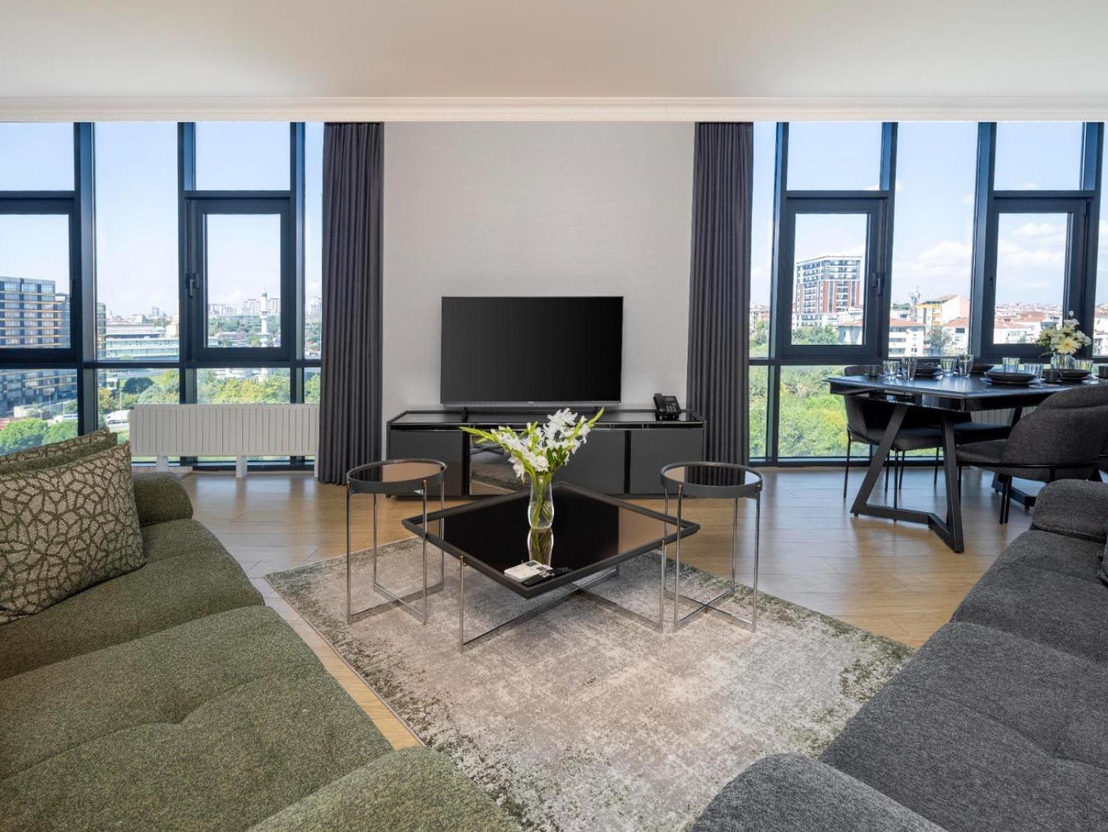 Cel mai bun hotel din Istanbul in care am stat. Apartamente spatioase cu balcon, facilitati pentru bucatarie, masina de spalat, parcare subterana gratuita,aproape de metroul M1 care are legatura directa cu centrul orasului, aproape de magazinul FORUM ISTANBUL , personal foarte amabil , baietii de la receptie foarte amabili , ne-au ajutat cu informatii de fiecare data, personalul de la curatenie foarte amabile , s-a facut curat in apartament in fiecare zi. Prin urmare un hotel exceptional de nota 10 , vom reveni cu placere.