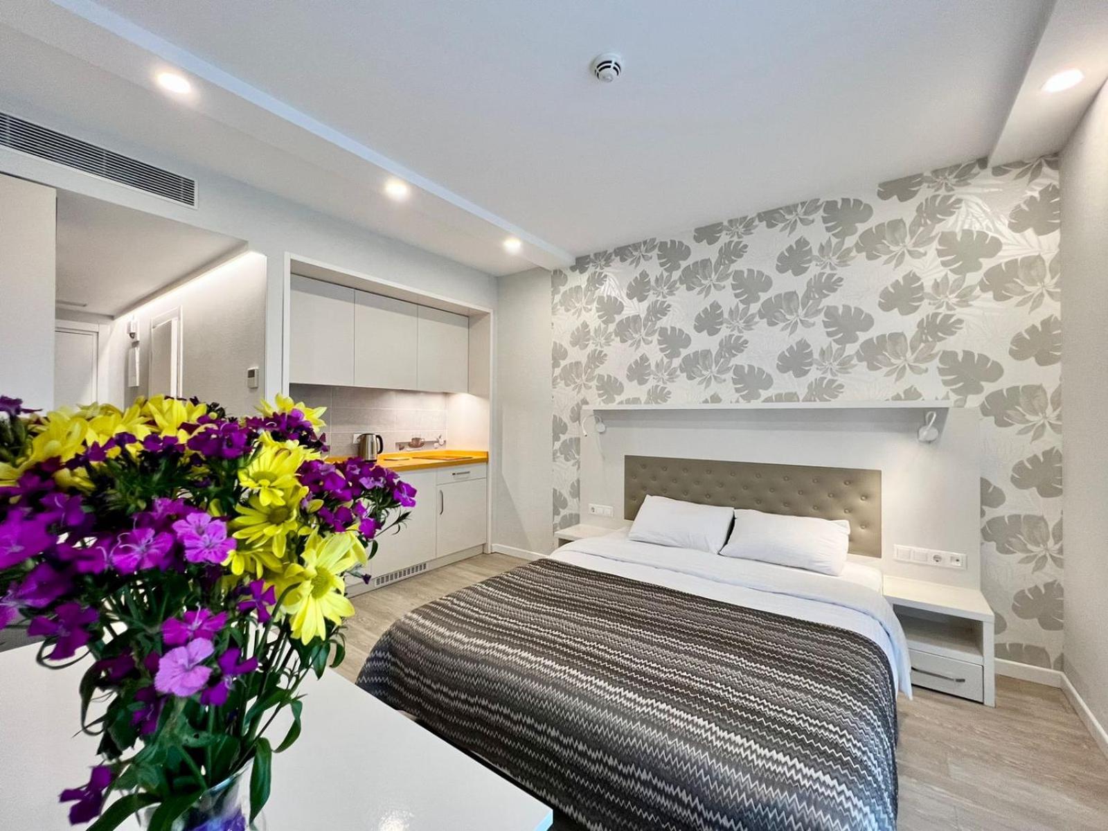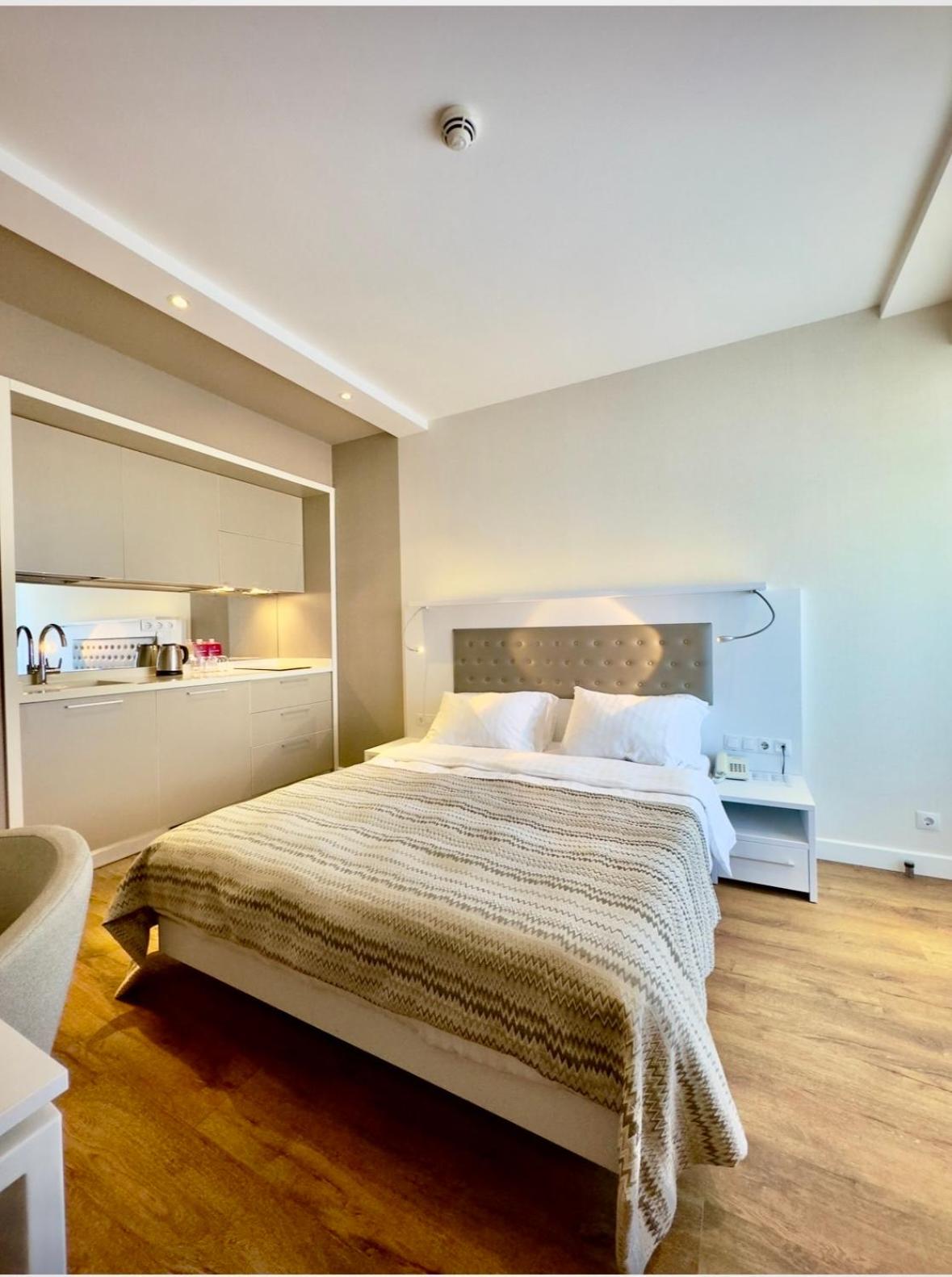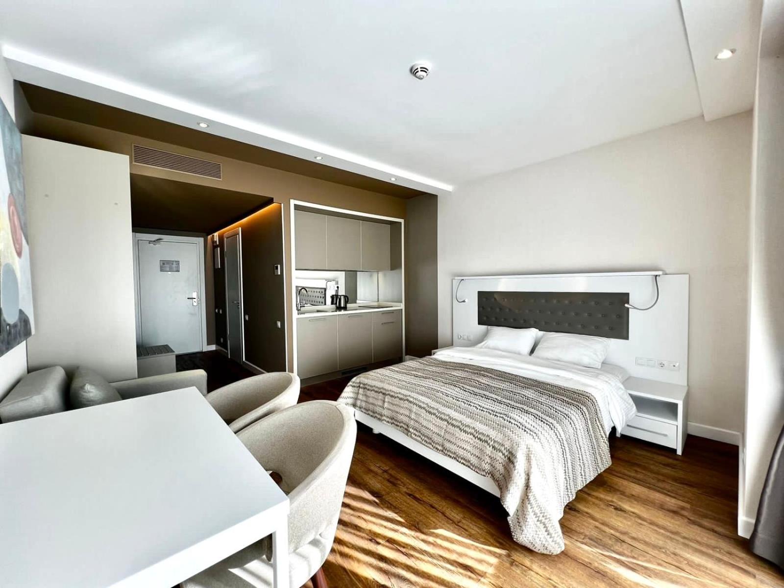 Luxurious Accommodations: Enjoy a balcony with breathtaking sea views, a private beach area, and an infinity pool at Sunshine Apartments Batumi Lux. The fully equipped kitchen, flat-screen TV, and elegant furnishings ensure a comfortable stay.