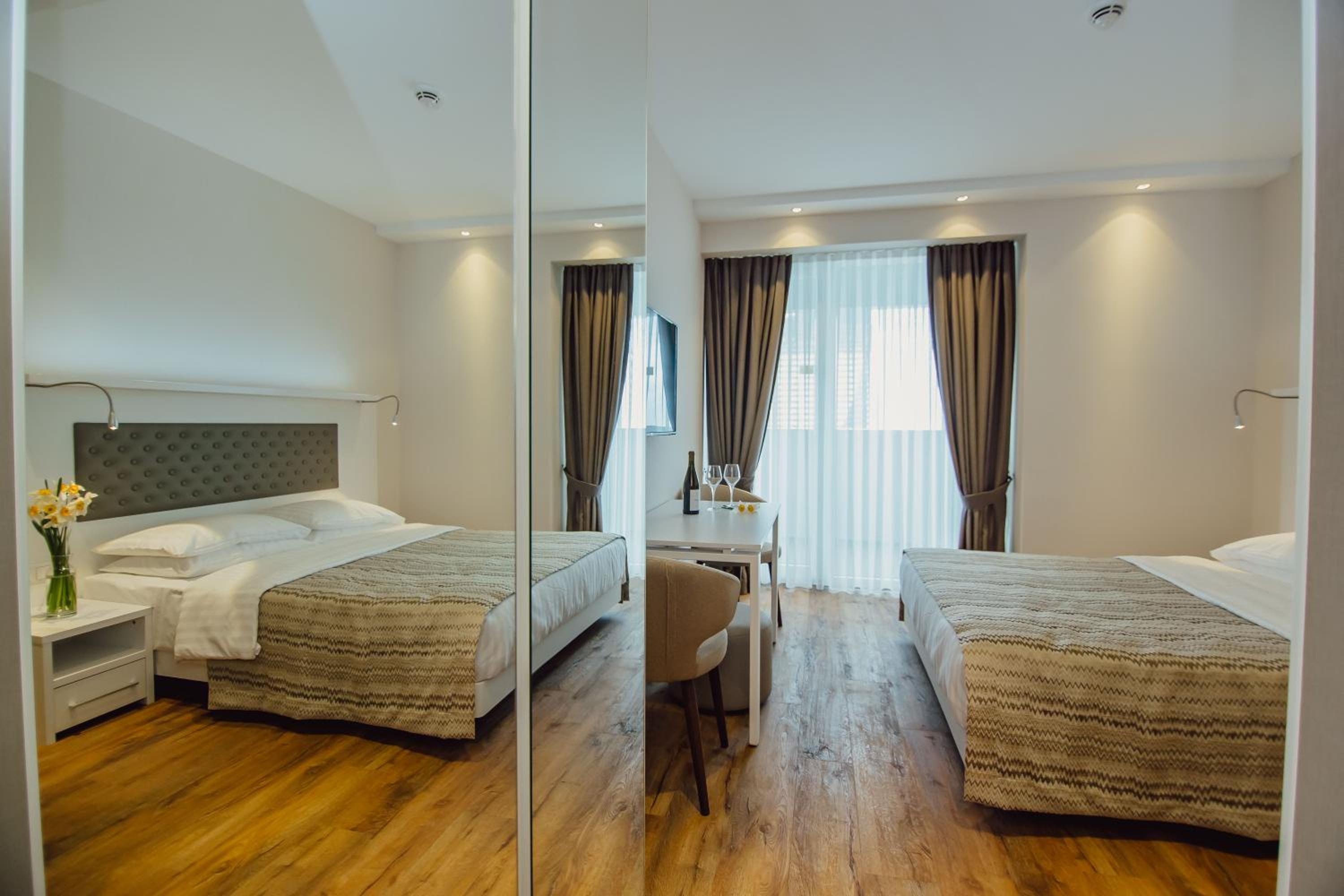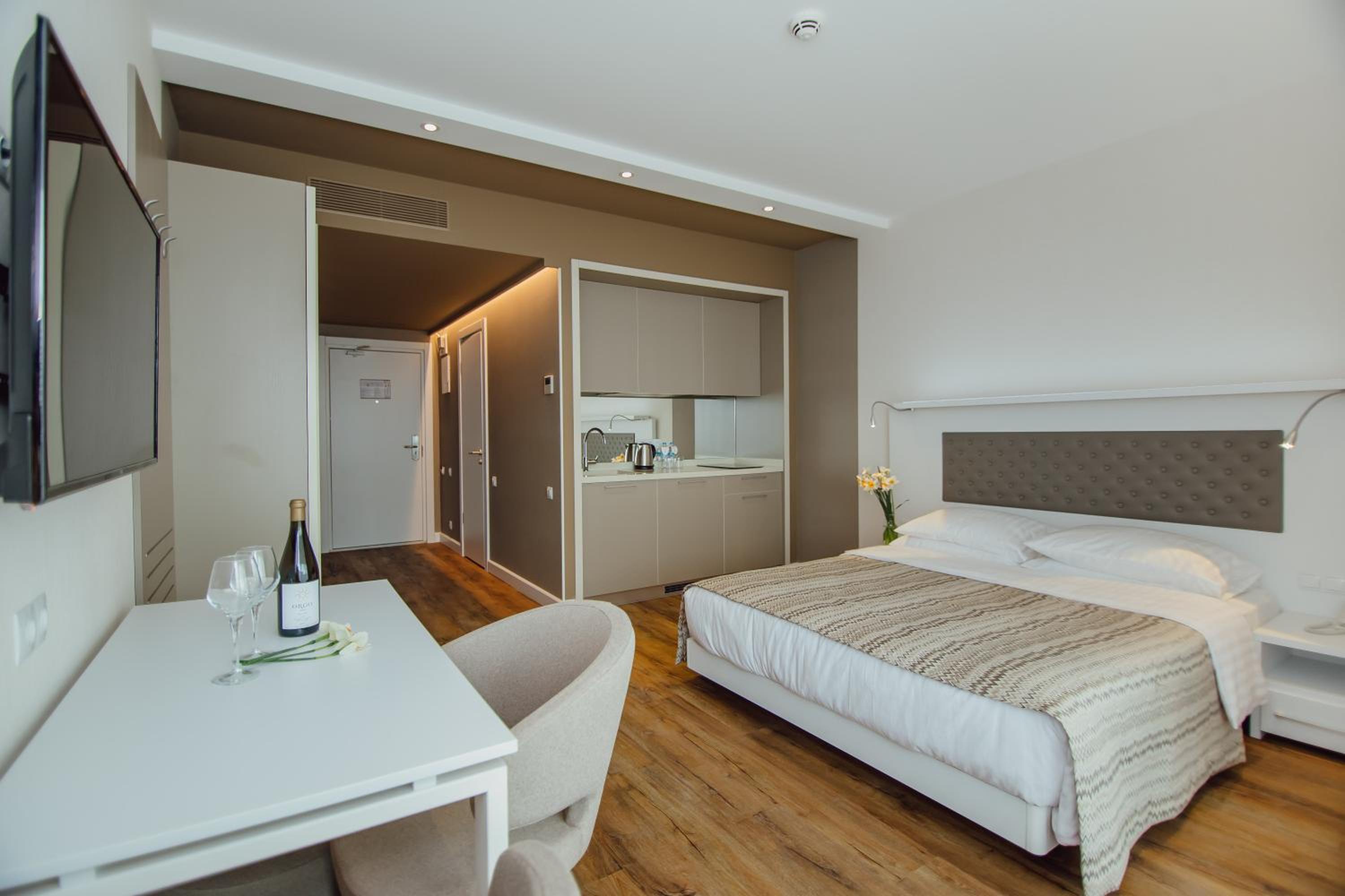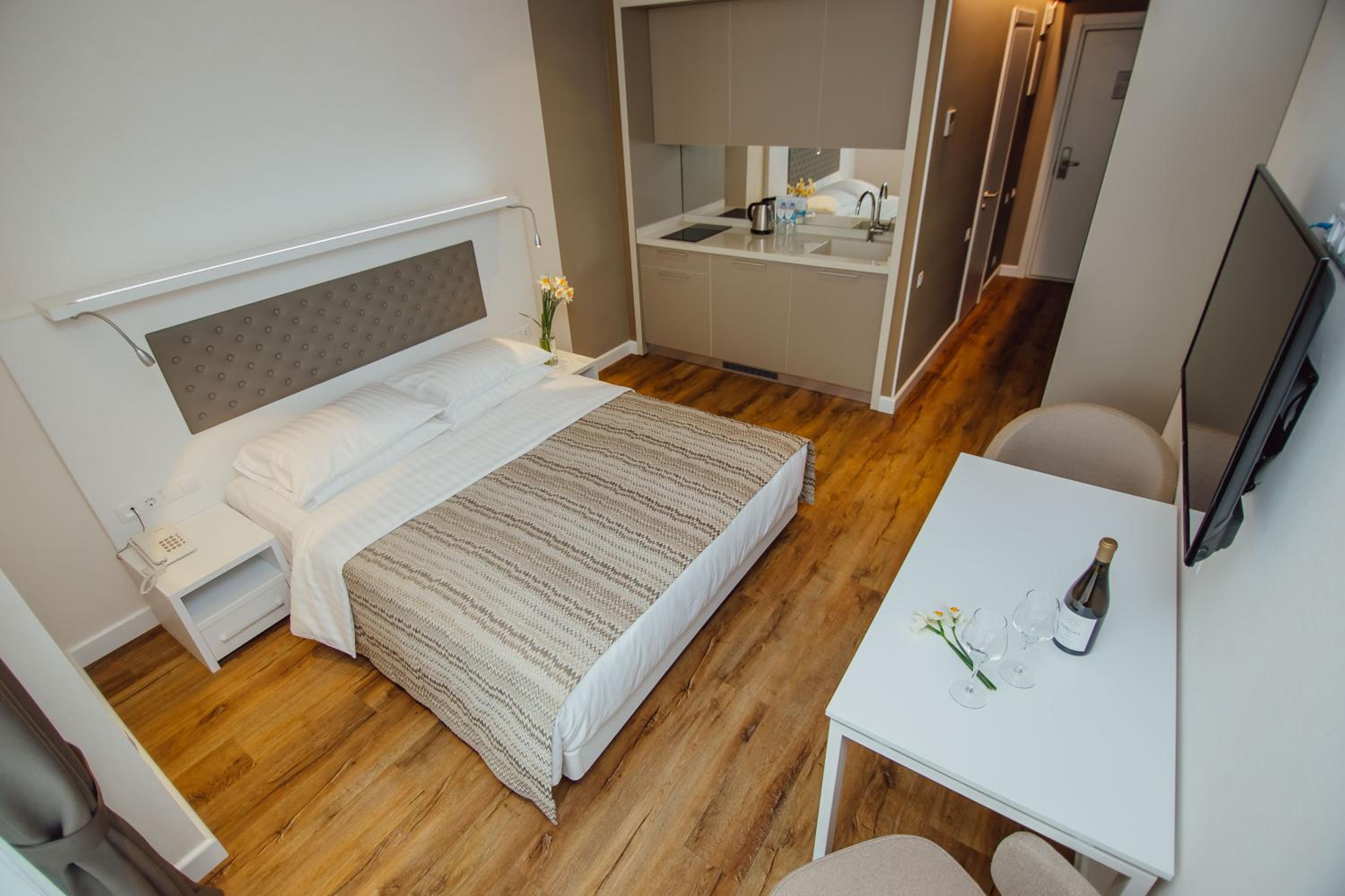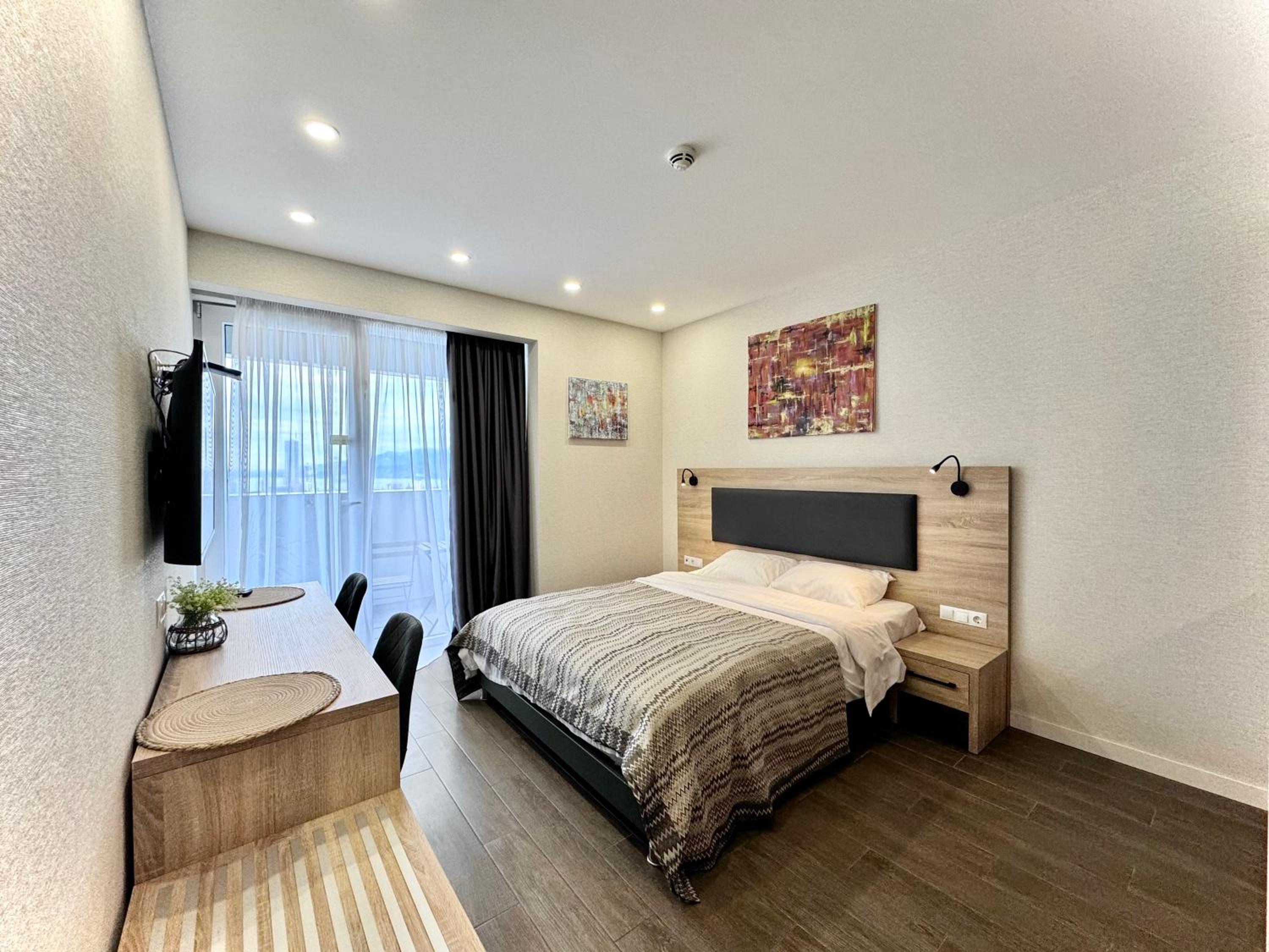 Очень красивое здание отеля и очень красивый вид с балкона.Балкон большой.👍Хорошее расположение. В комнате есть даже утюг и гладильная доска. Отзывчивая девушка Алина решала все проблемы и отзывалась на все мои просьбы быстро.👍🩷