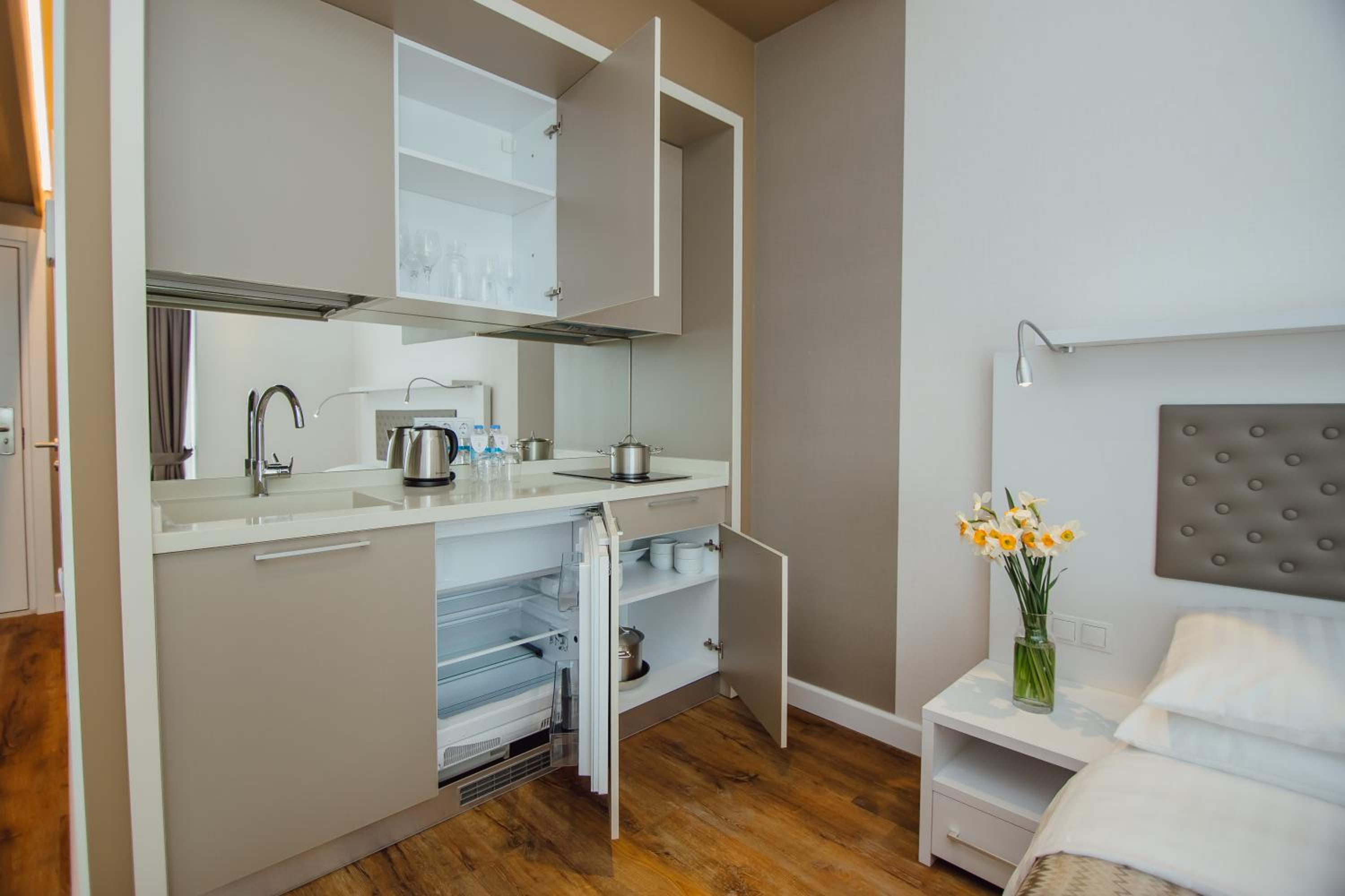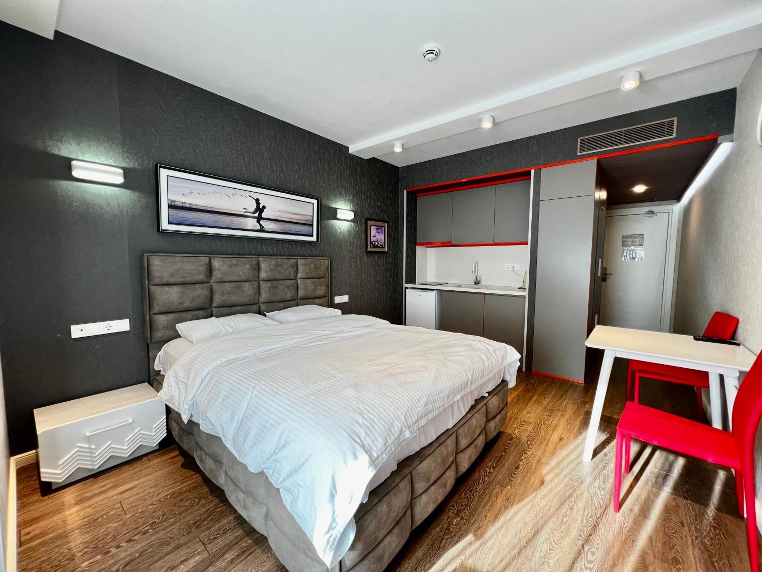 Так как это апартаменты,мусор с 12-го этажа приходилось выносить самим. Мусорные баки только на улице. Нужно было выйти с мусором через лобби(где всё время много людей),обойти здание отеля вокруг,и перейти дорогу(без пешеходного перехода) ,так как мусорные баки были только на противоположной стороне от отеля! Это очень не удобно и даже опасно, так-как движение там очень интенсивное!