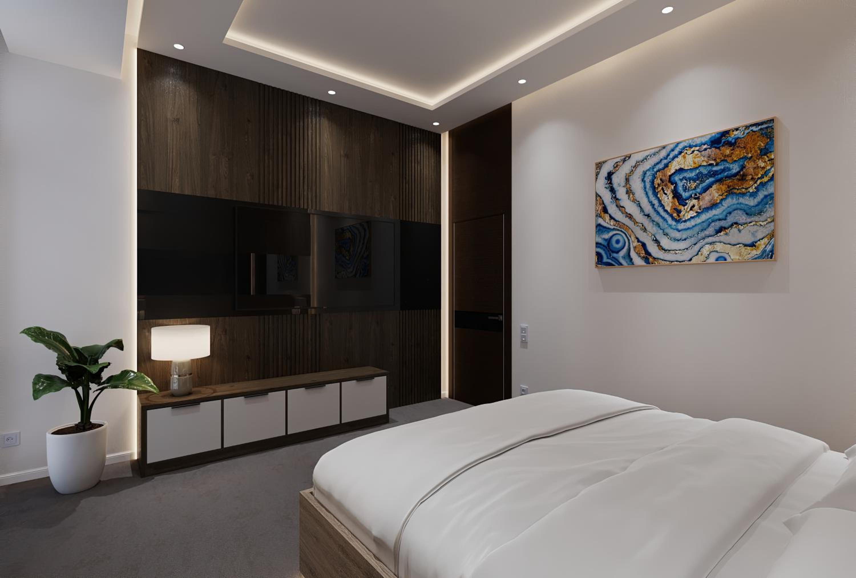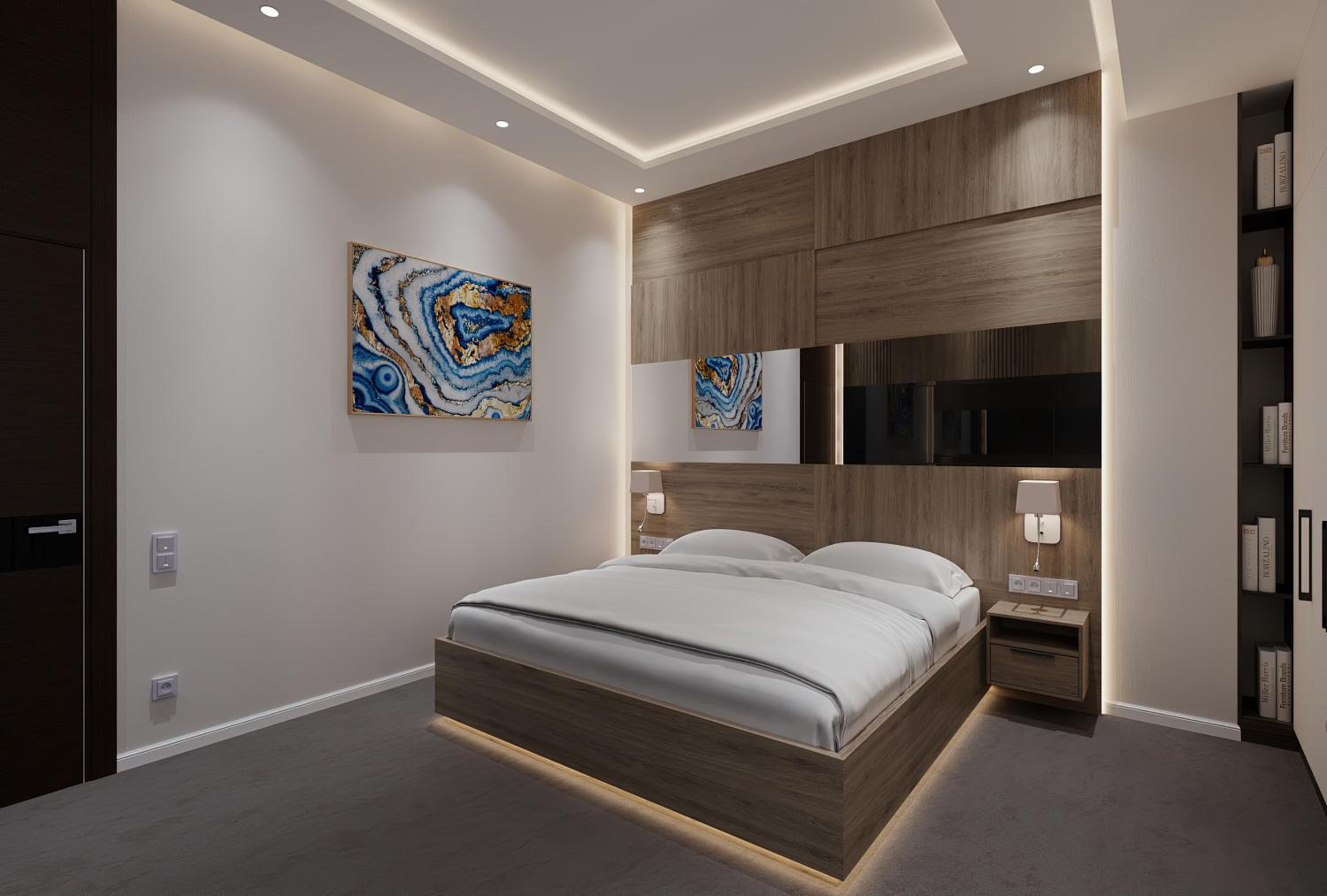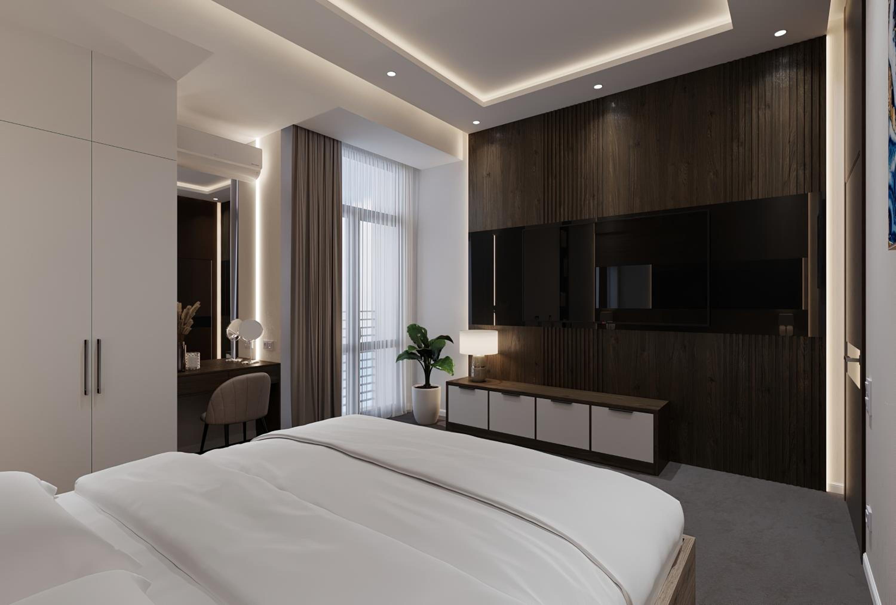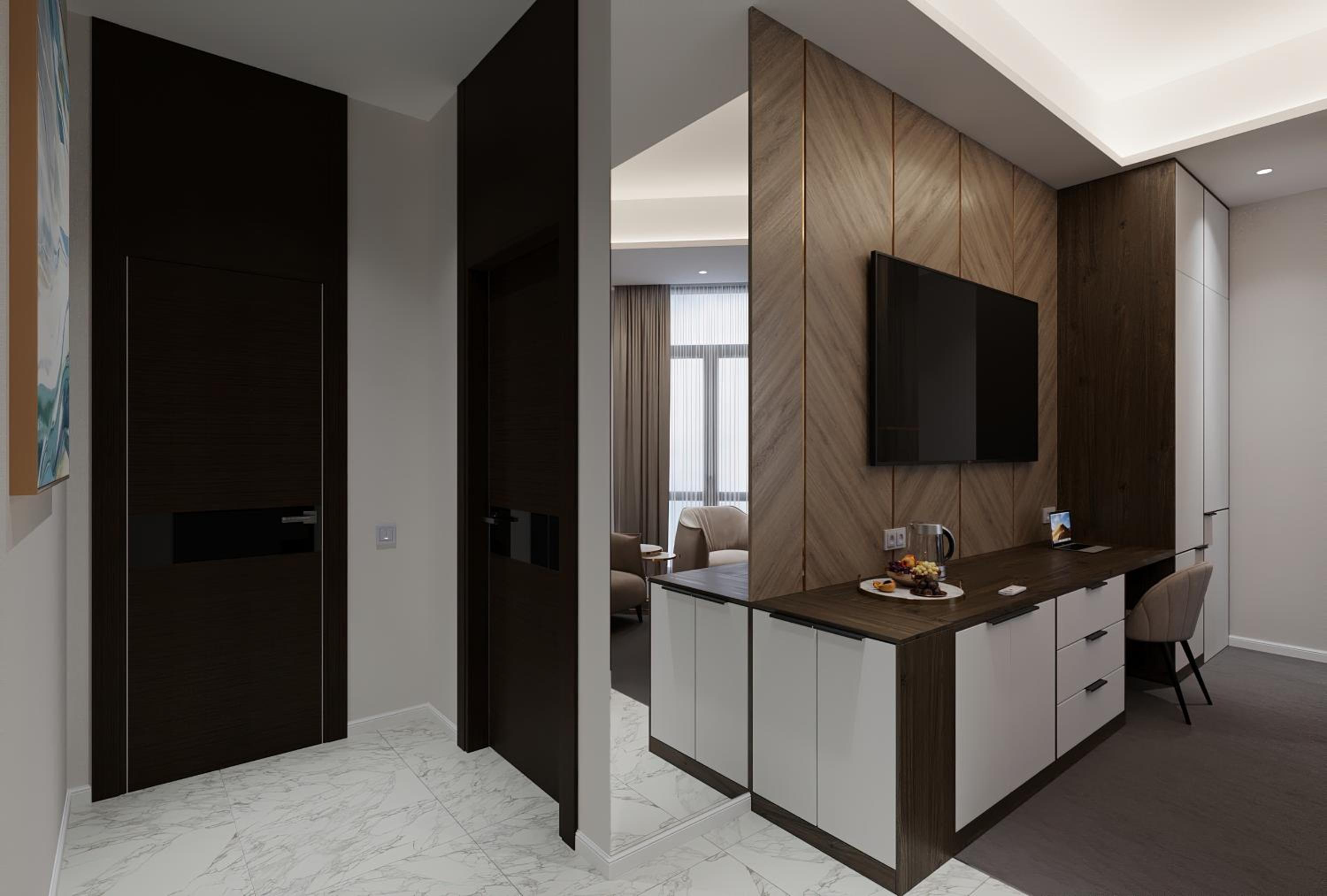 Комната была чистой и комфортной. Интерьер современный и уютный, персонал дружелюбный. Мне также понравилось освещение и общая атмосфера отеля.