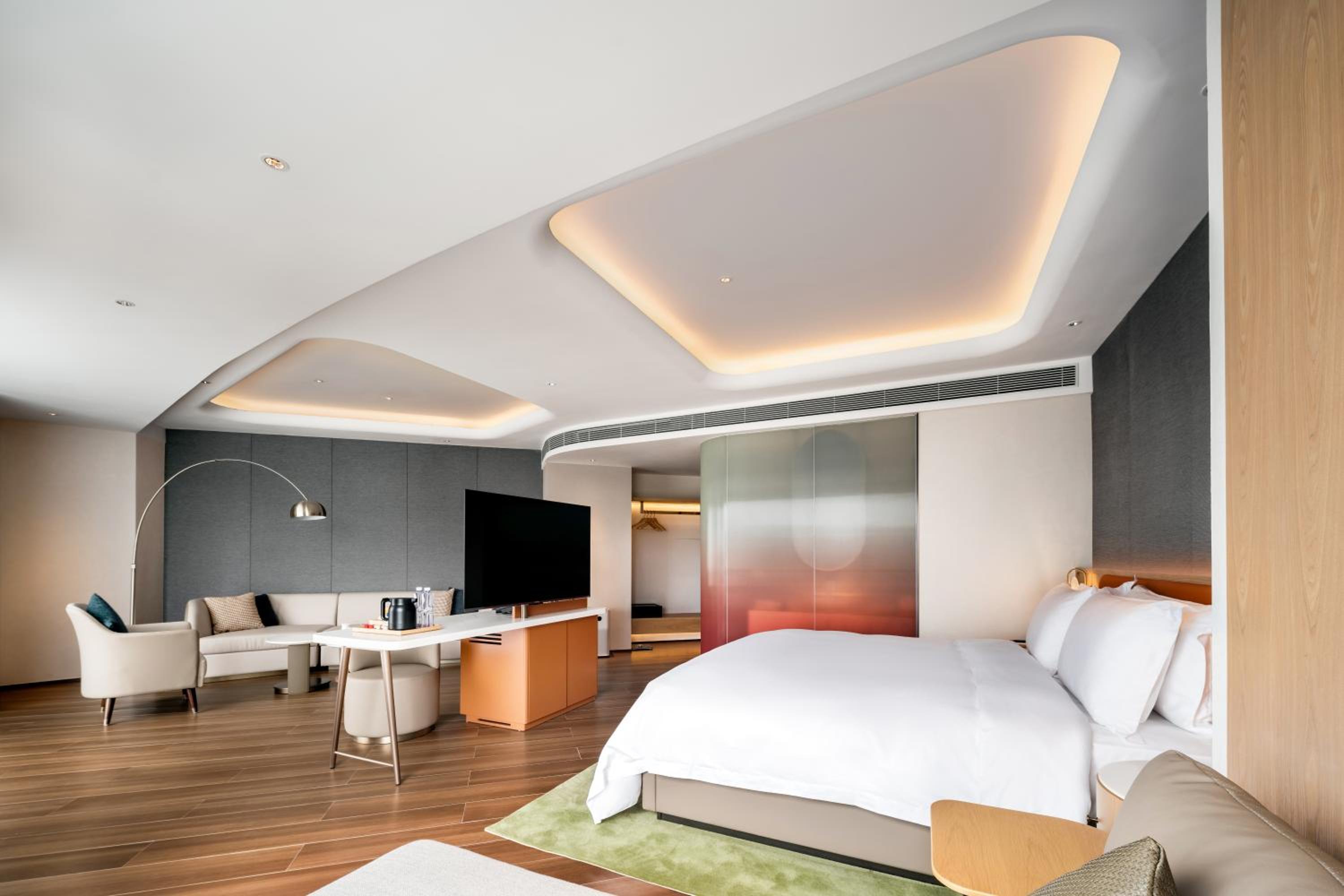As other reviews have mentioned, the location of this hotel is incredibly convenient—it’s situated directly above Jingtian Station on Line 2, making it perfect for getting around the city with ease. The hotel itself is beautiful, with elegant decor and an inviting atmosphere. The linens were luxuriously soft and high quality, making for a very comfortable stay. One unexpected highlight: the shampoo smelled amazing—just like pineapple gummy bears! Highly recommend this hotel for both comfort and convenience.