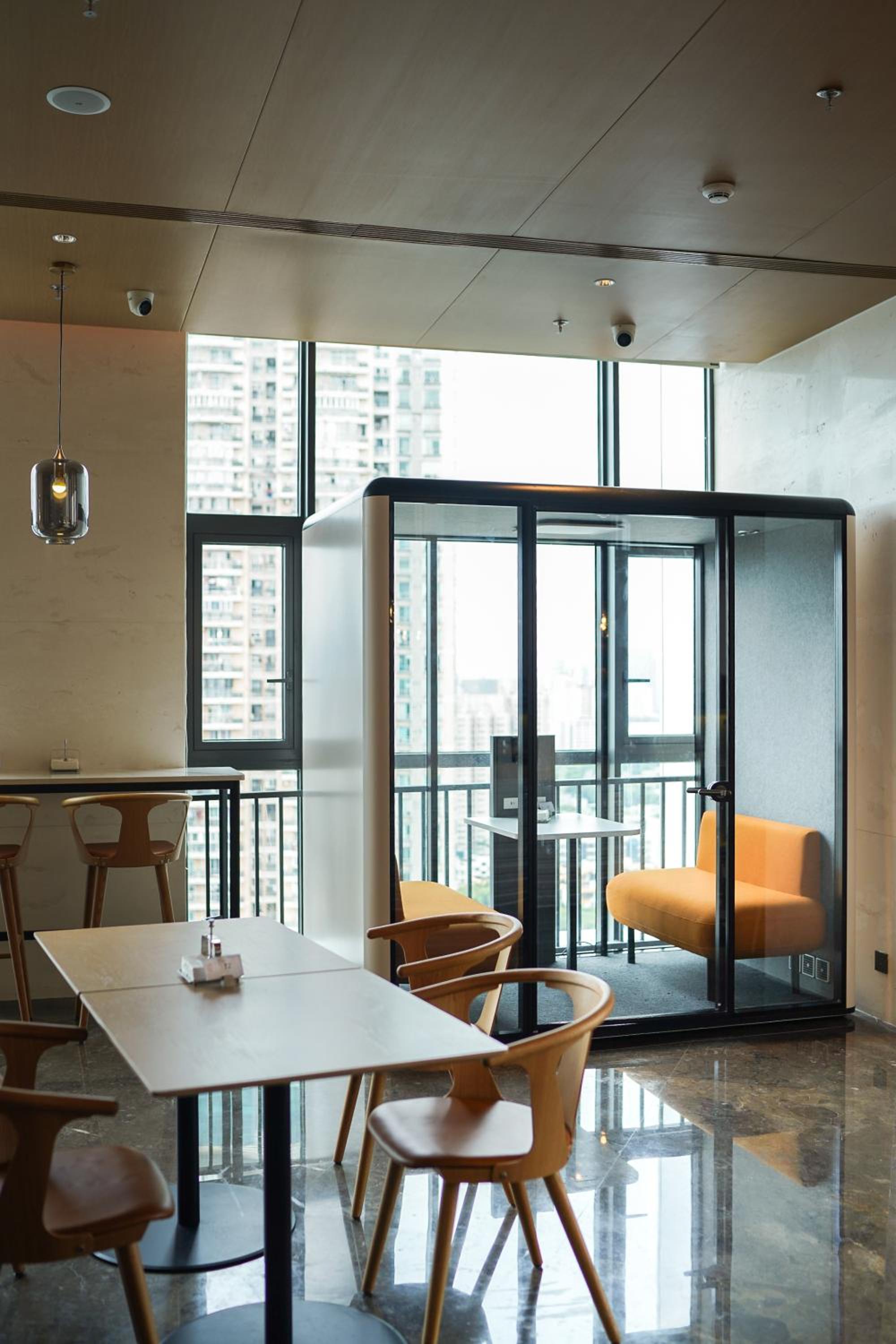 Localização boa, praticamente dentro de uma estação de metro em Shenzen. Também haviam opções de restaurantes nas redondezas do hotel e uma loja de conveniencias no térreo.
