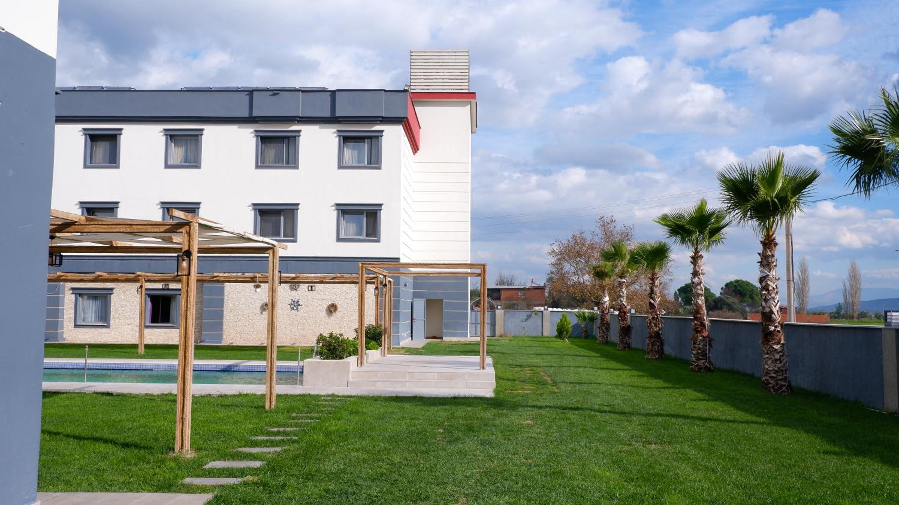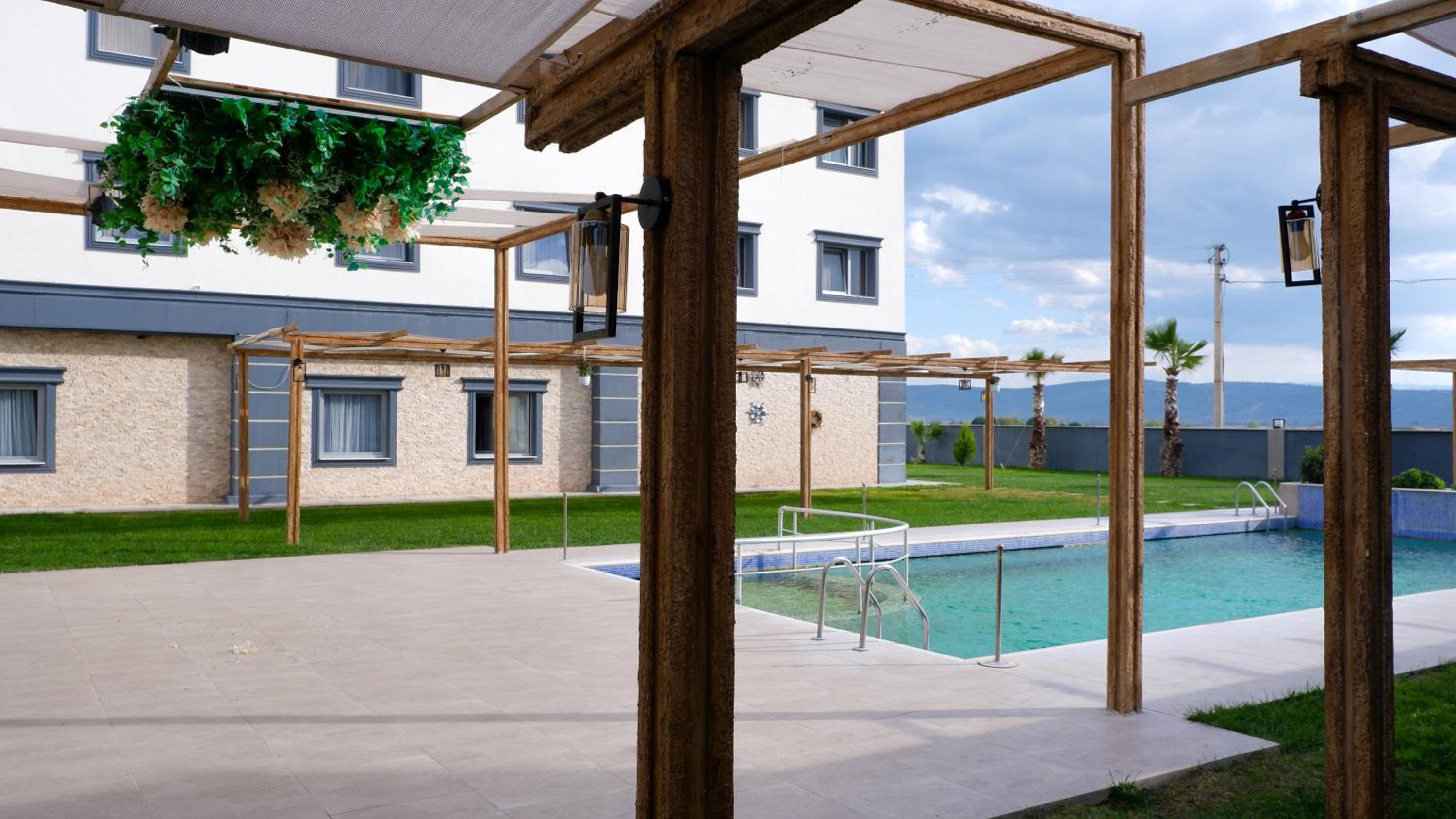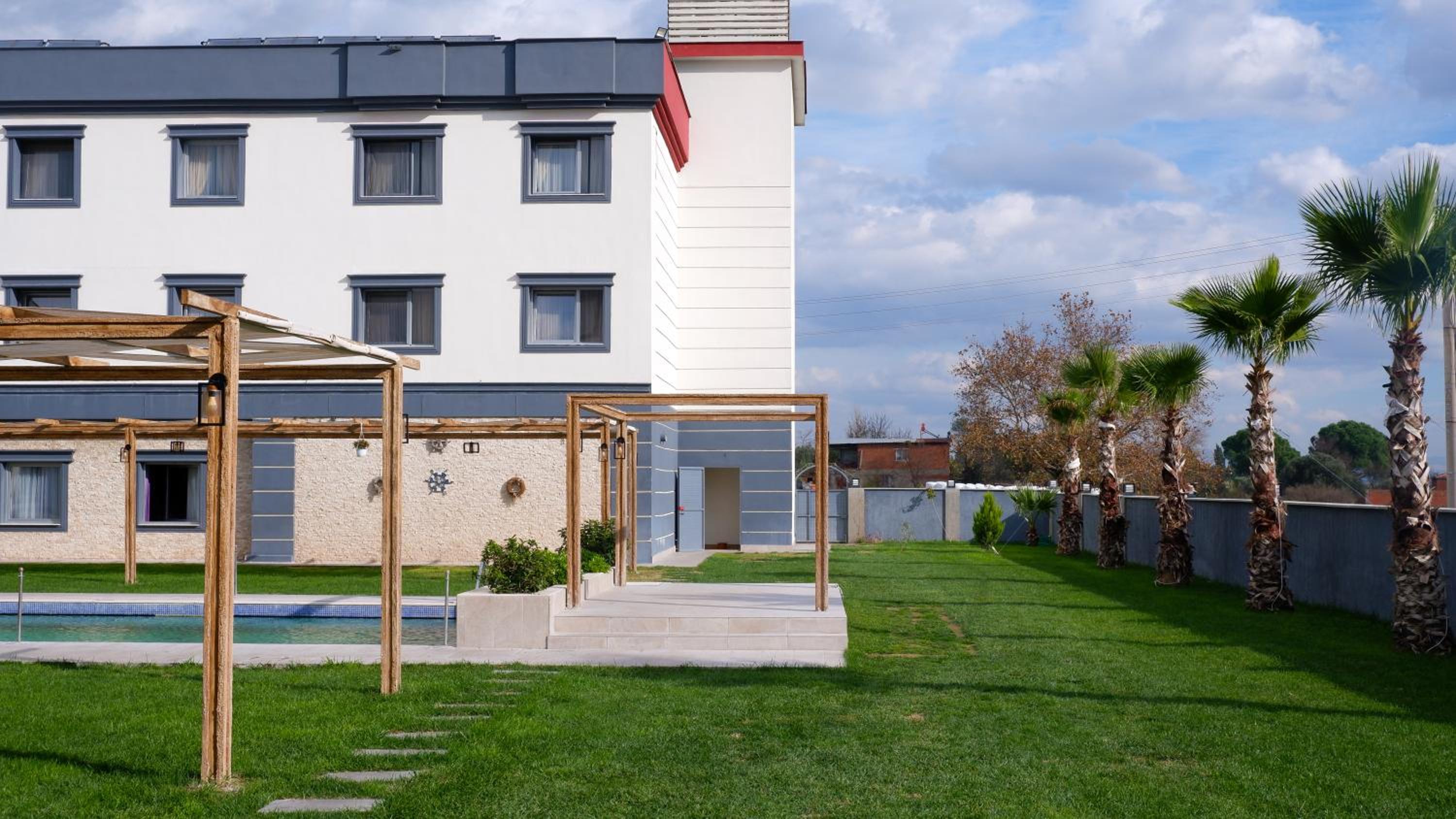 Hotel Labella Bergama presents air-conditioned units adorned with a modern touch, complemented by a serene garden and a refreshing outdoor pool equipped with complimentary parasols and sun loungers.