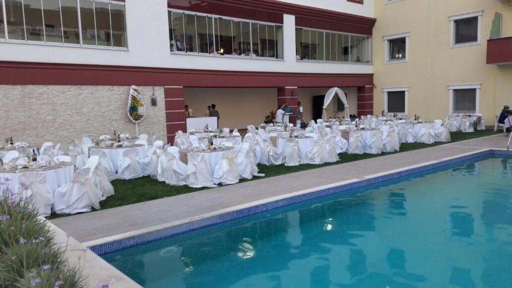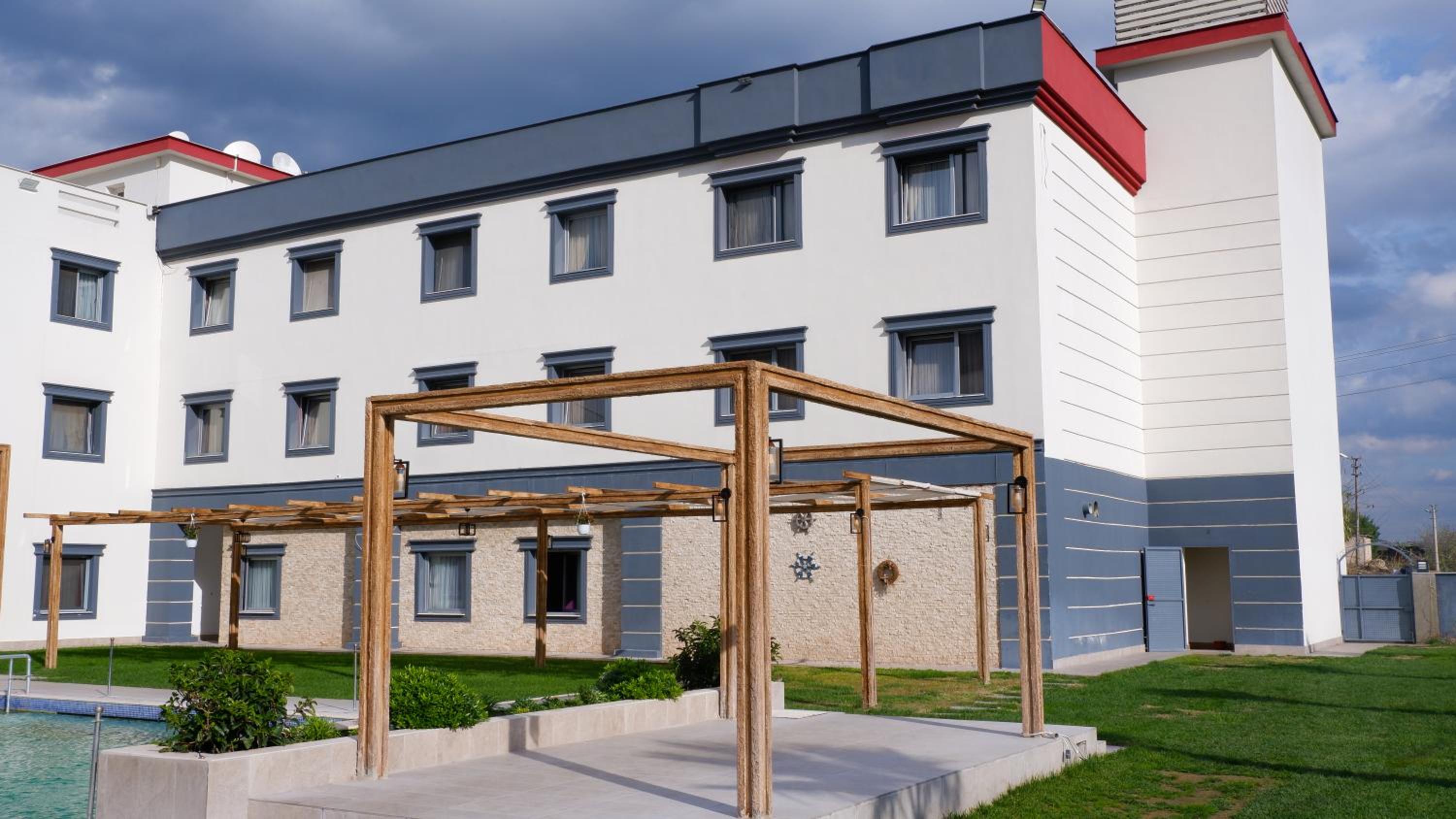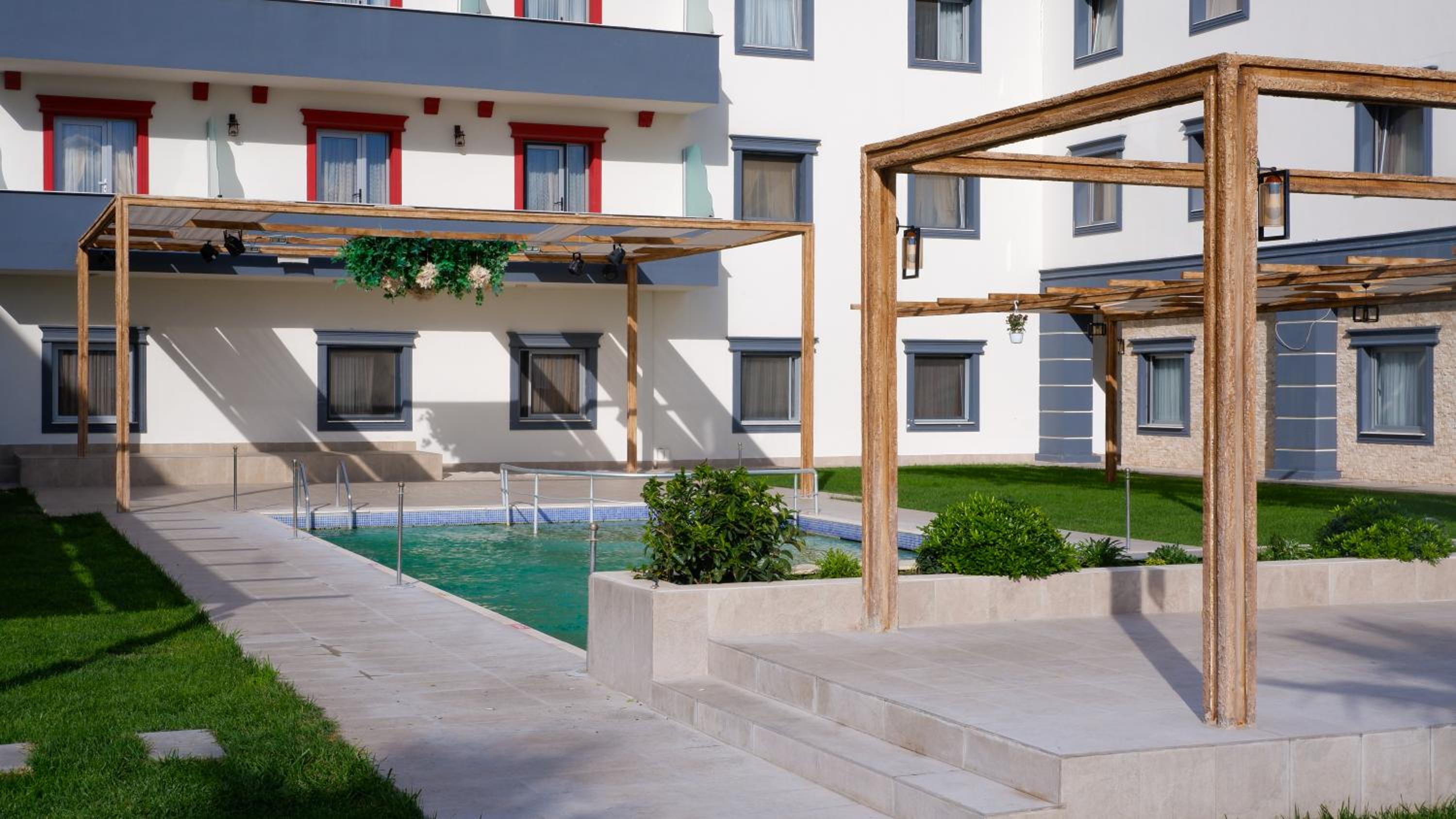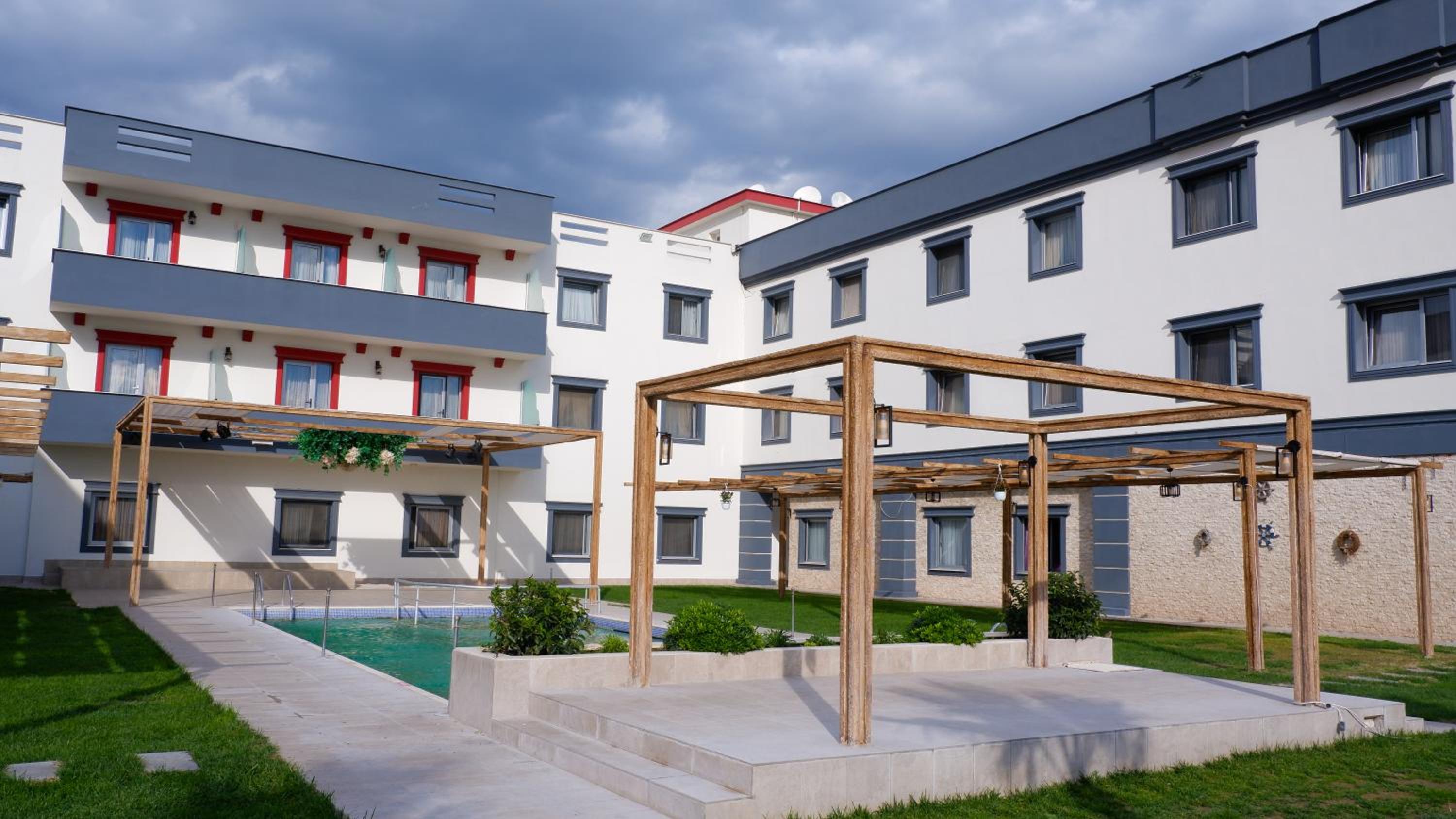Hotel Labella Bergama presents air-conditioned units adorned with a modern touch, complemented by a serene garden and a refreshing outdoor pool equipped with complimentary parasols and sun loungers.
