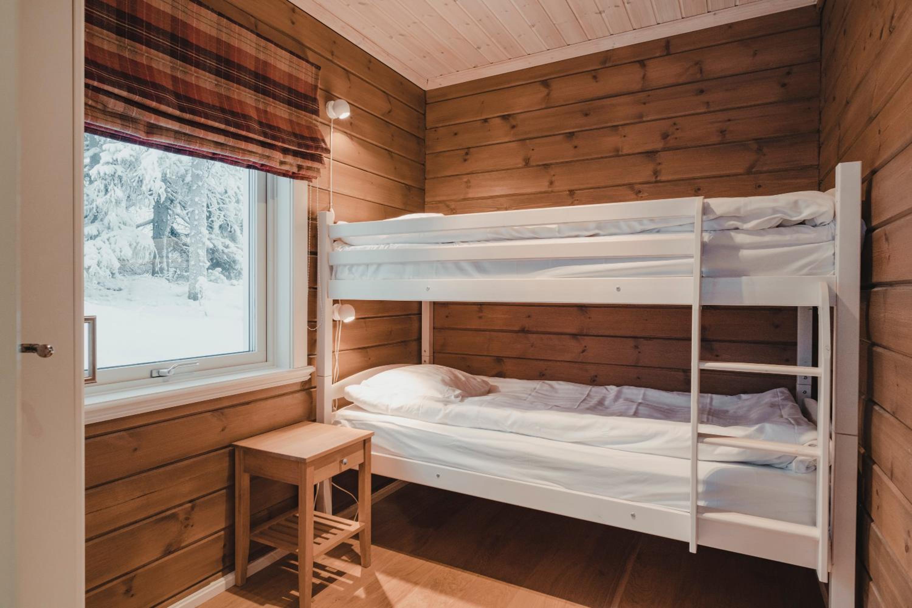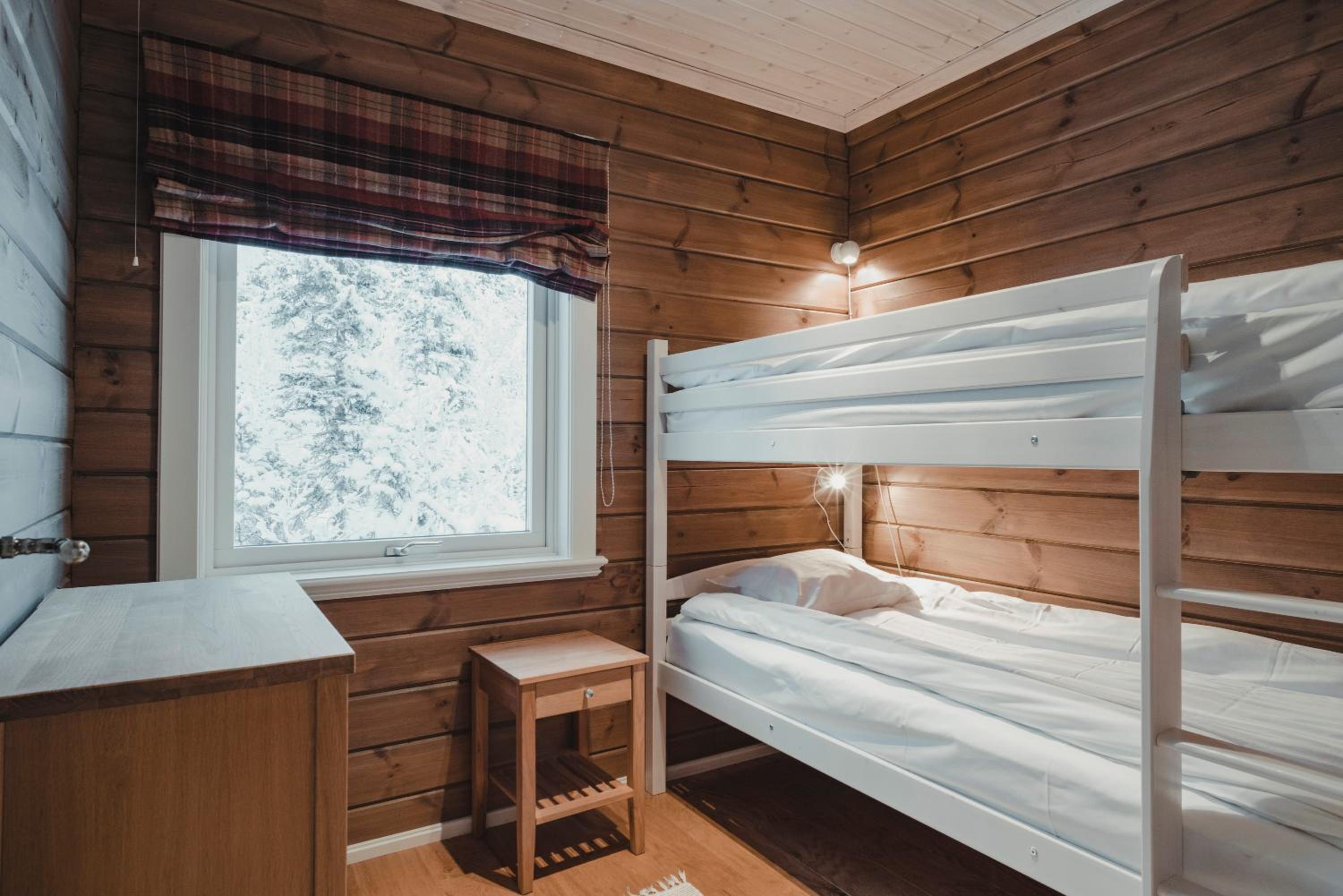 Skulle vilja haft en braskamin och fler glas och osthyvlar. Kuddarna i ena sovrummet var alldeles platta