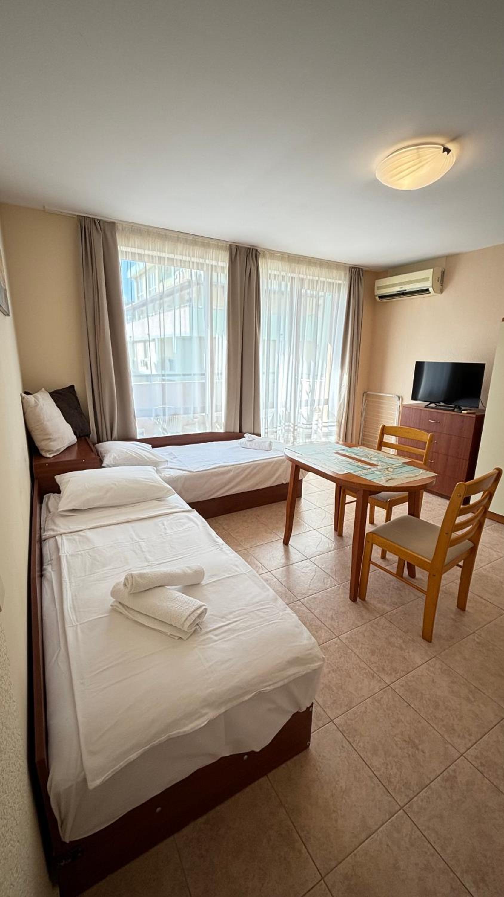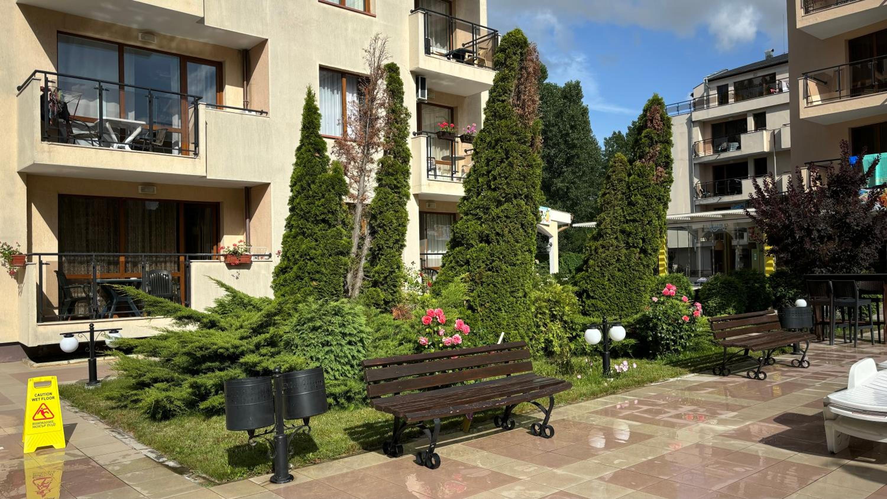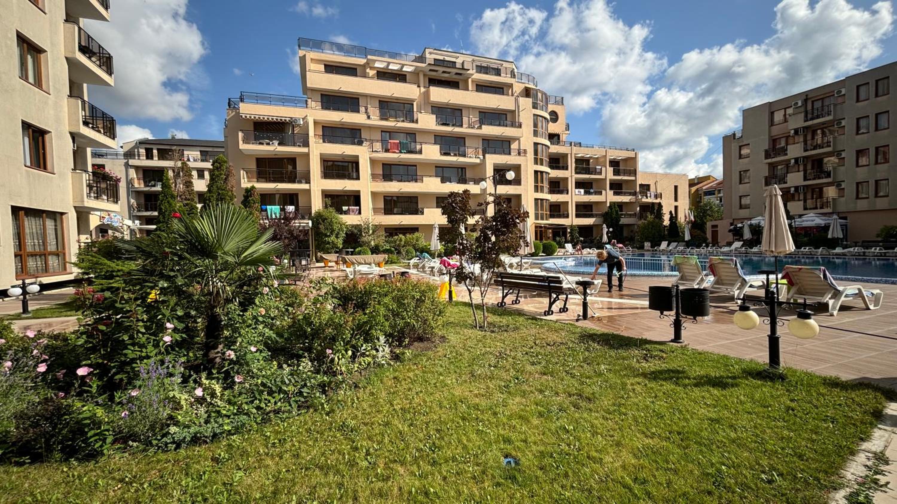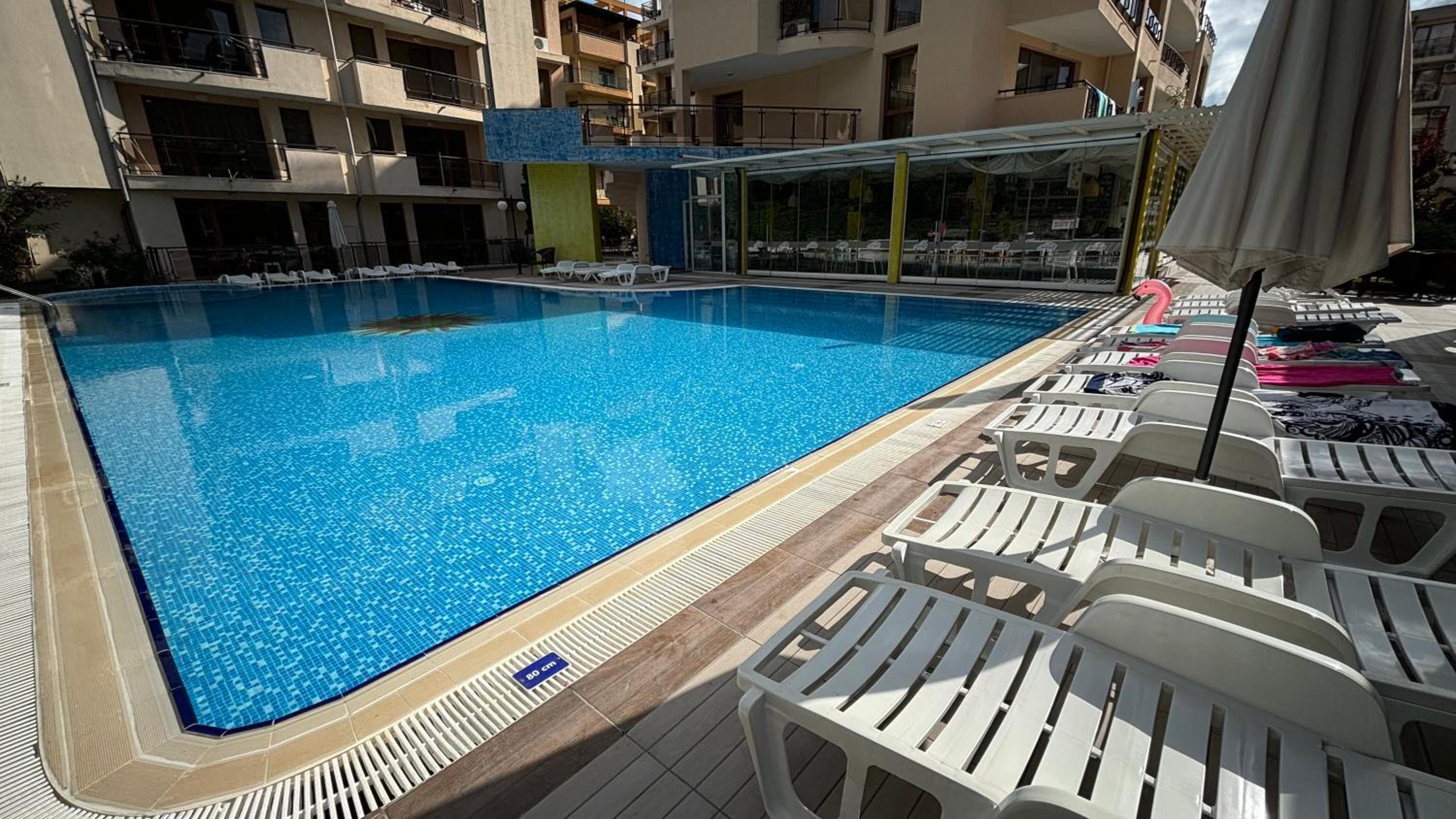 Ragyogó tisztaság fogadott. Az apartman jól felszerelt. Még tusfürdő és sampon is volt. Az ágyak nagyon kényelmesek. Nem utcafronti lakás, így csendes. A wifi tökéletesen működött. Az épülethez tarzozik lift, 2 medence, egy bár és kisbolt. A strand és Lidl 5 perc sétára található.