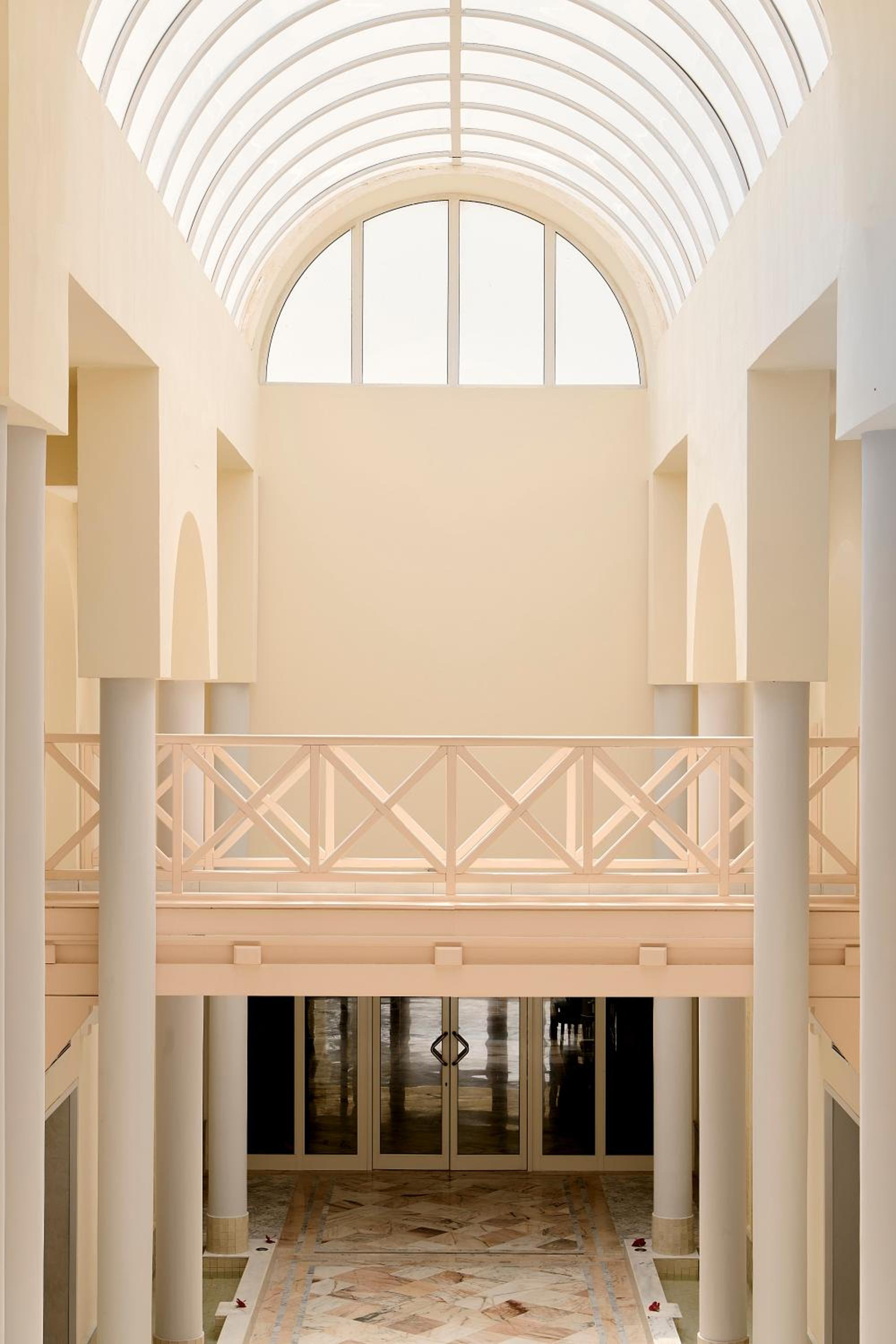 Experience traditional architecture with arches, fountains, and pools.