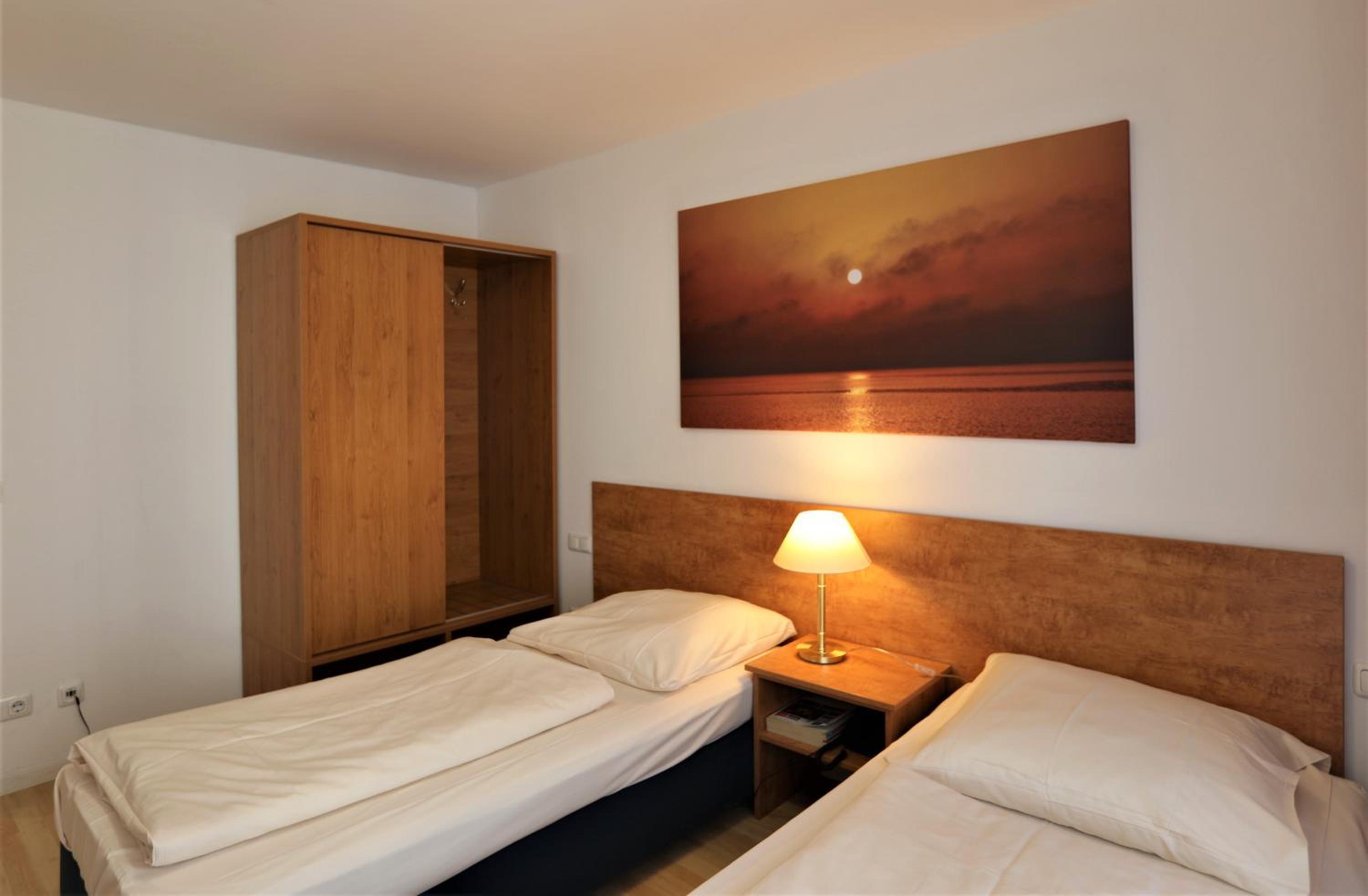Doppelbett bestellt, aber Einzelbetten aneinandergeschoben erhalten, aber für die wenigen Stunden in der Silvesternacht, war es egal.