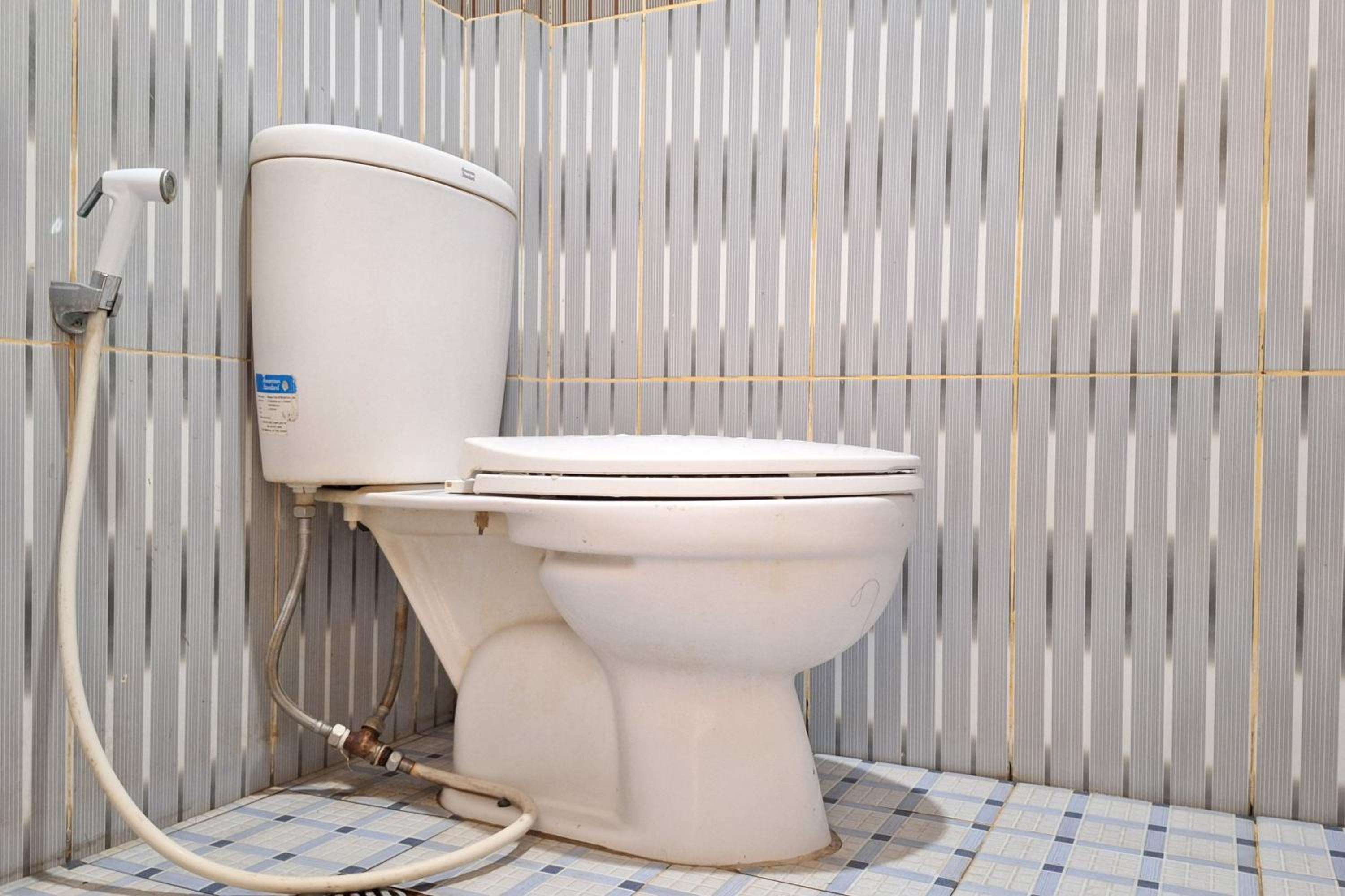 Bathroom surfaces could be cleaner.