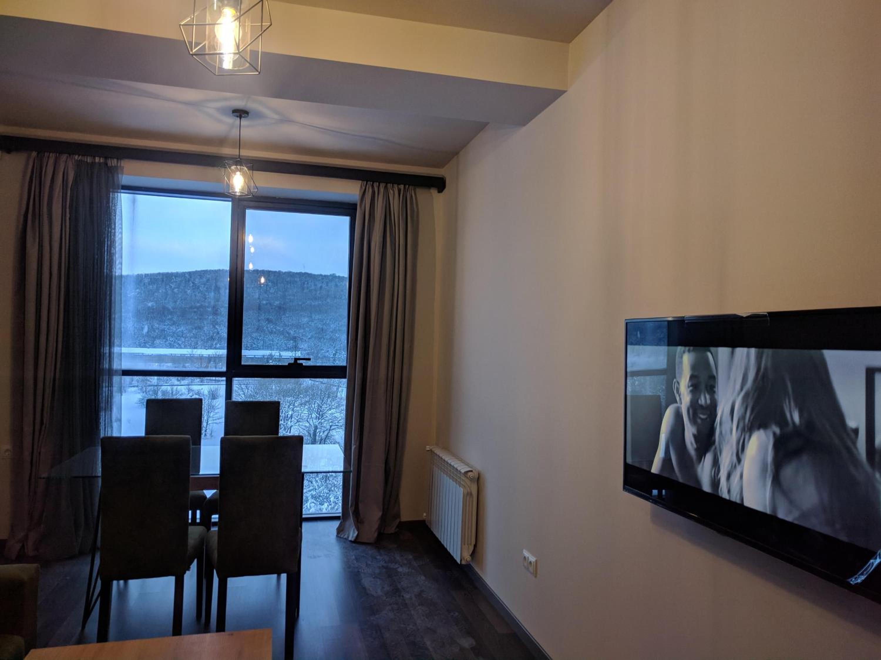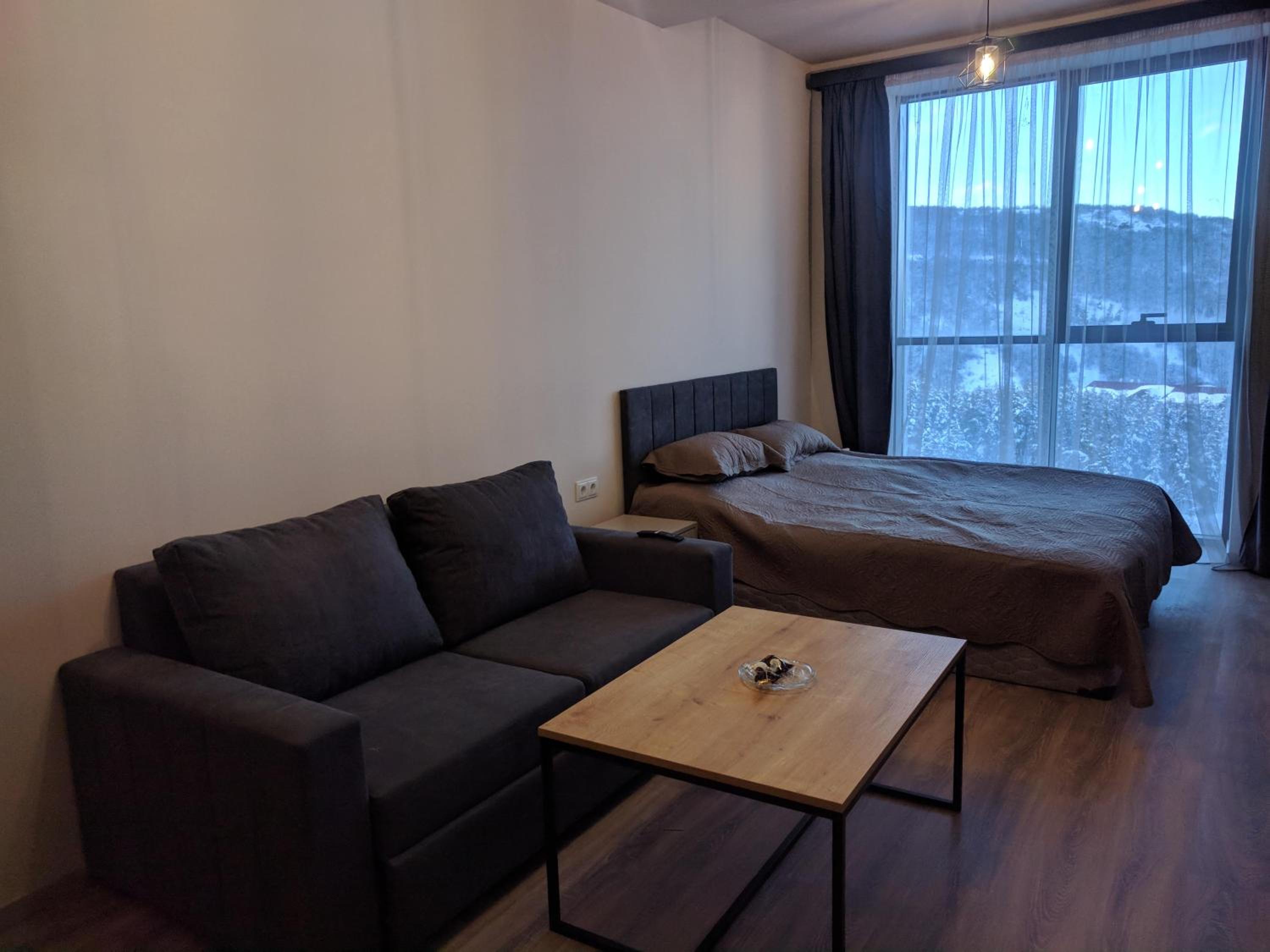 Everything was amazing! Very good and hospilate host. Stunning views, panoramic windows. Great soundproofing, location is wonderful for walks. Stable internet connection