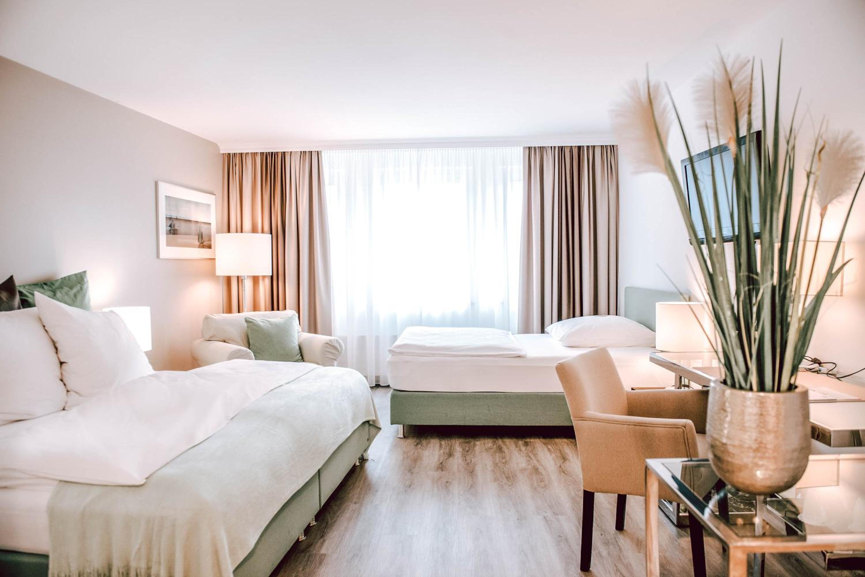 The hotel is perfectly situated for the Messe and centre, you can almost fall out of bed onto the S-bahn platform for a line which goes directly to the Messe and centre. The staff are all very friendly and helpful, the room was spotless and bed comfortable.