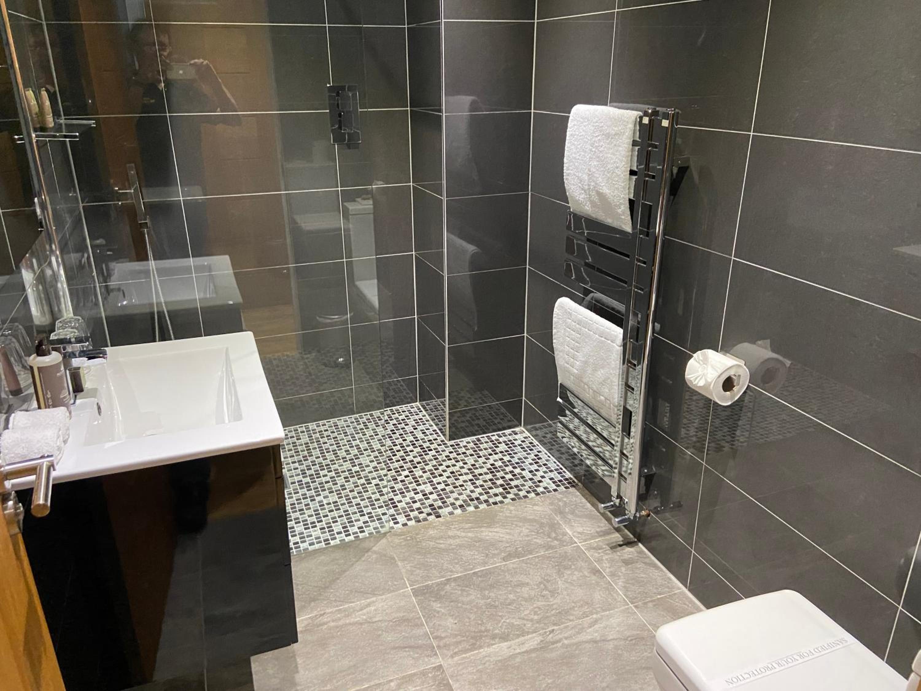 No towel rails in the bathroom. The heater rack (not working) is not really convenient to hang large towels to dry. The kitchen worksurface could do with more light and cupboard downlights would be great. Other than those two minor items all was well laid out.