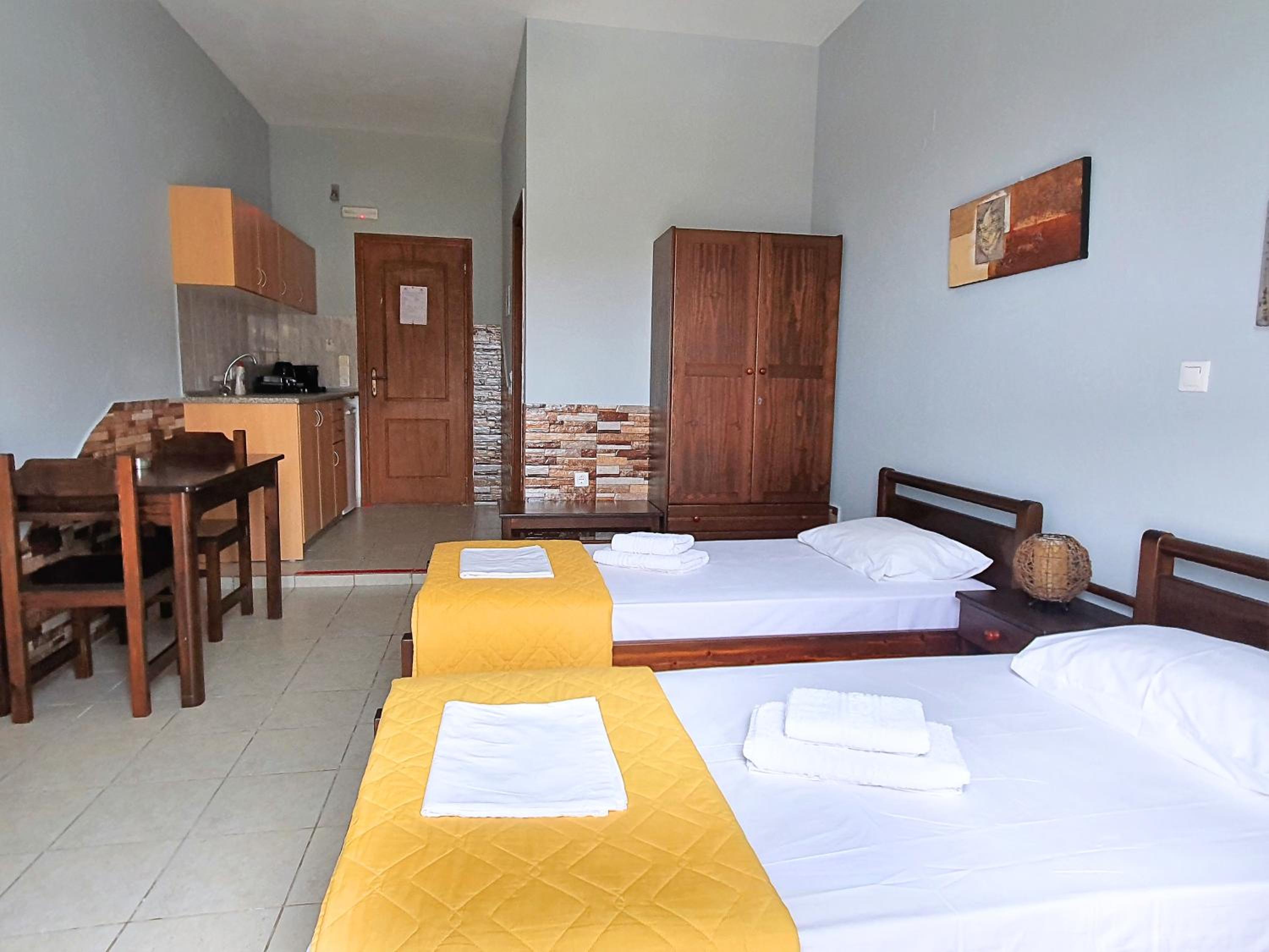 Μας άρεσε η εξυπηρέτηση (μας μετέφεραν με βαν από το λιμάνι, υπήρχε ευελιξία στο check out), η καθαριότητα και το μπαλκονάκι με θέα.