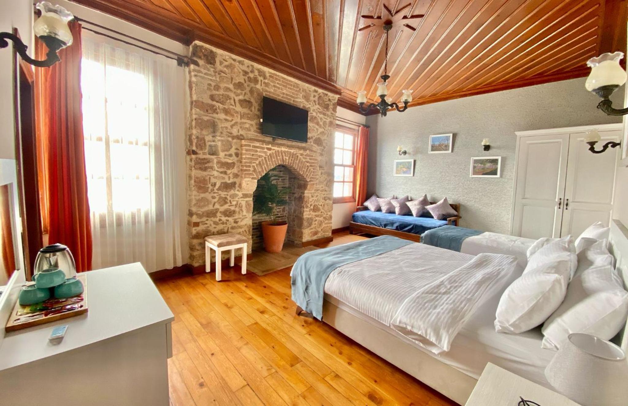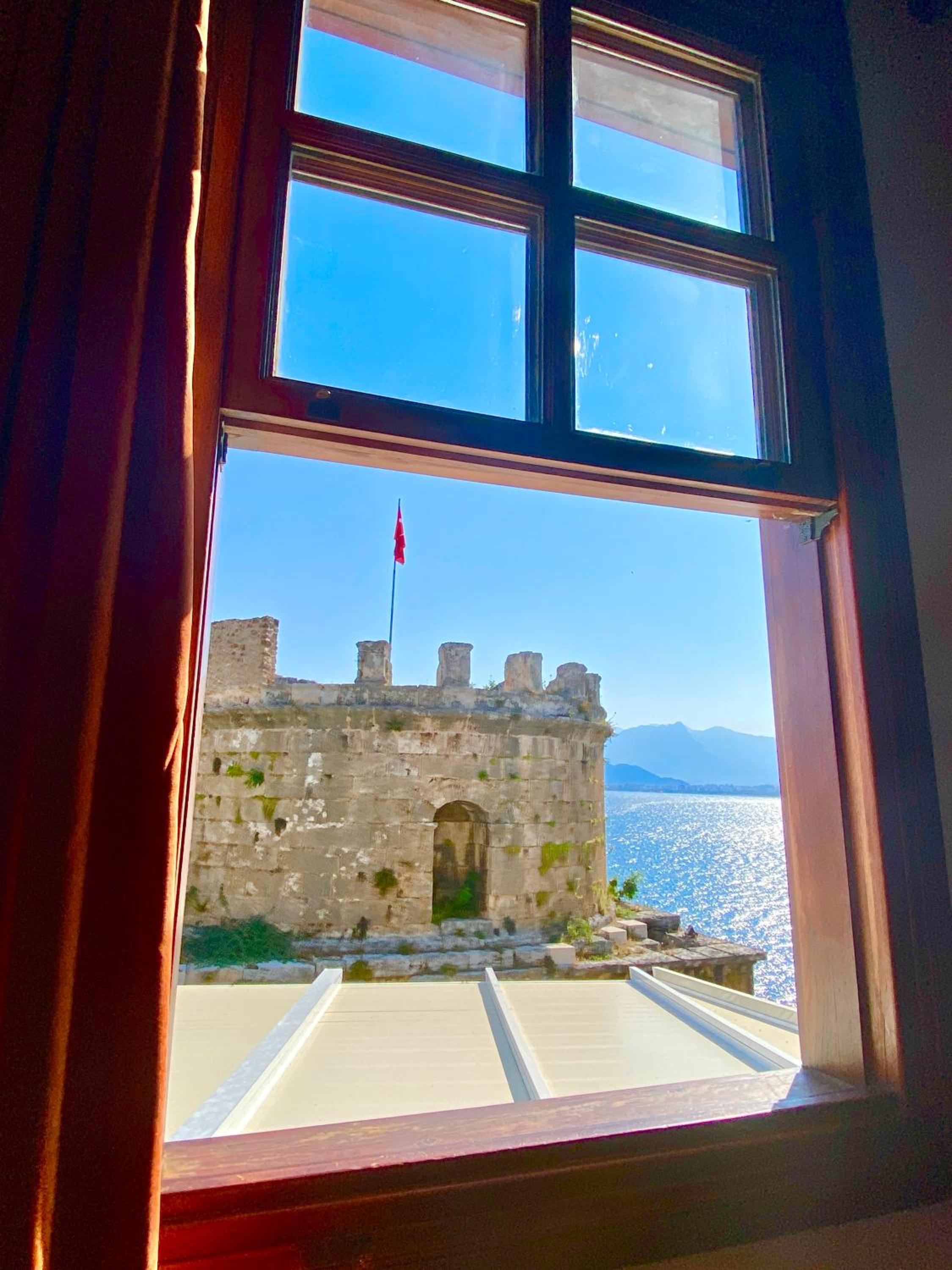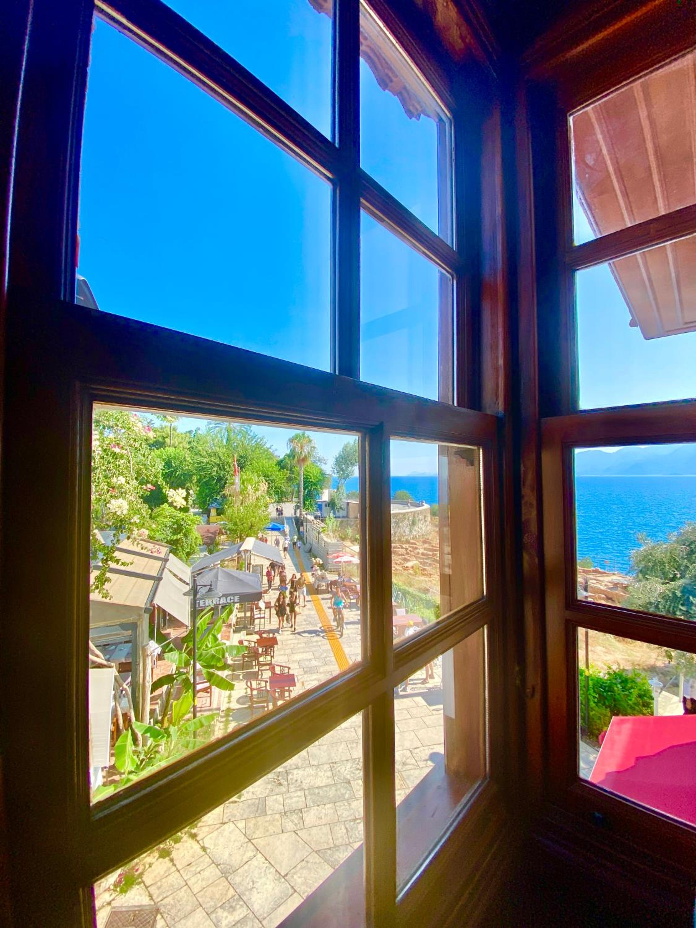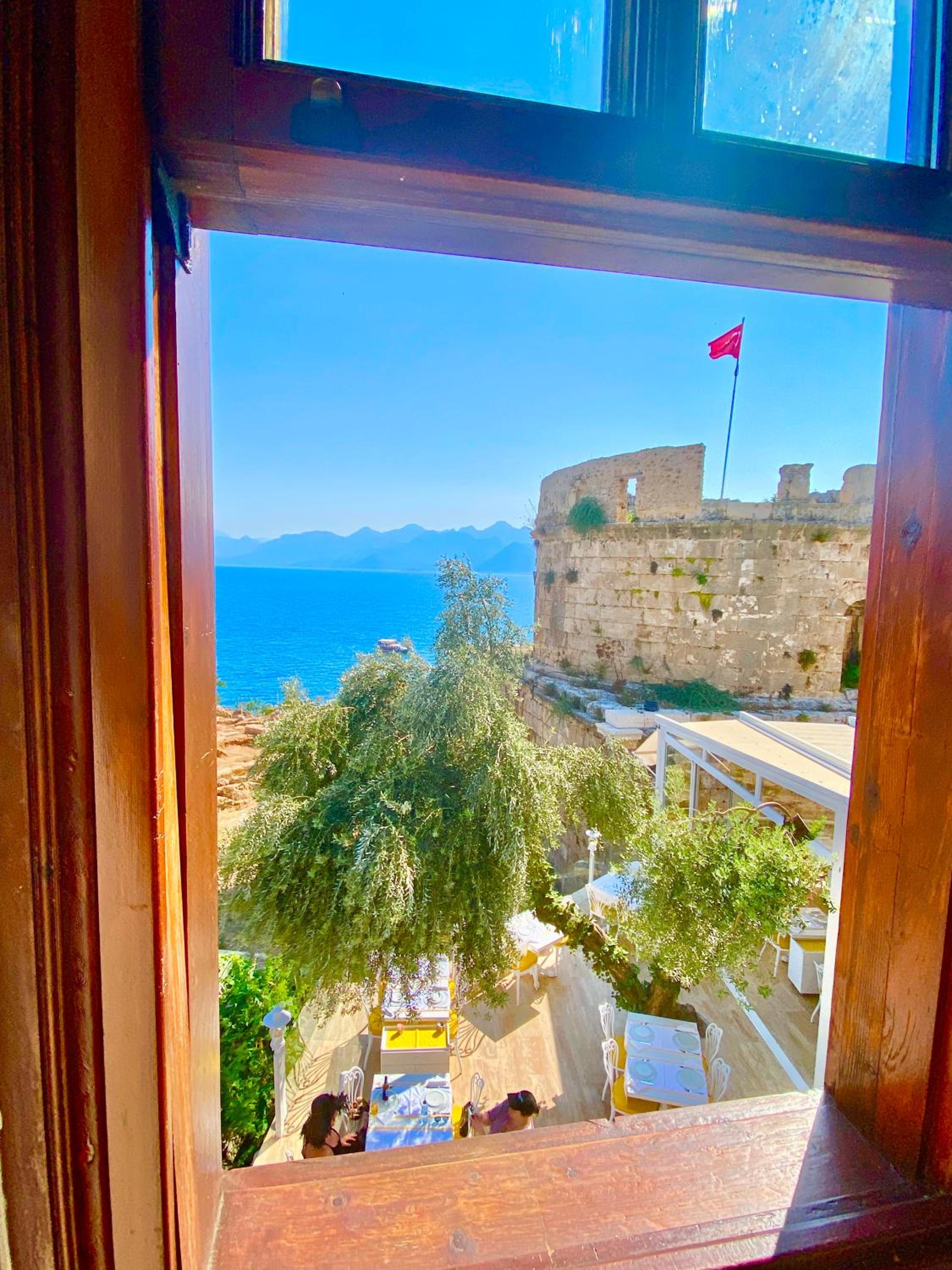 Отель расположен прямо на прогулочной улице старого города с видом на море, и представляет собой 4 номера на втором этаже ресторана. Сам номер очень колоритный с деревянным потолком, винтажной люстрой, круговыми окнами. Чудесный вид из окна на башню и море, горы по другую сторону бухты! Есть балкон, где можно поужинать и поглазеть на гуляющую публику. Шум и музыка с улицы терпимые, но вот из бара напротив колотит очень громкая современная музыка - правда, мы были уставшие и крепко уснули даже под нее. Из-за этого любителям тишины отель не посоветую. Завтрак внизу в ресторане континентальный и очень обильный - омлет, фрукты и овощи, зелень, сыры, орехи, булочки. Из напитков почему-то только чай, сказали что кофе нет(((. Я была довольна винтажным номером и потрясающим видом из окна!