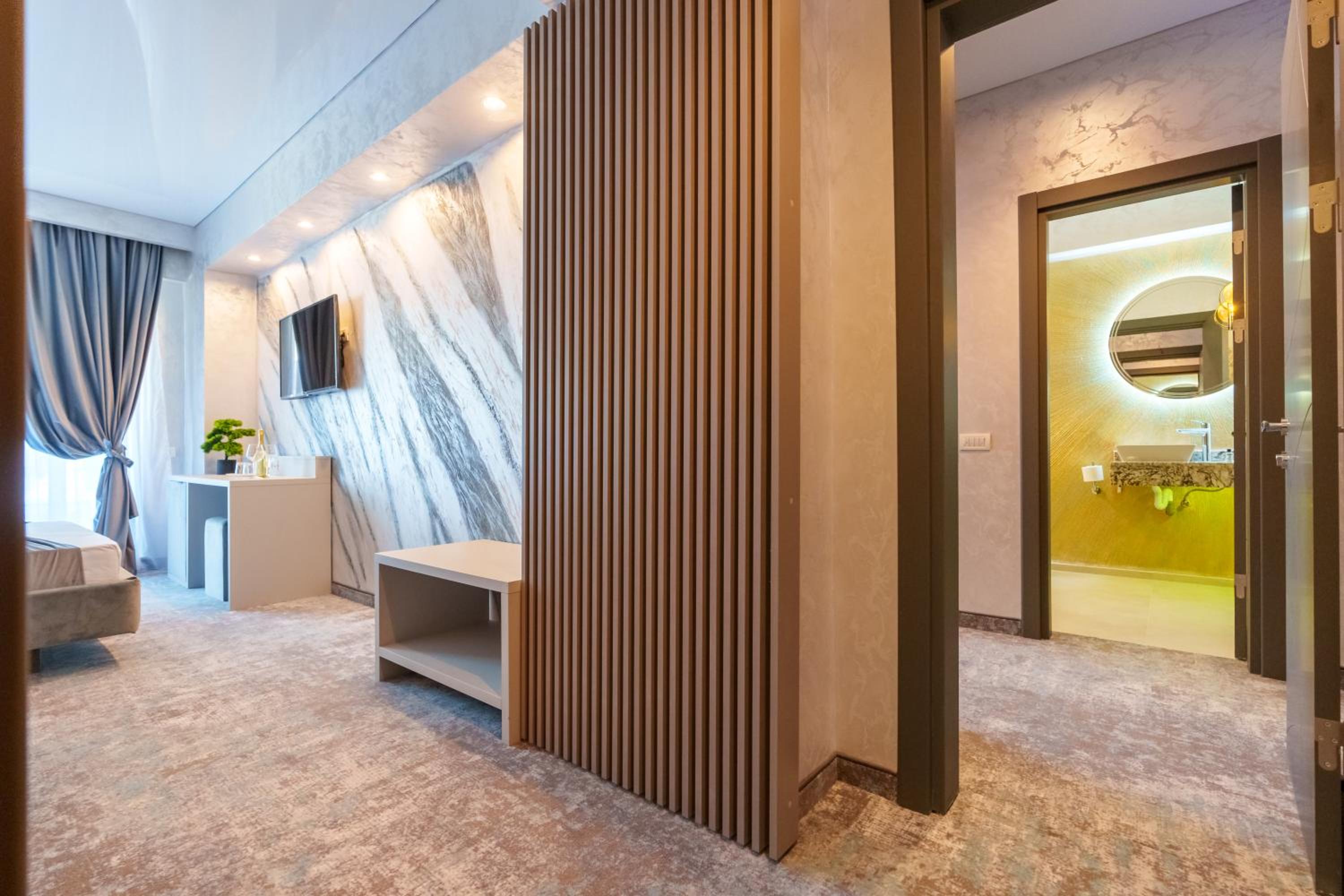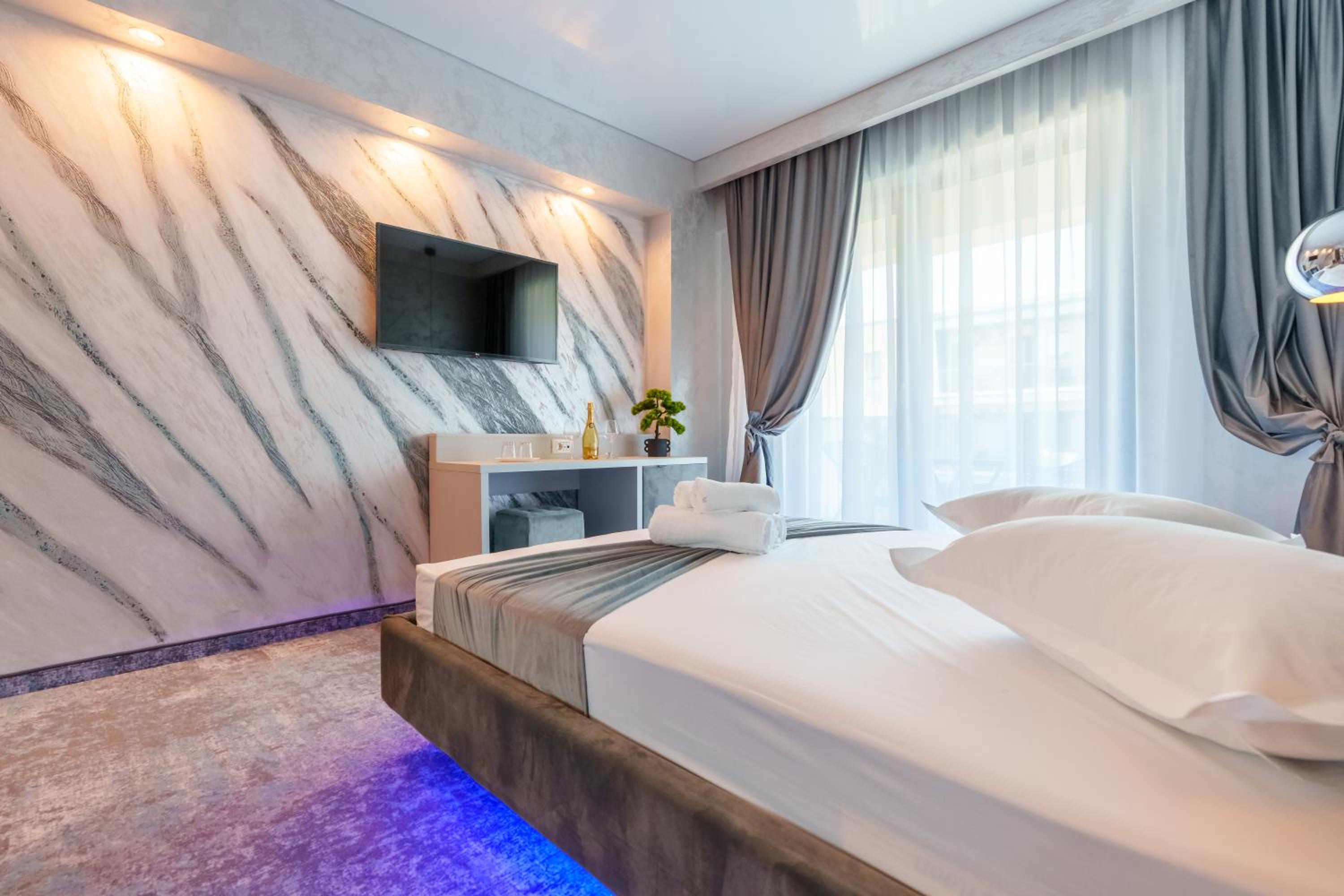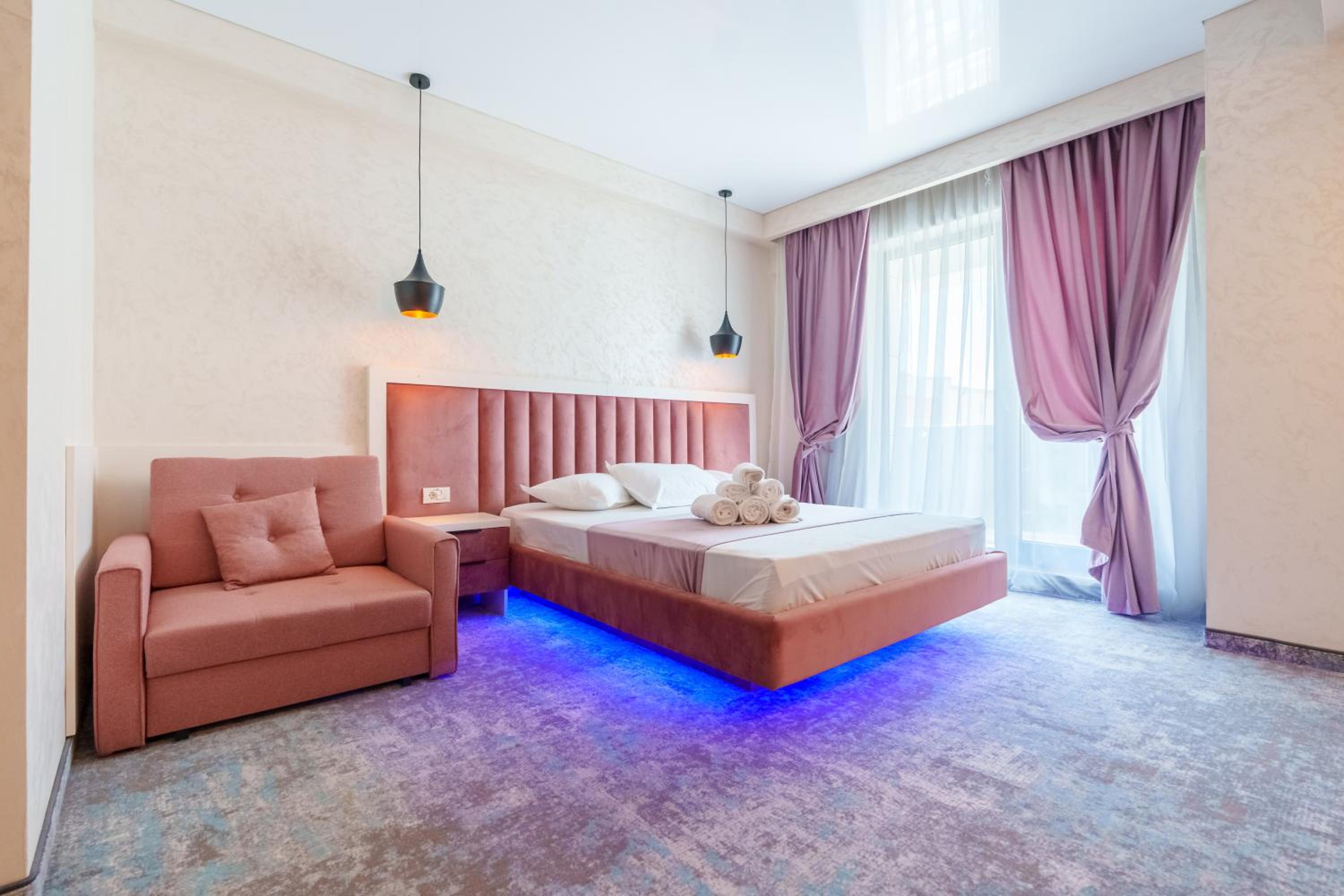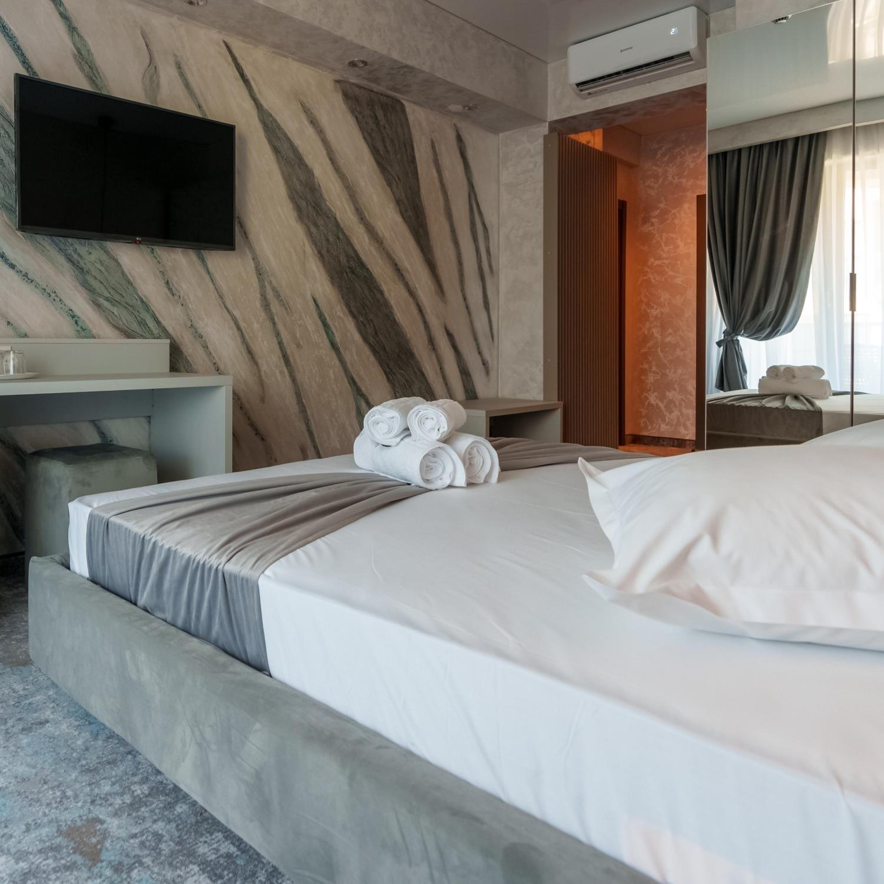 HOTEL KALYA offers a premium stay experience in Năvodari, boasting rooms with balconies and elegant bathrooms equipped with free toiletries and a hairdryer. The cozy bed linen and towels provided ensure a comfortable and relaxing stay for all guests.