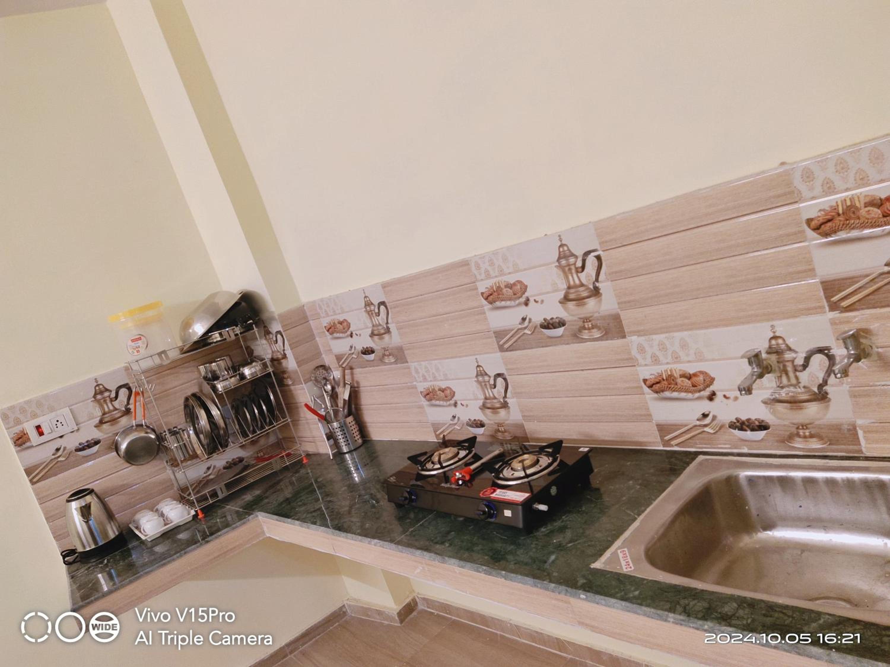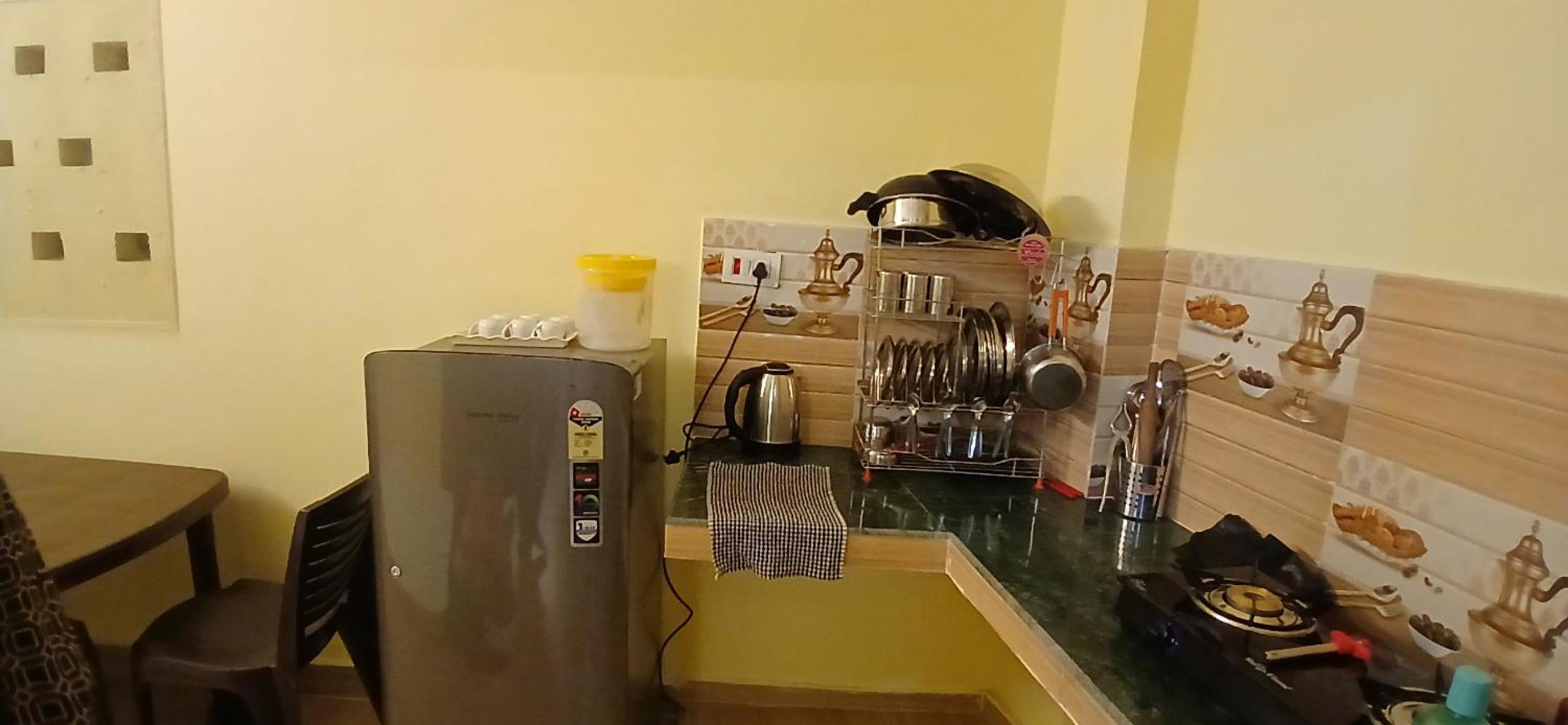 The bathroom was a little too small for my comfort. It also didn't have a sink. Also, a microwave oven can be a good addition to the kitchen.