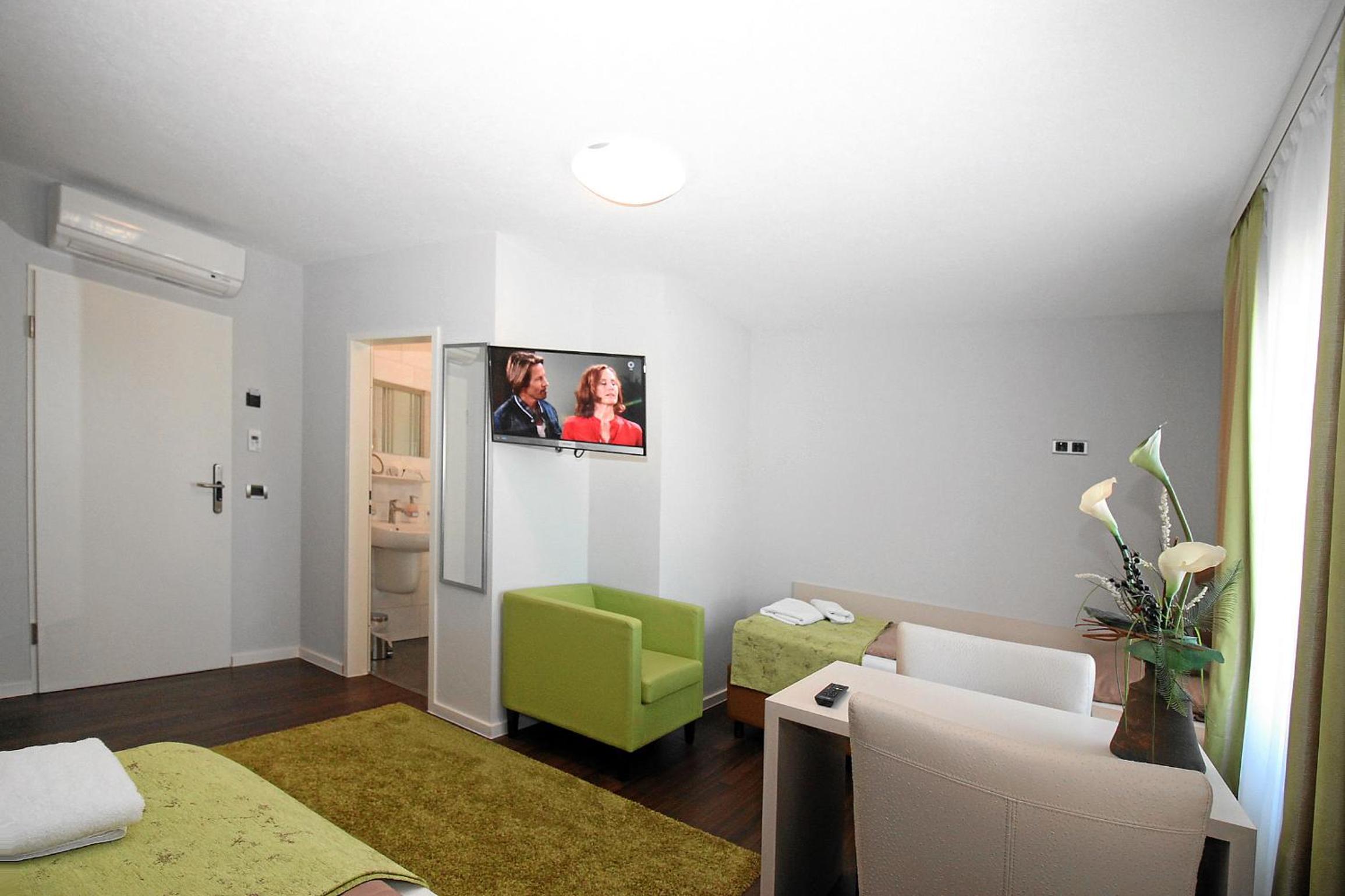 People 13 years old and over stay for € 25 per person per night when using an available extra bed.