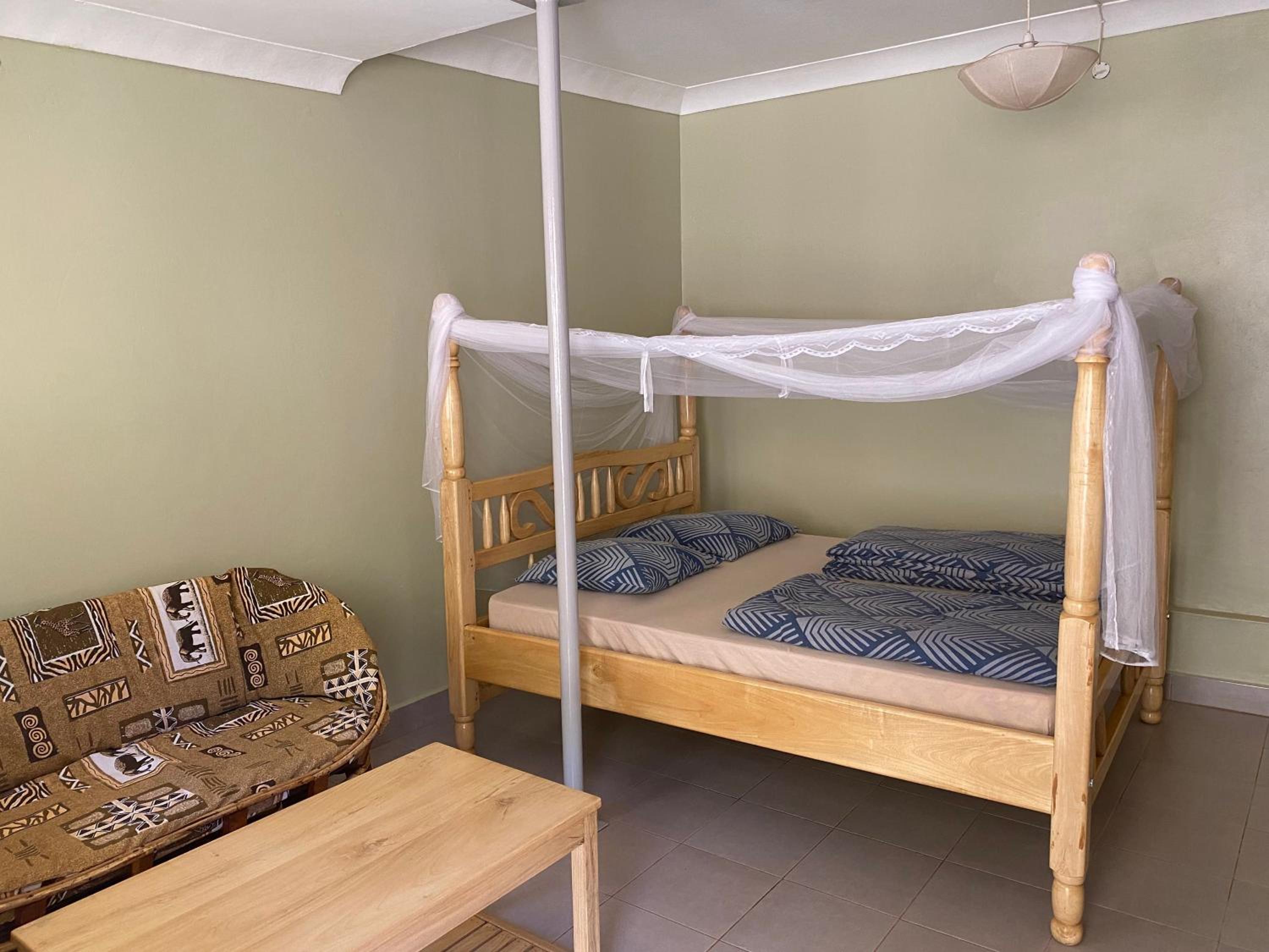 petite case juste à coté de la piscine exterieure. Chambre très pratique et salle de bain exceptionelle Après un periple de 10 jours dans les NP, cette avant derniere étape avant de prendre l'avion à Entebbe a ete très appréciée , surtout la piscine. Petit dejeuner en buffet très bien achalandé, notre meilleur pddm.