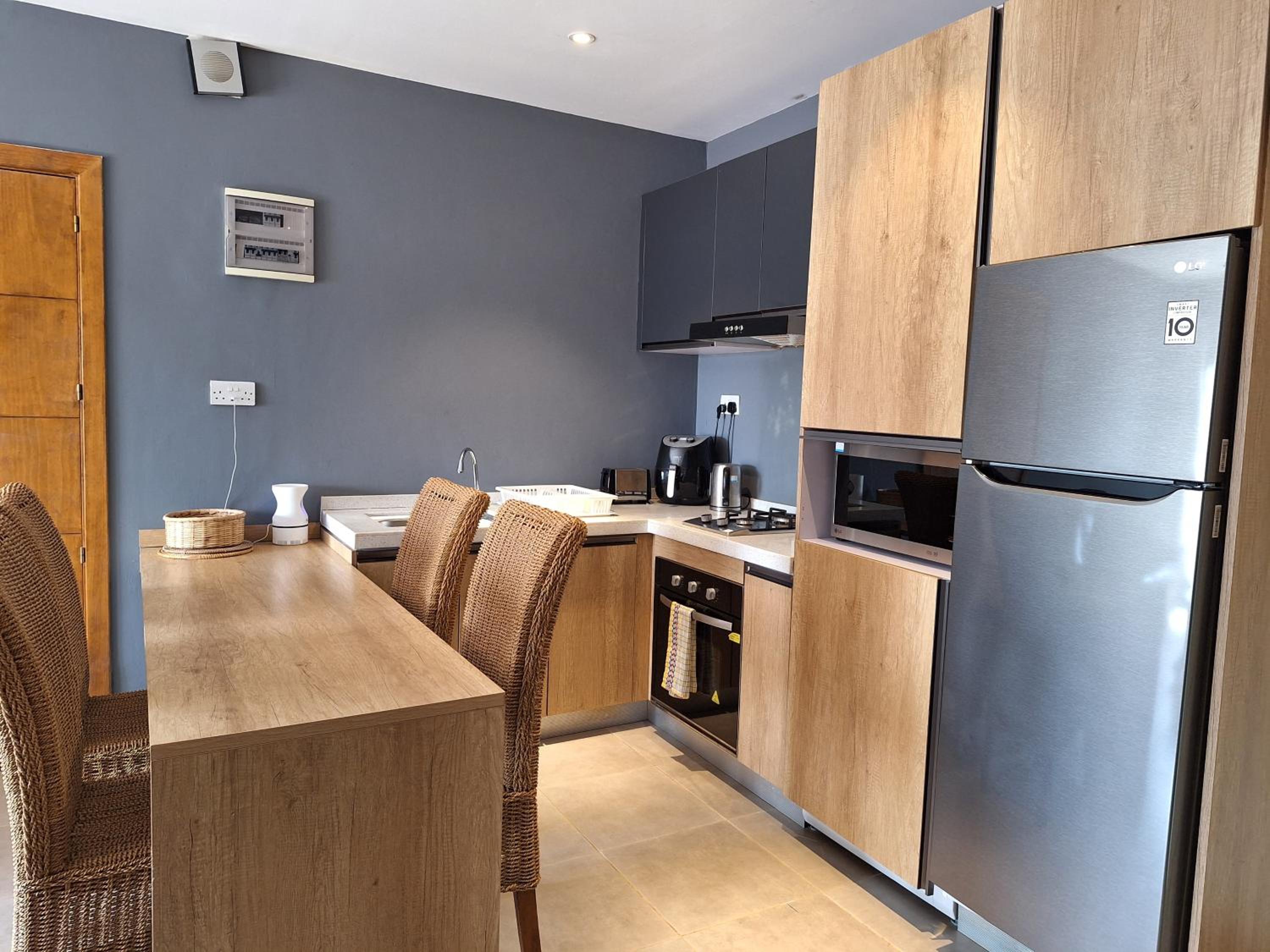 We wished the kitchen had a blender. There was a stove and microwave.