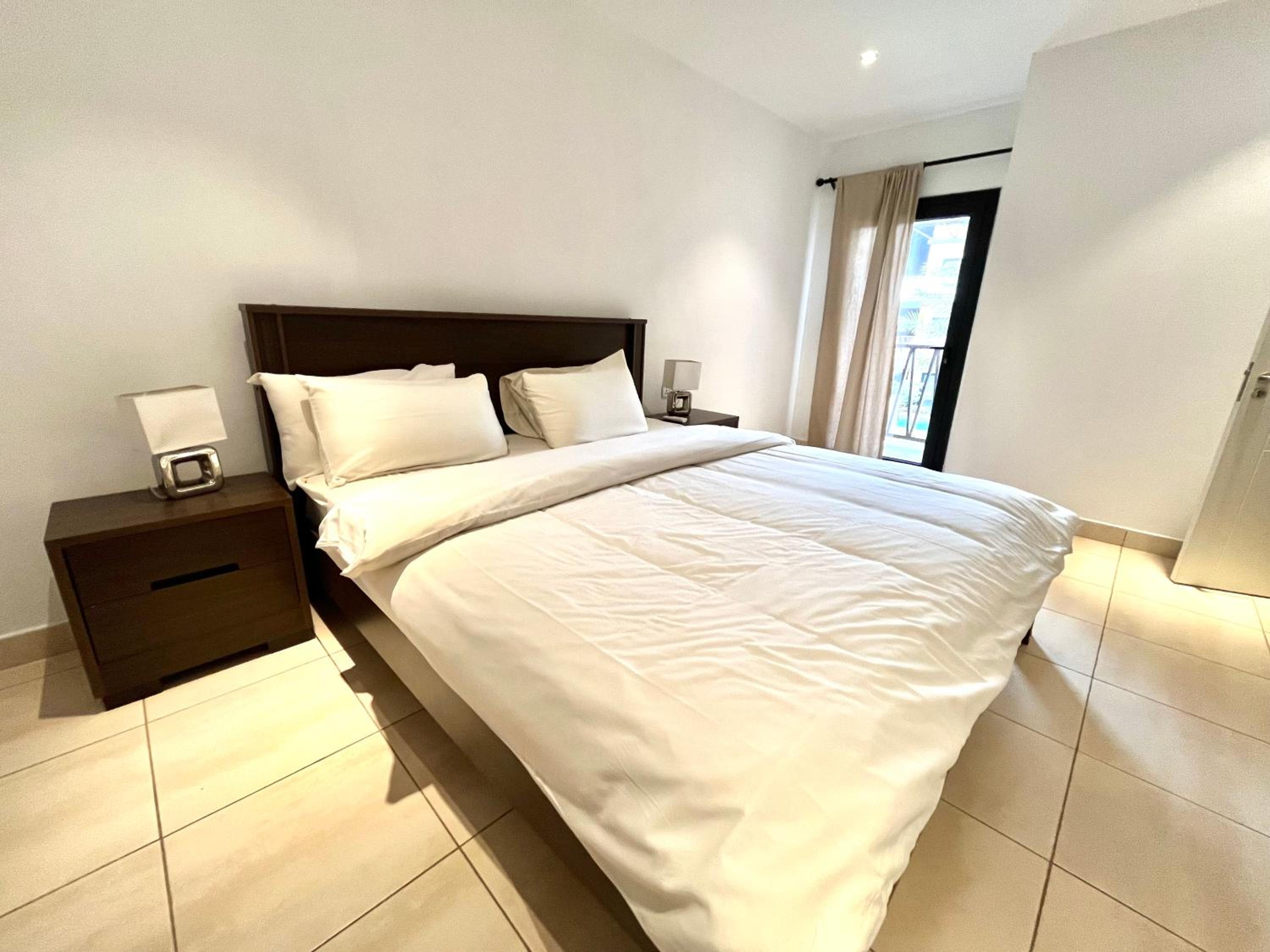 An excellent apartment in an still new-looking block, well furnished and equipped and exactly as it was described. The block is well-run with friendly and helpful staff who were quick to react to the minor issues I had. The communal pool is an ideal and quiet place to spend time with plenty of shade. The location is also great, within walking distance of a wide variety of shops, foreign exchange bureaus, restaurants and bars as well as the beach. I would be happy to go there again.