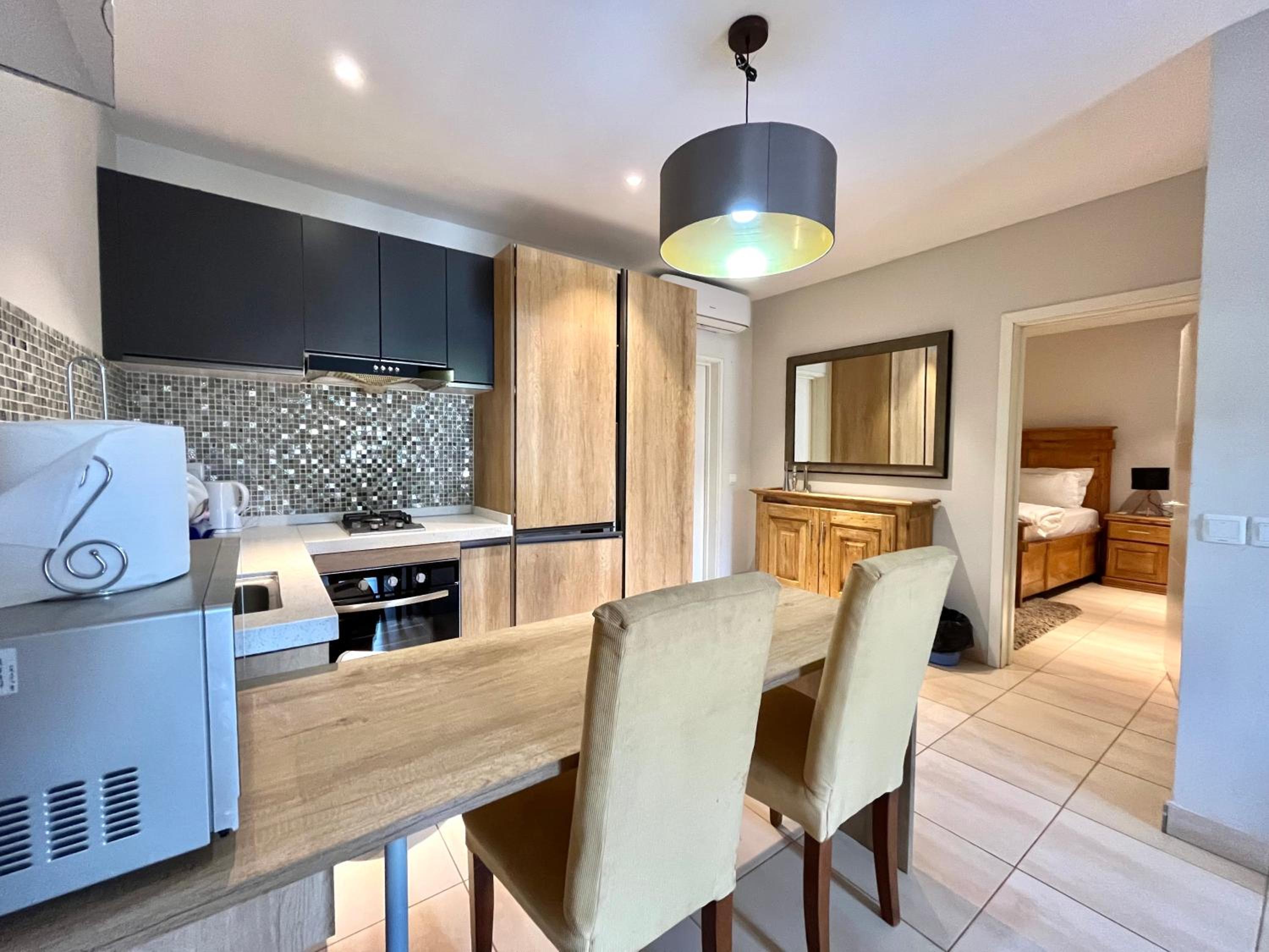 Guests can enjoy the convenience of a 24-hour front desk, airport transfers, and complimentary WiFi. The well-equipped apartments feature a flat-screen TV, kitchen with essential appliances, and some units even boast a private balcony with scenic views.