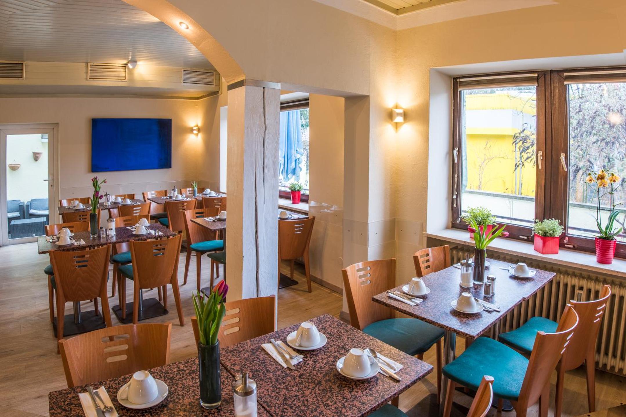 Start your day with a hearty Bavarian-style breakfast buffet at the bright breakfast room, and unwind in the evening with a selection of beers and wines at the cozy hotel bar.