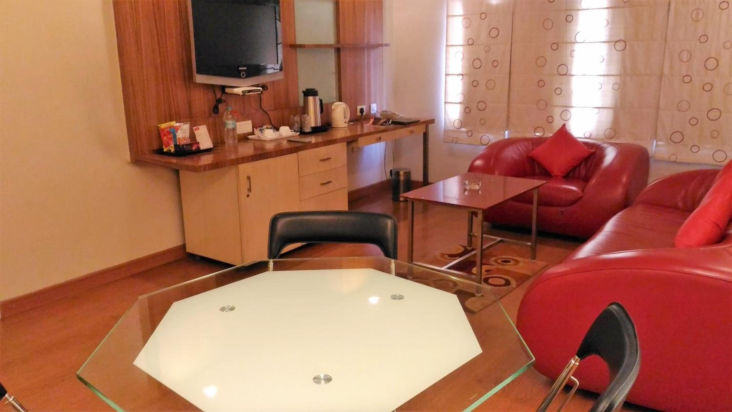 Experience modern and comfortable rooms at Taj Tristar, each equipped with a flat-screen TV and Wi-Fi access. The wooden flooring adds a touch of elegance to your stay, ensuring a relaxing retreat after a day of exploring the city.