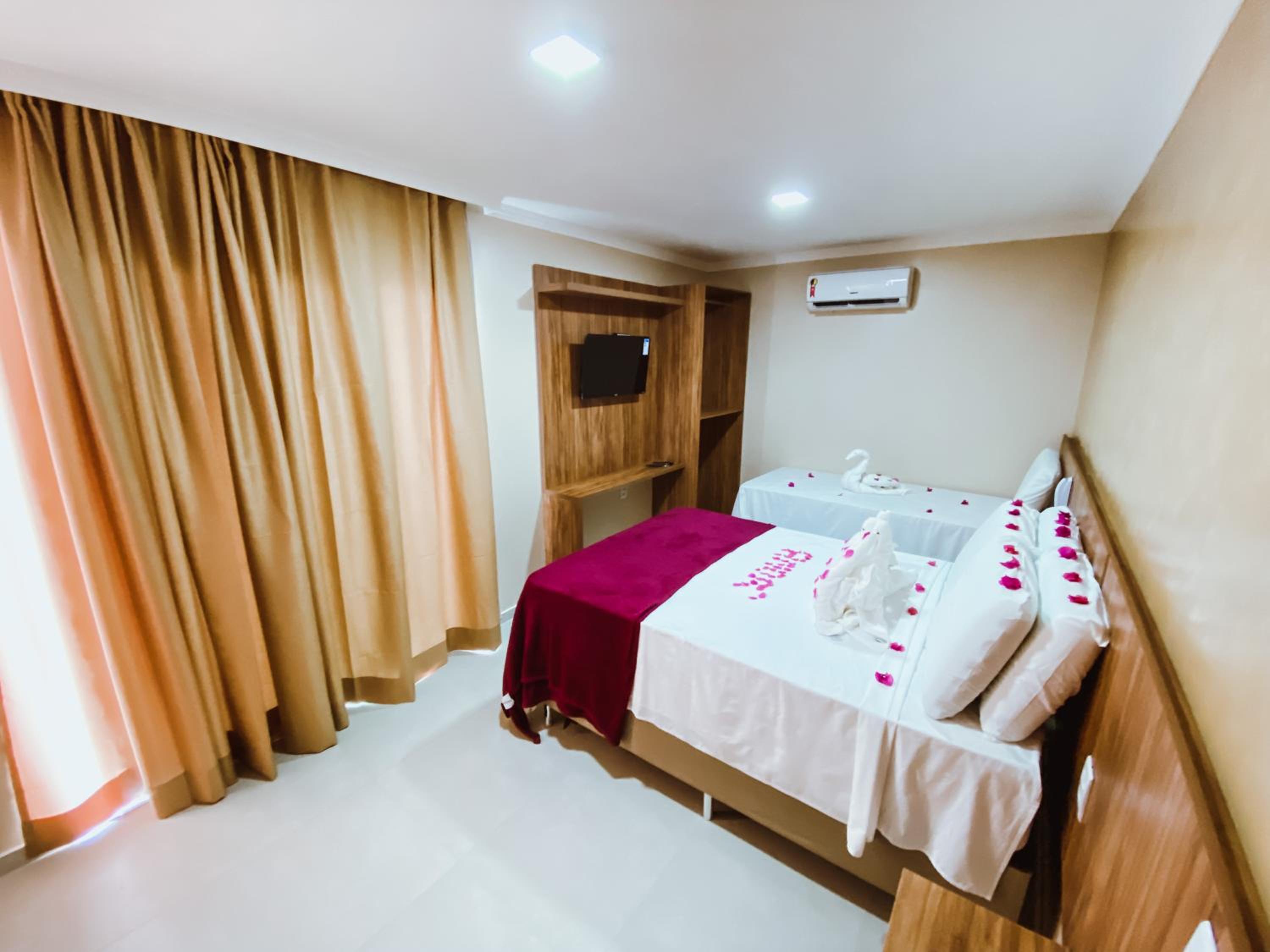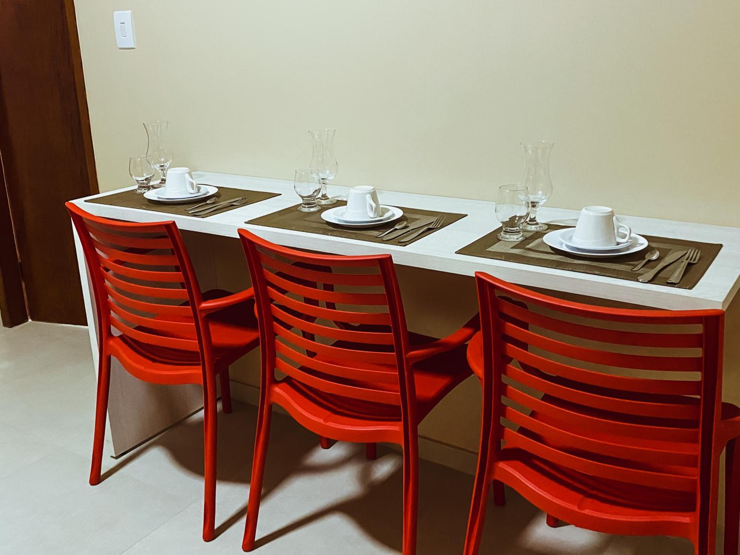 A acomodação foi bem ampla, com pia, mesa, cadeiras frigobar, ambiente climatizado e limpo, o café da manhã é bem completo.