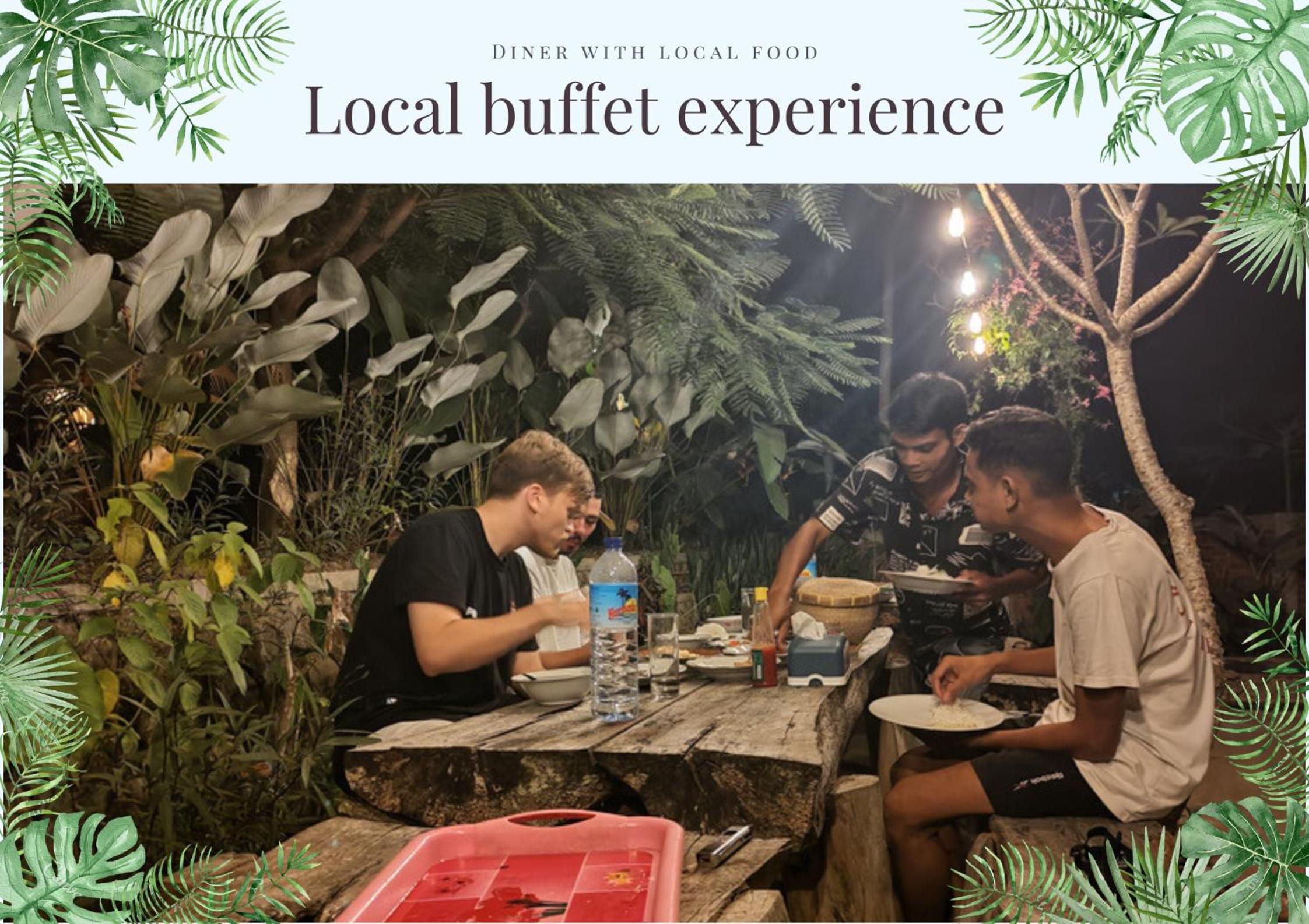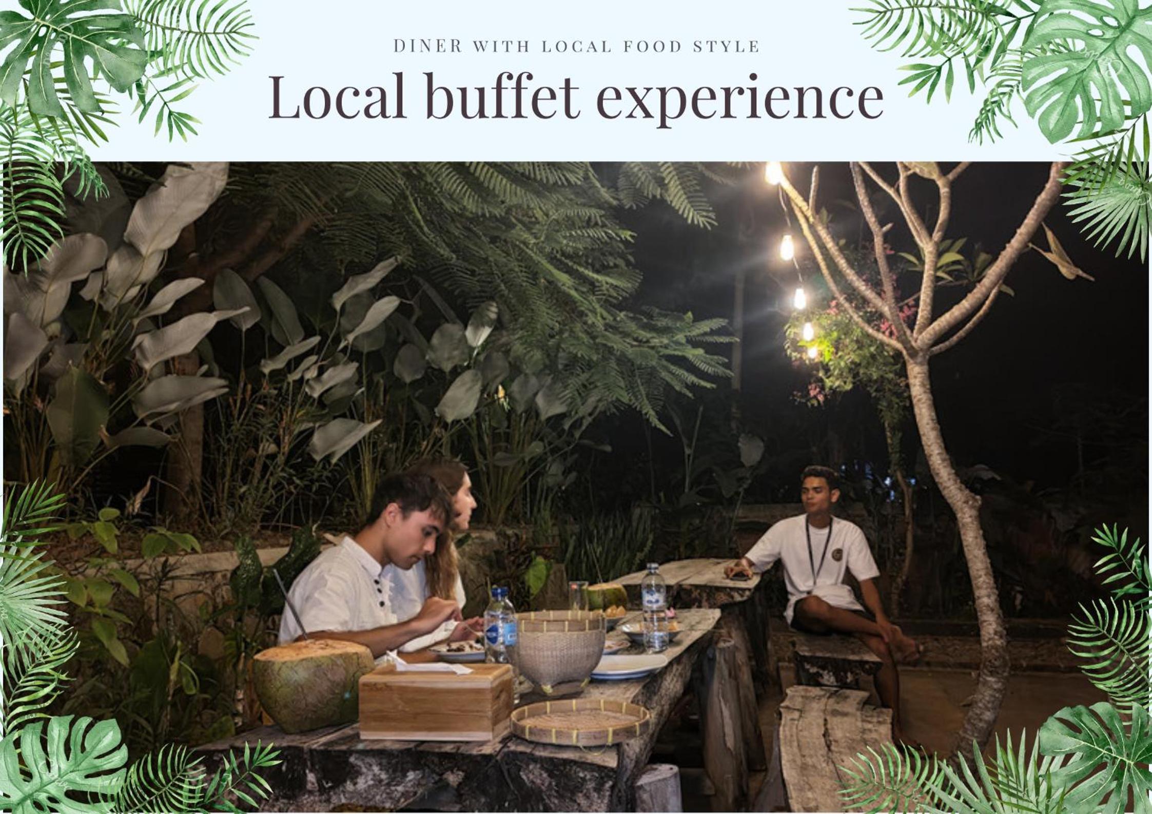 Las instalaciones están muy cuidadas y estás en medio de la naturaleza. Los trabajadores son atentos y tienen tanto desayuno, cena, alquiler de motos, transporte y cenas. Si te alojas aquí recomiendo cenar un día en el alojamiento, ¡un banquete realmente bueno y a buen precio!
