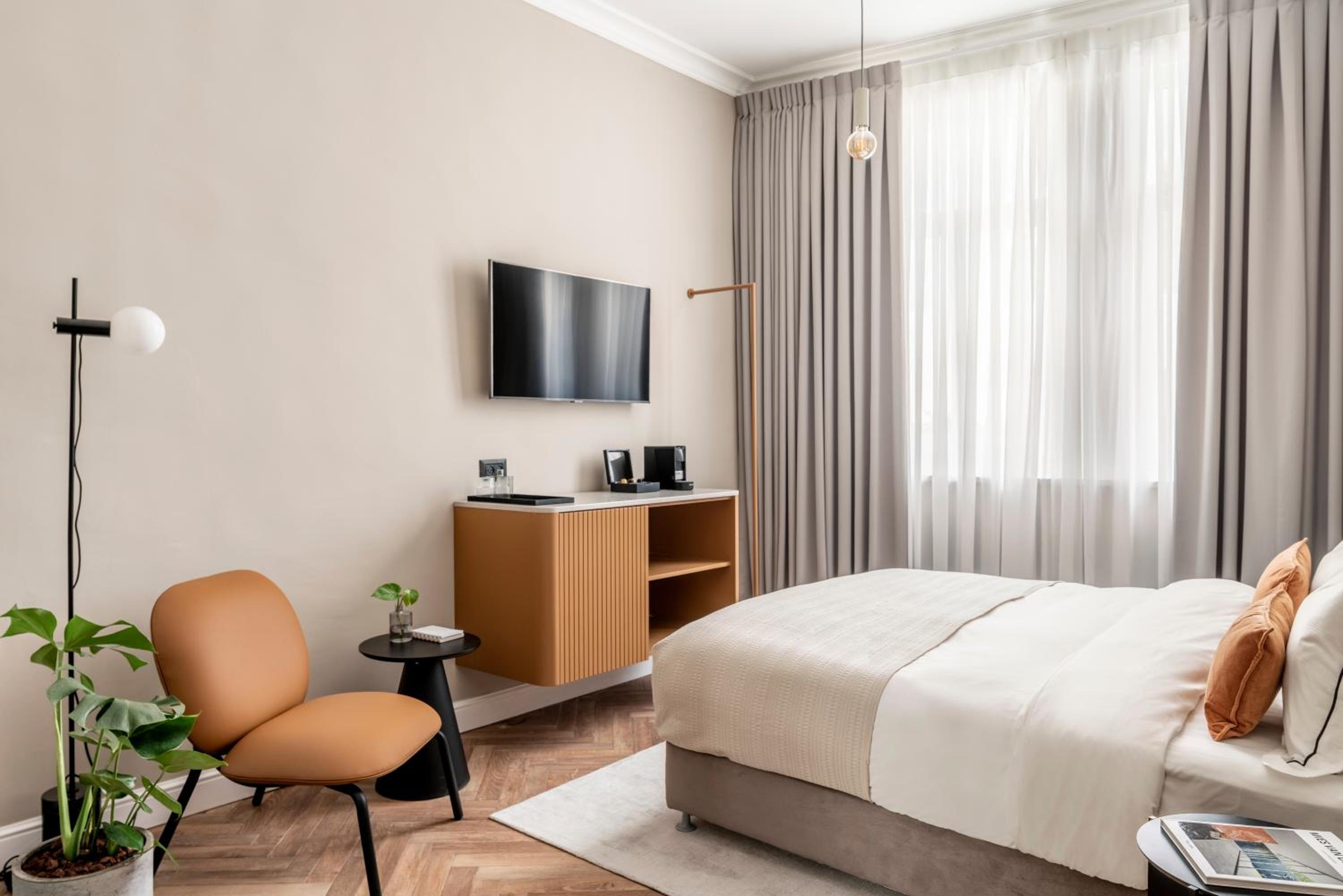 חדר מרווח וחמוד עם מרפסת נחמדה על הרחוב. תאורה נעימה, מיטה נוחה ורחבה, טלוויזיה ממקומת מצוין. עיצוב מוקפד ויפה. מכונת קפה. מיקום המלון מצוין. במרכז העיר ליד מסעדות וברים.