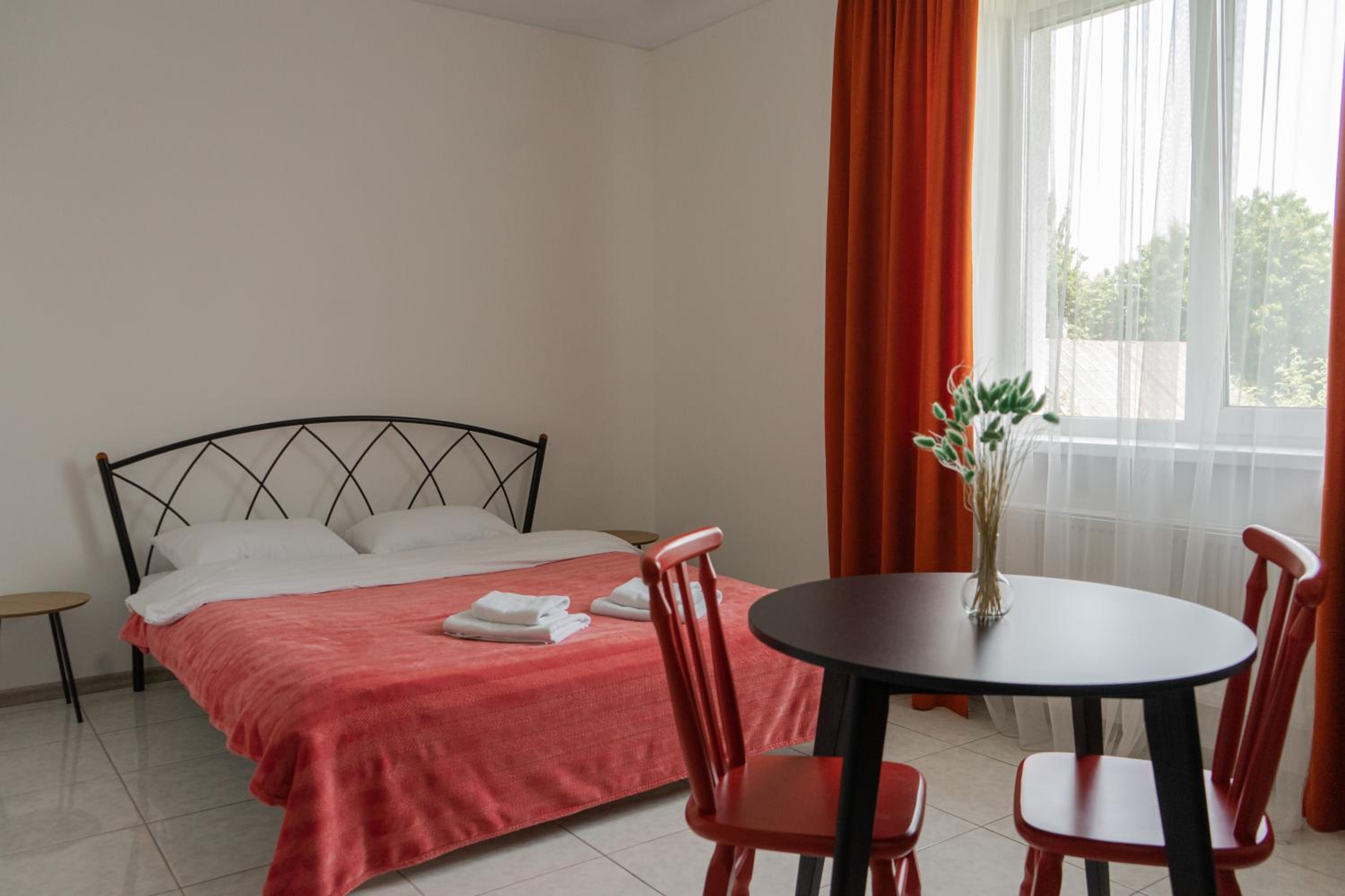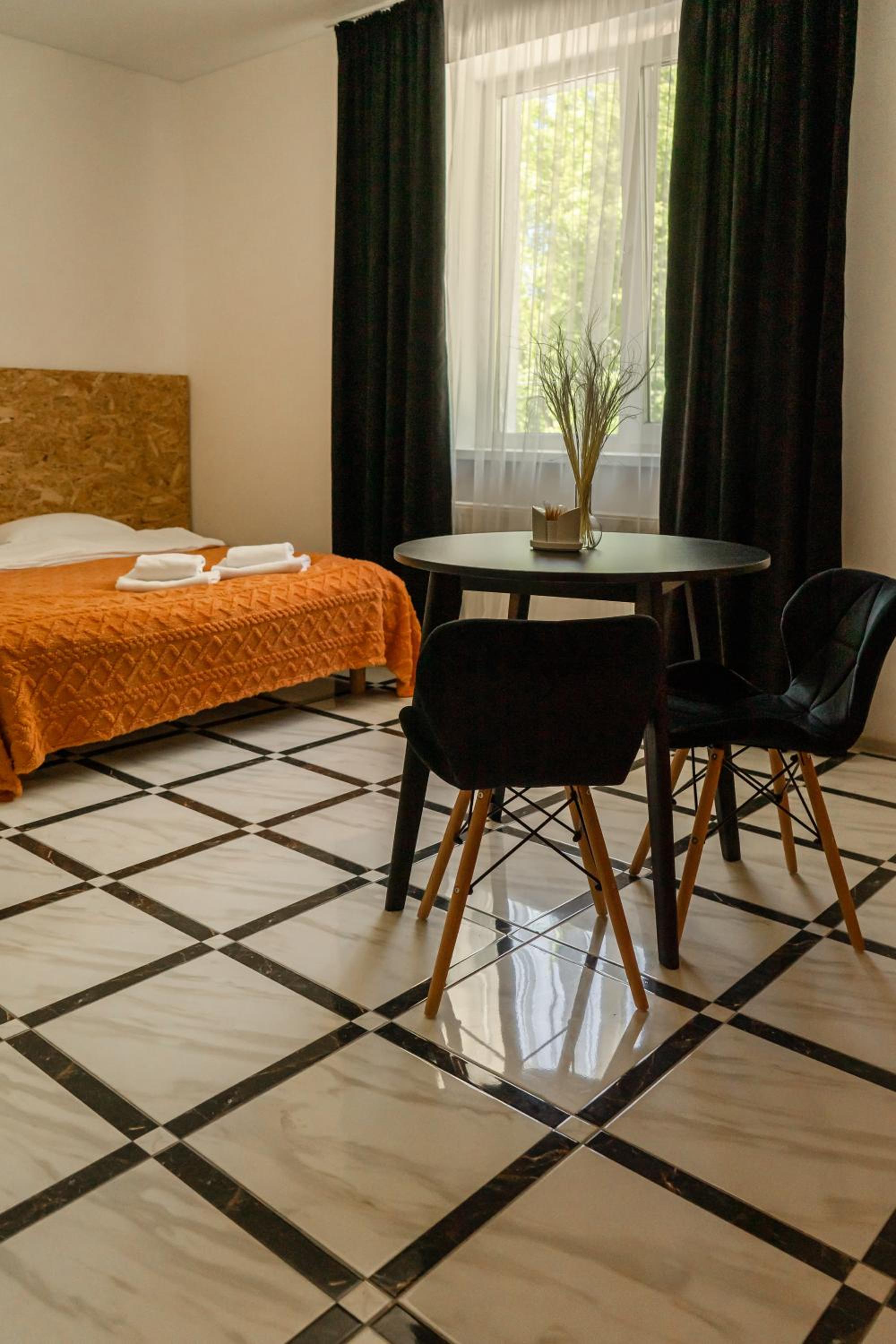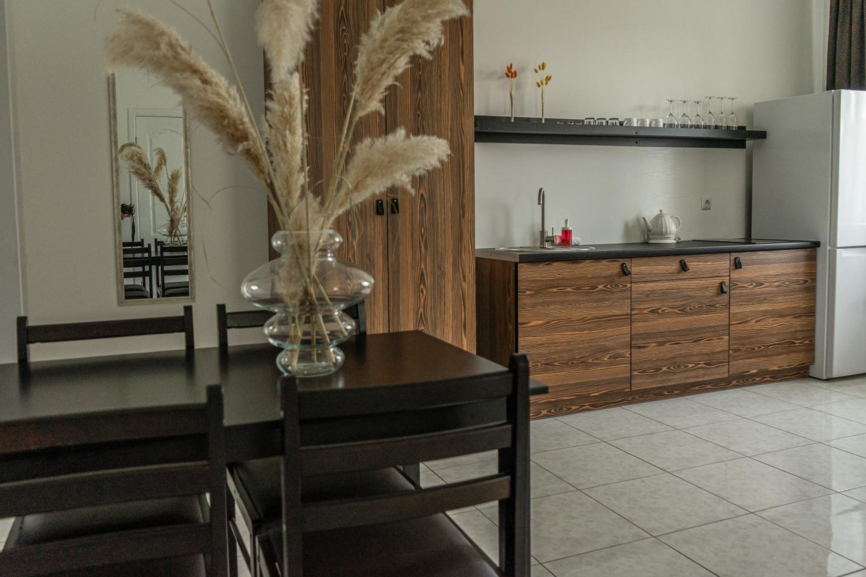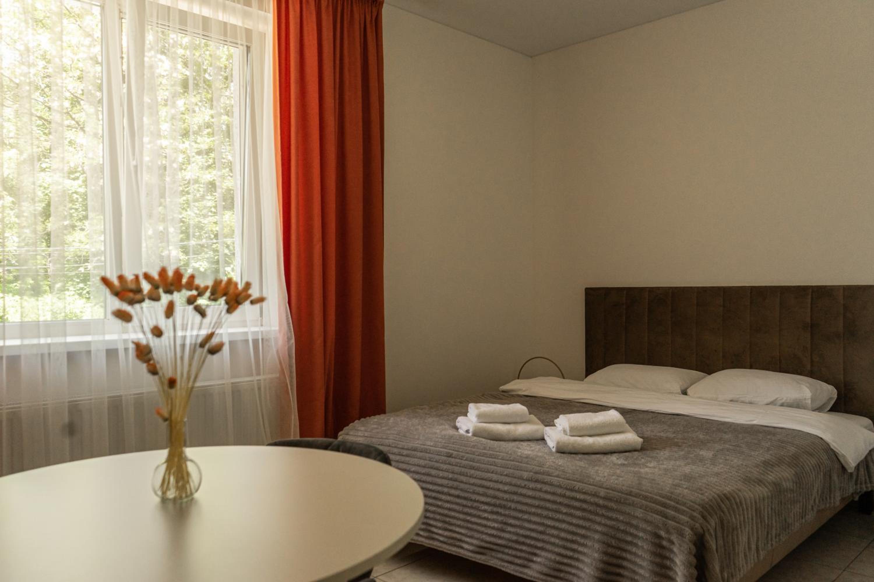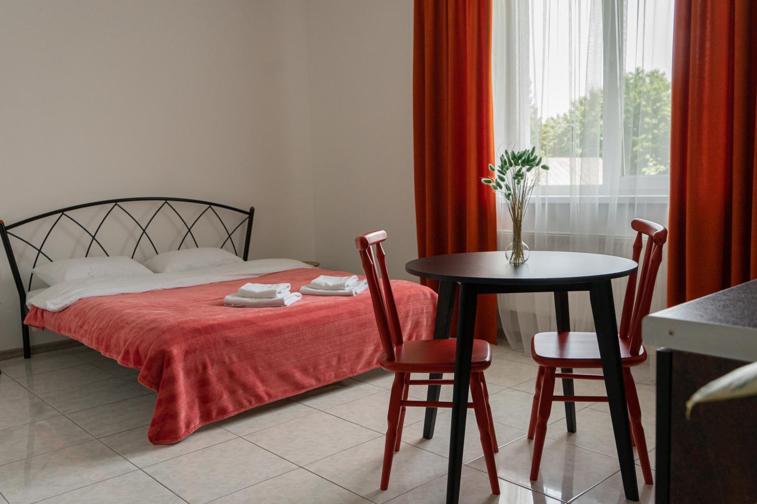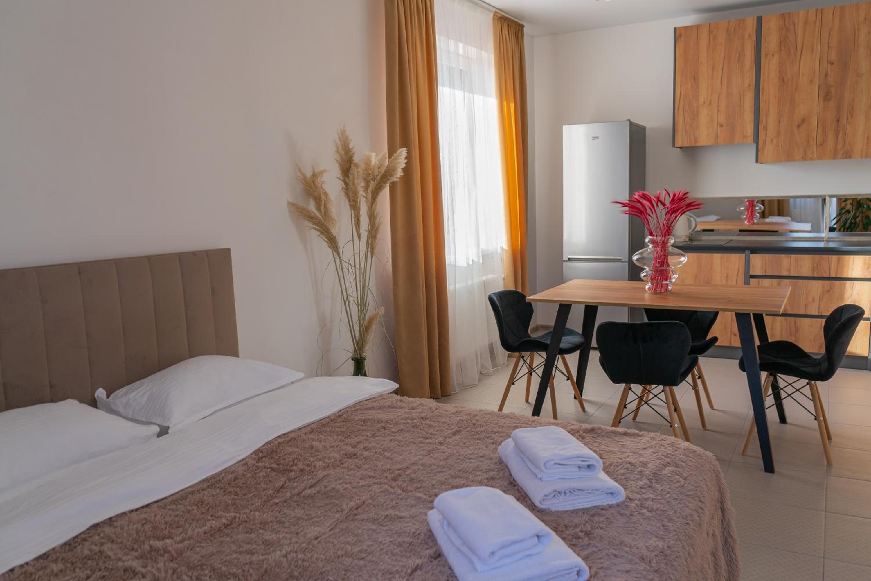 Їхали з запізненням відносно запланованого часу. Важливо було переночувати в номері, який розрахований на 4 осіб не за всі гроші світу, оскільки по дорозі більшість отелів пропонували 2 окремих номери. Саме ці апартаменти знаходилися по дорозі, що дуже зручно, запропонували необхідне нам розміщення, чистий номер, сучасний ремонт, в номері є все необхідне для самостійного приготування їжі (посуд, мікрохвильовка, індукційна піч, чайник). Привітні адміністартори. Є можливість купити готову їжу.