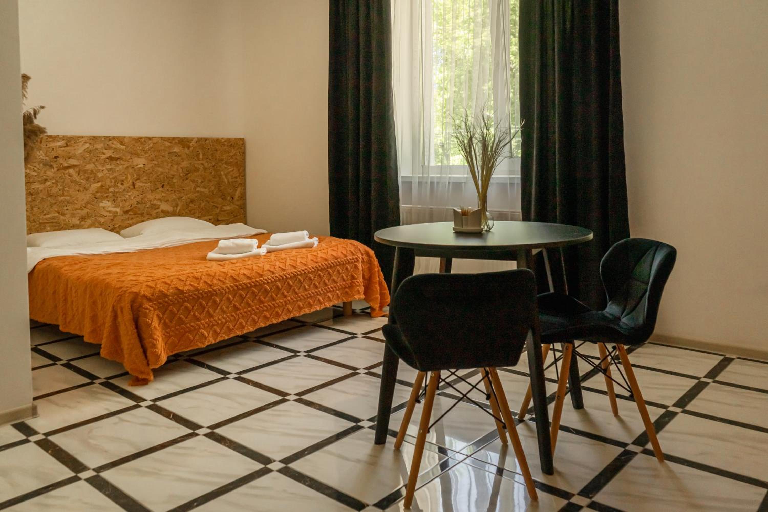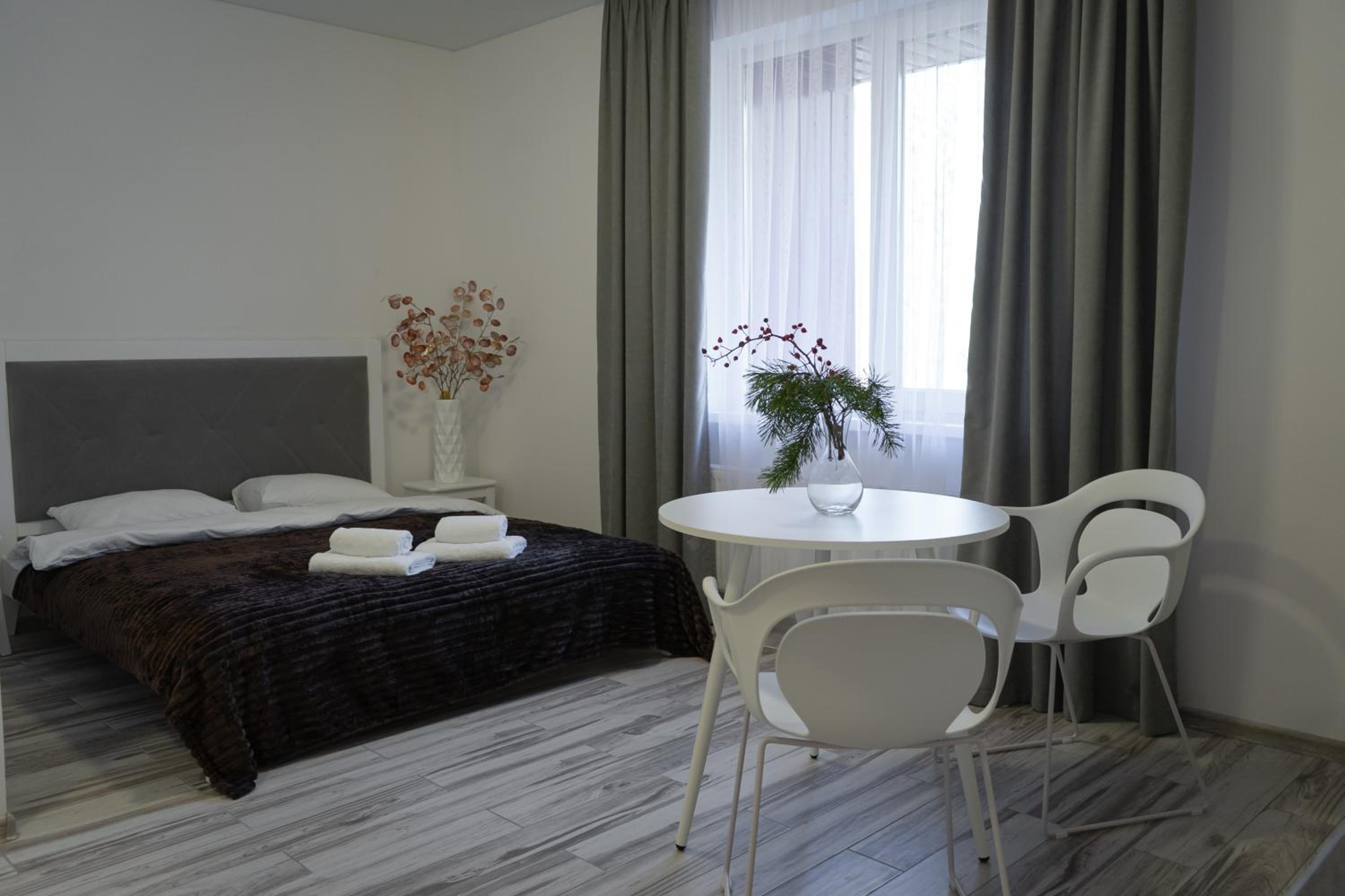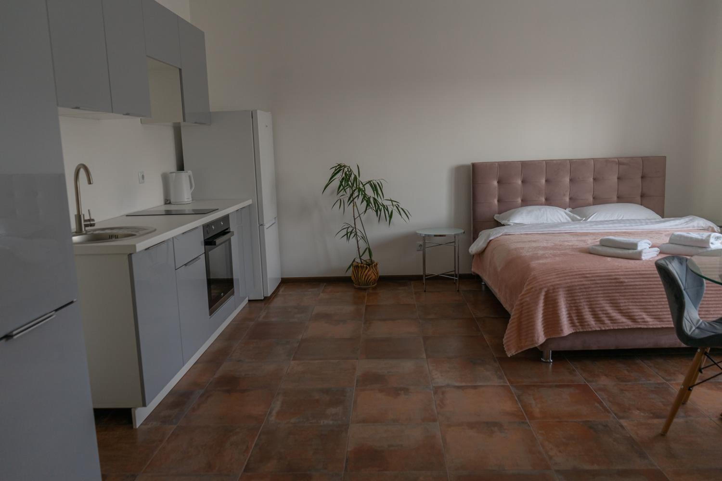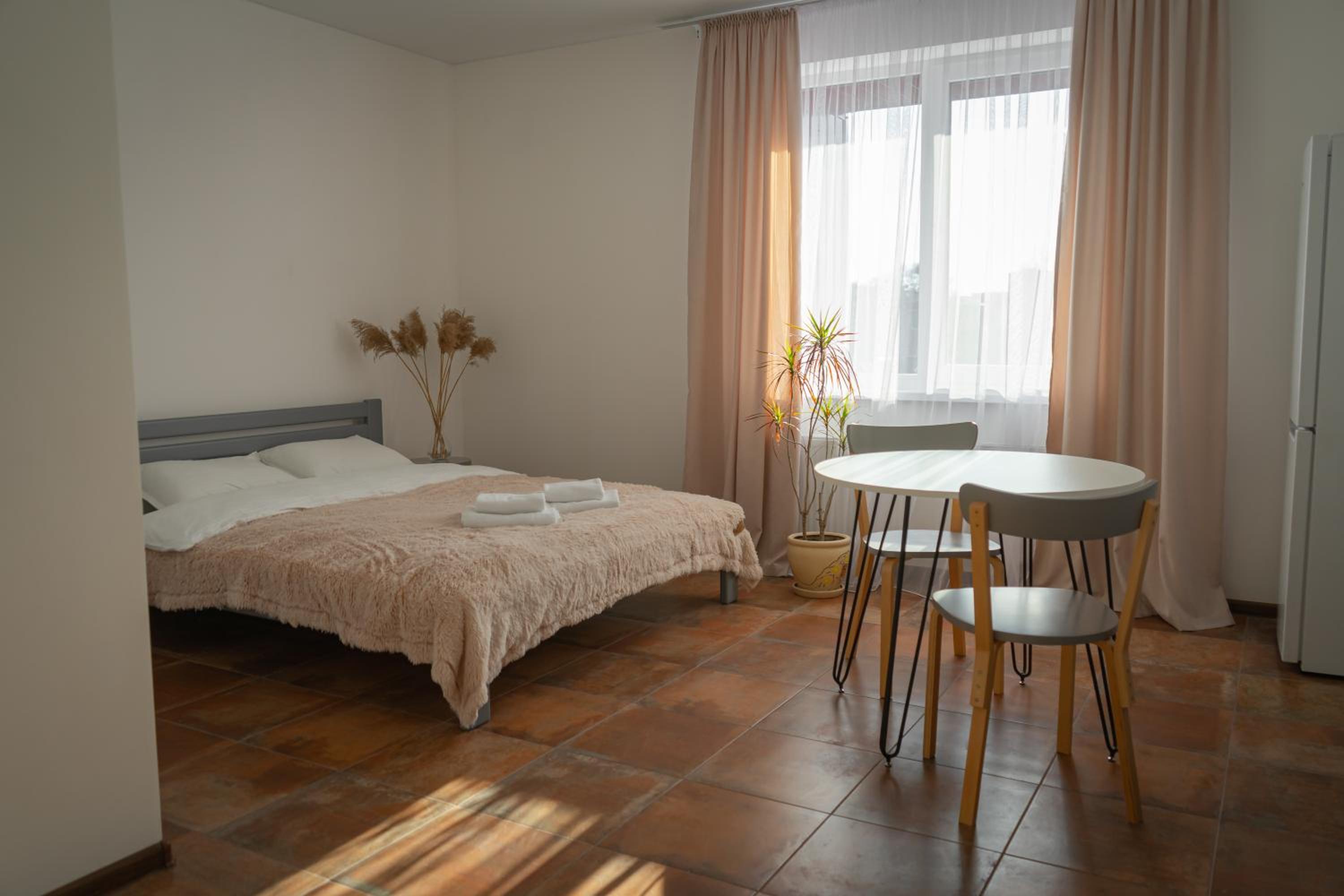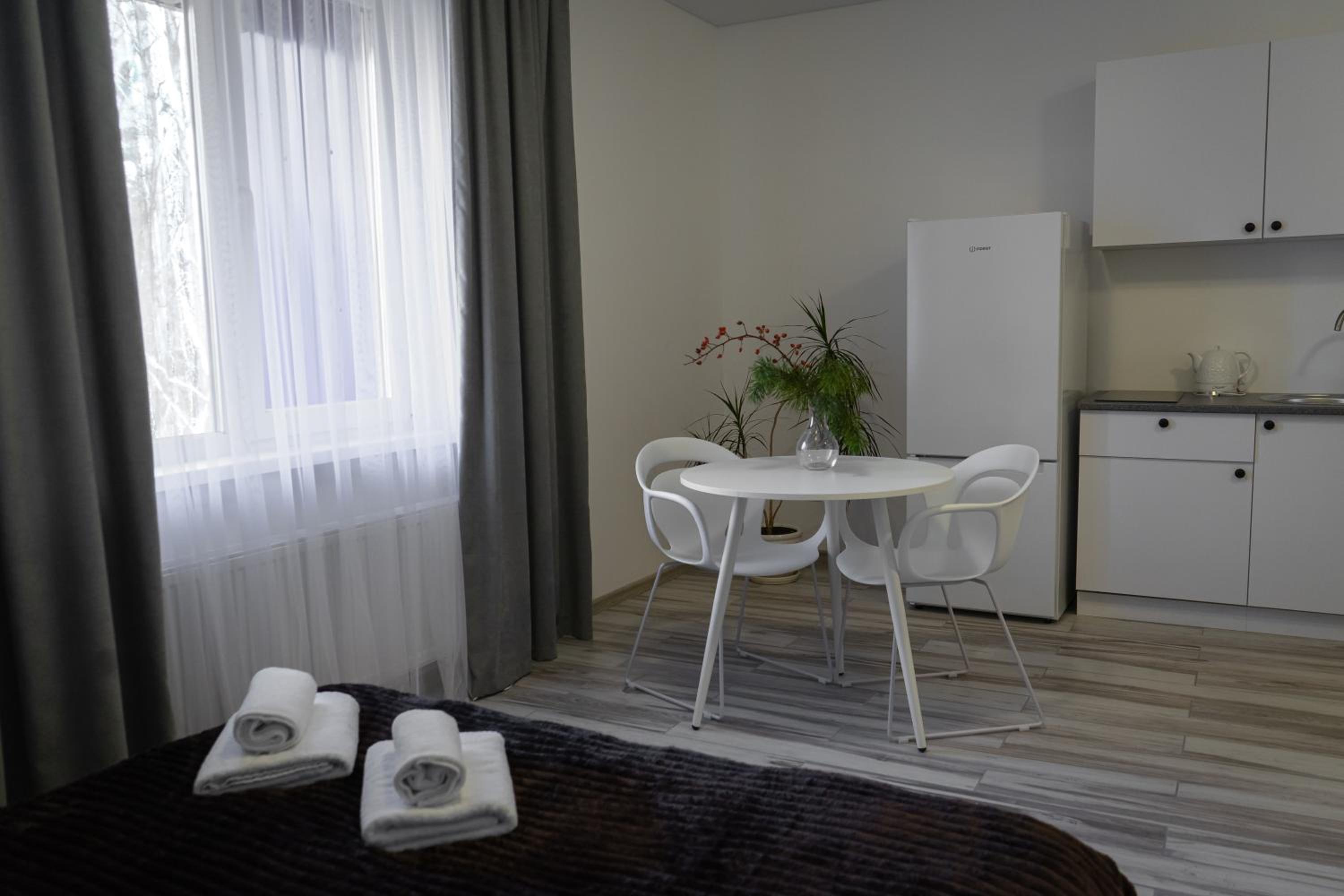 Їхали з запізненням відносно запланованого часу. Важливо було переночувати в номері, який розрахований на 4 осіб не за всі гроші світу, оскільки по дорозі більшість отелів пропонували 2 окремих номери. Саме ці апартаменти знаходилися по дорозі, що дуже зручно, запропонували необхідне нам розміщення, чистий номер, сучасний ремонт, в номері є все необхідне для самостійного приготування їжі (посуд, мікрохвильовка, індукційна піч, чайник). Привітні адміністартори. Є можливість купити готову їжу.