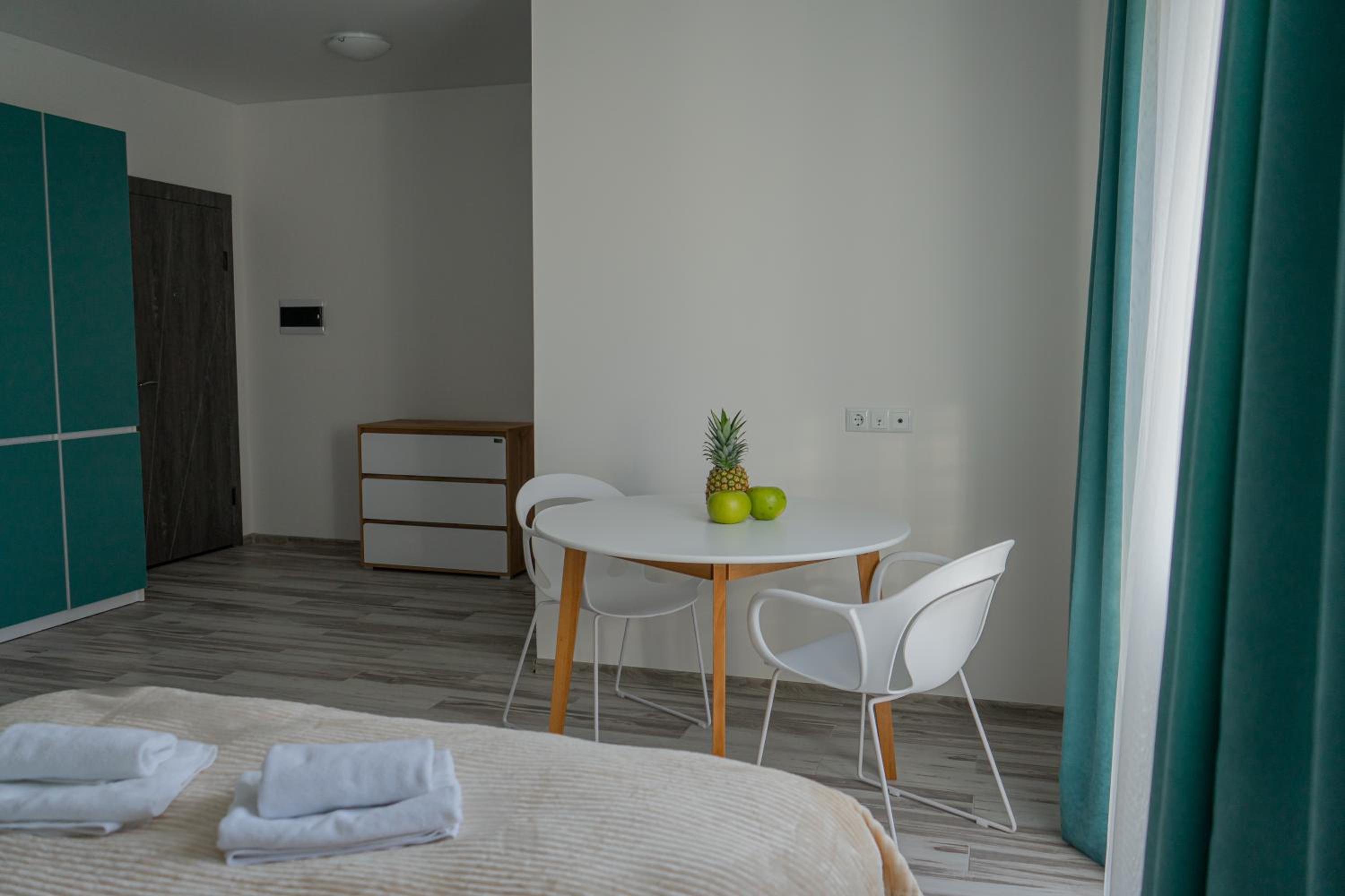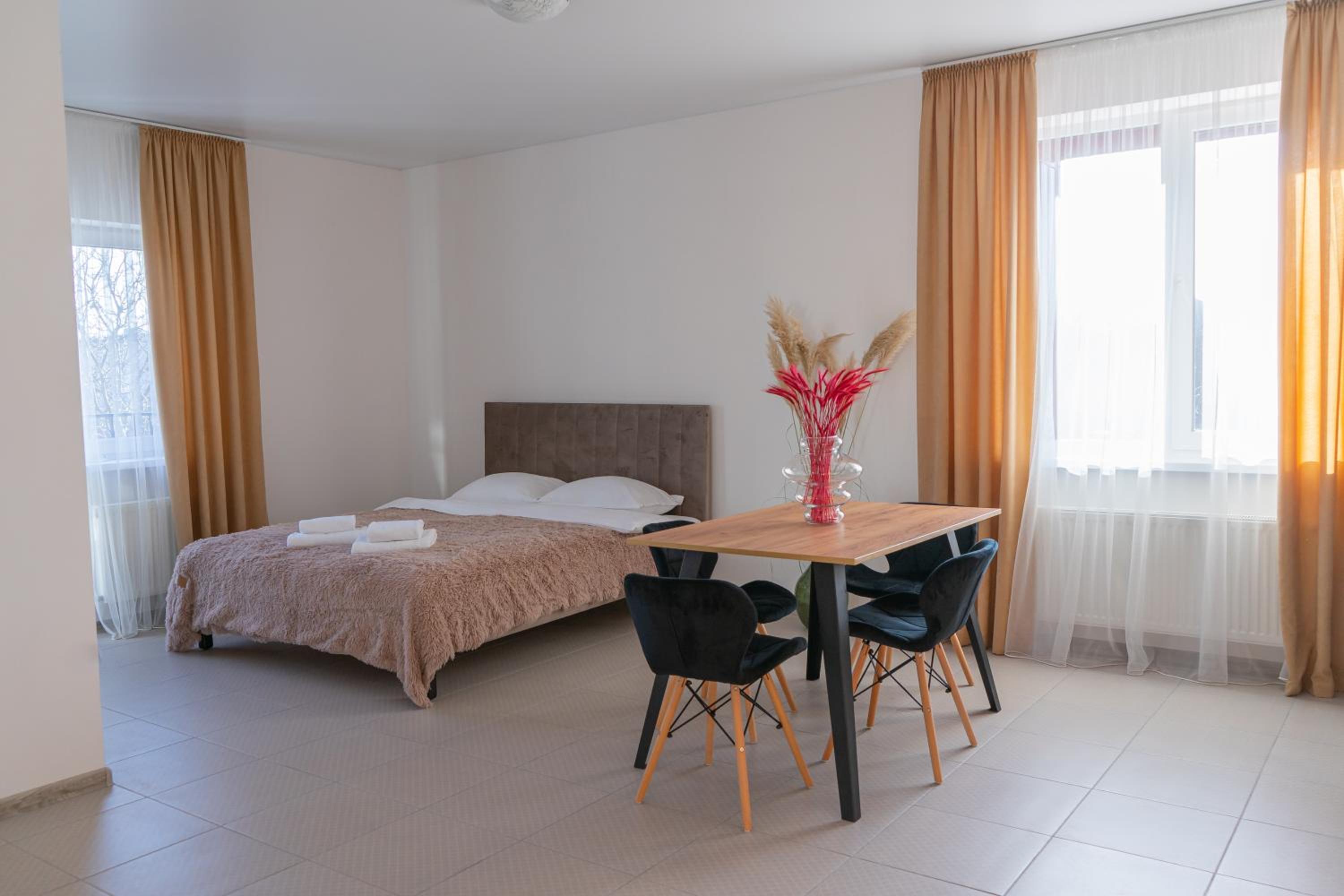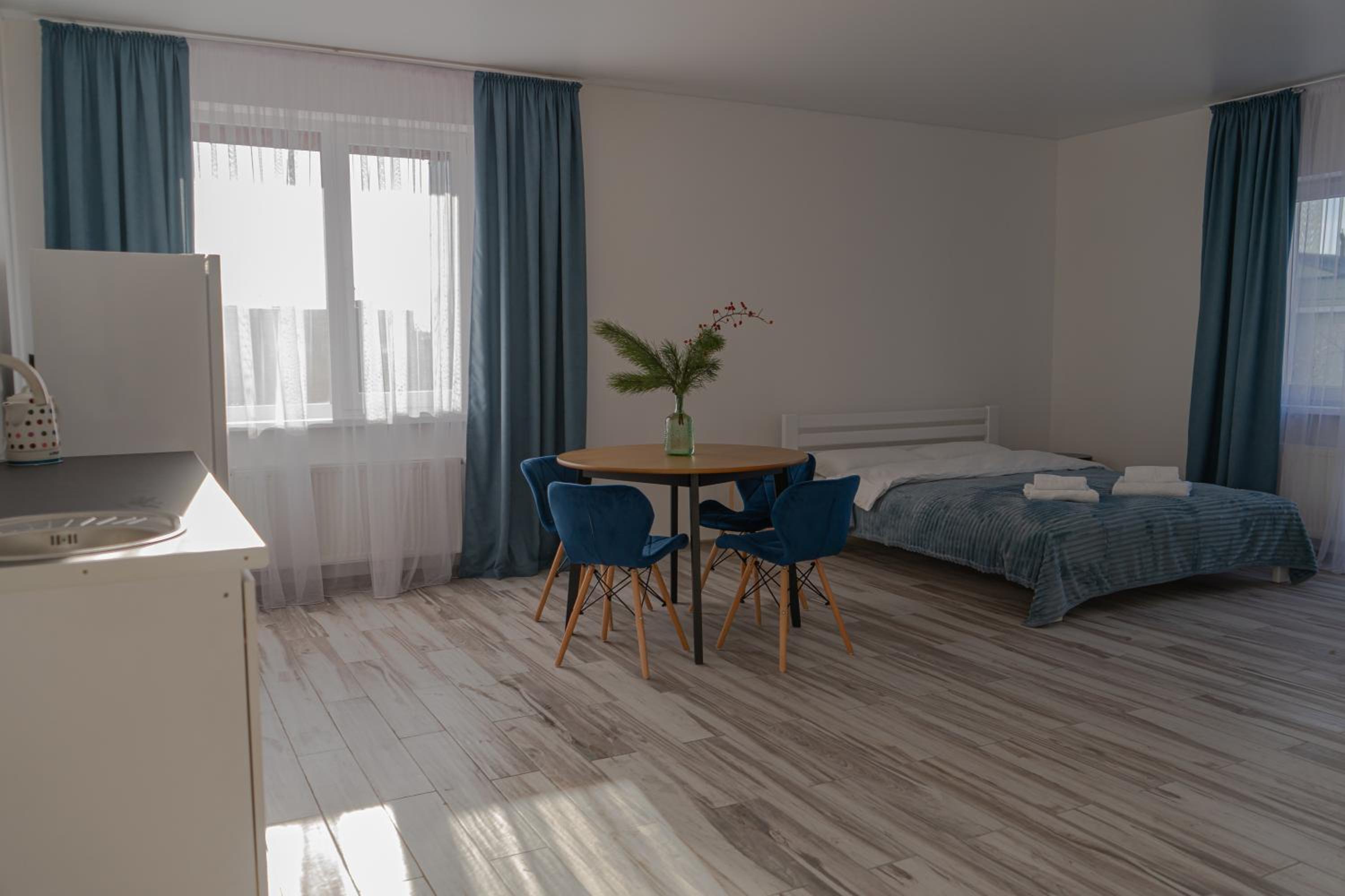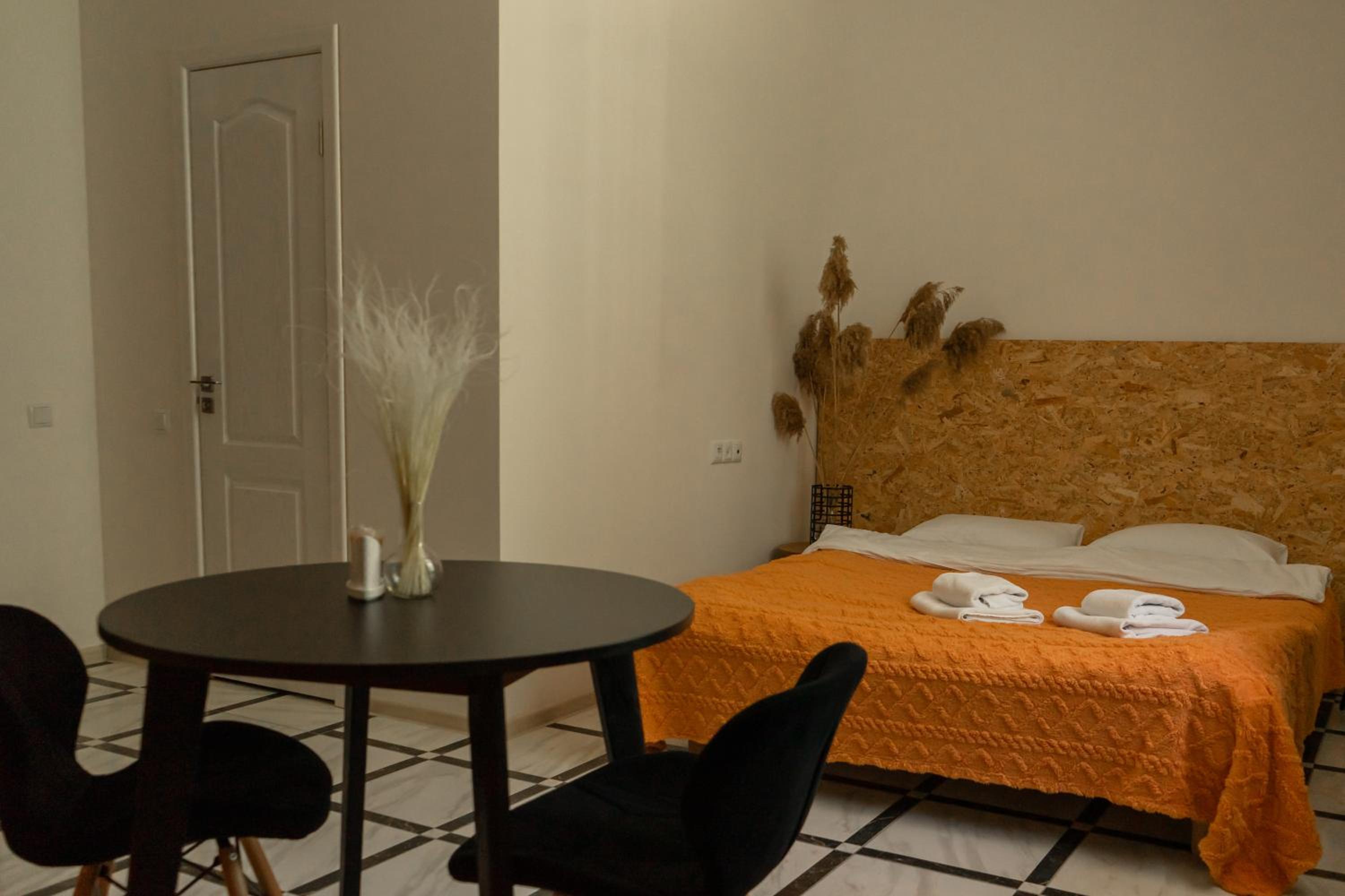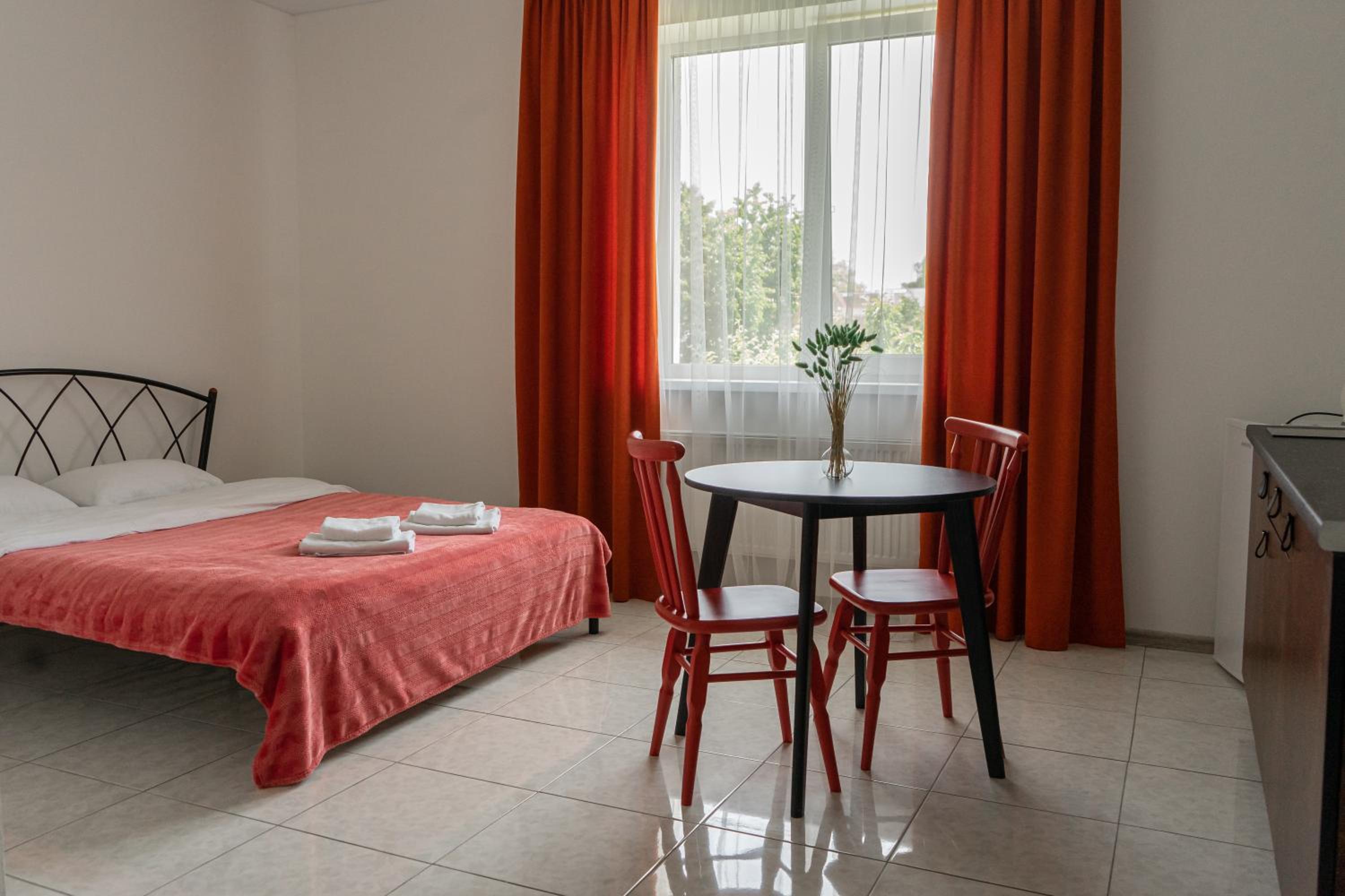 Їхали з запізненням відносно запланованого часу. Важливо було переночувати в номері, який розрахований на 4 осіб не за всі гроші світу, оскільки по дорозі більшість отелів пропонували 2 окремих номери. Саме ці апартаменти знаходилися по дорозі, що дуже зручно, запропонували необхідне нам розміщення, чистий номер, сучасний ремонт, в номері є все необхідне для самостійного приготування їжі (посуд, мікрохвильовка, індукційна піч, чайник). Привітні адміністартори. Є можливість купити готову їжу.