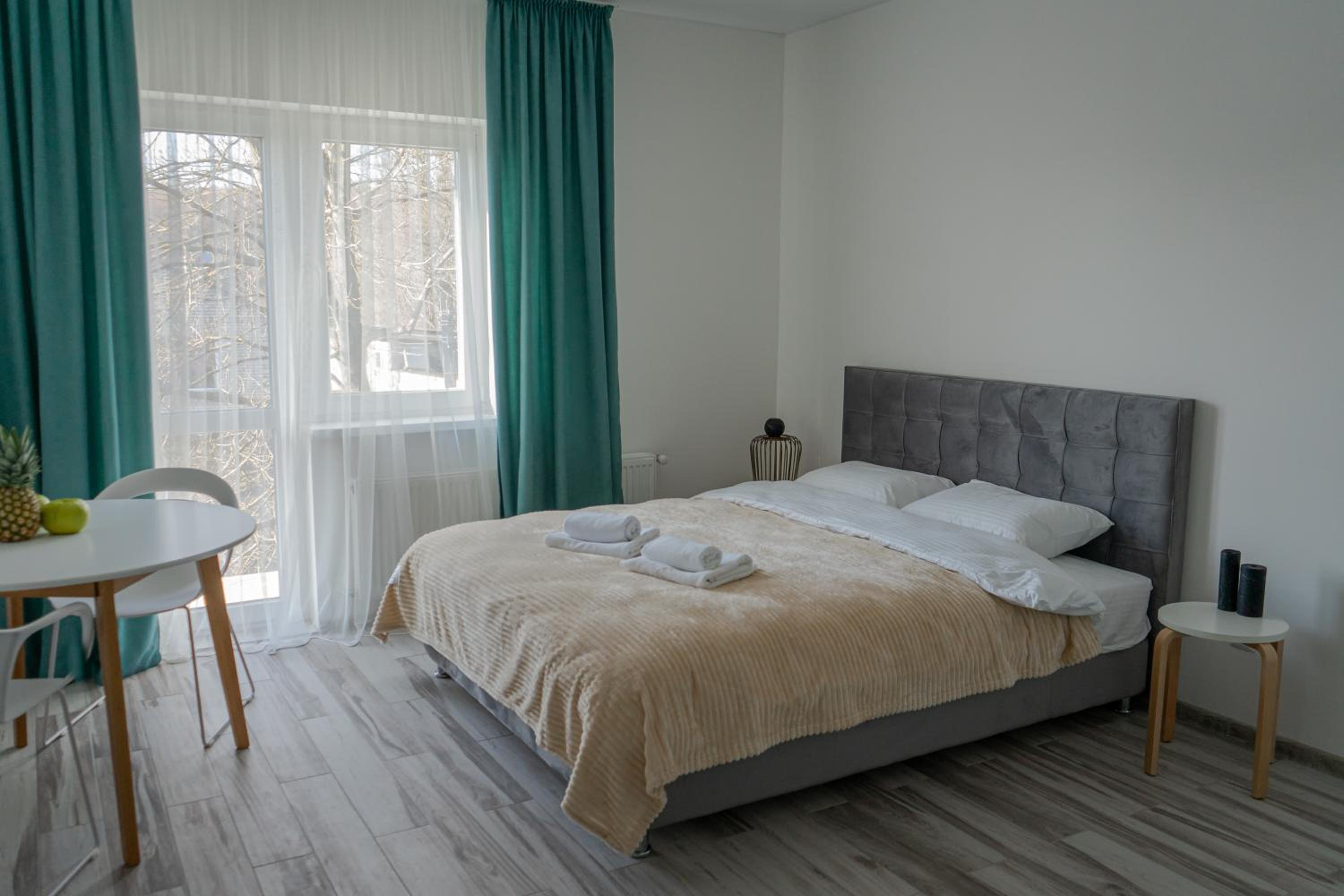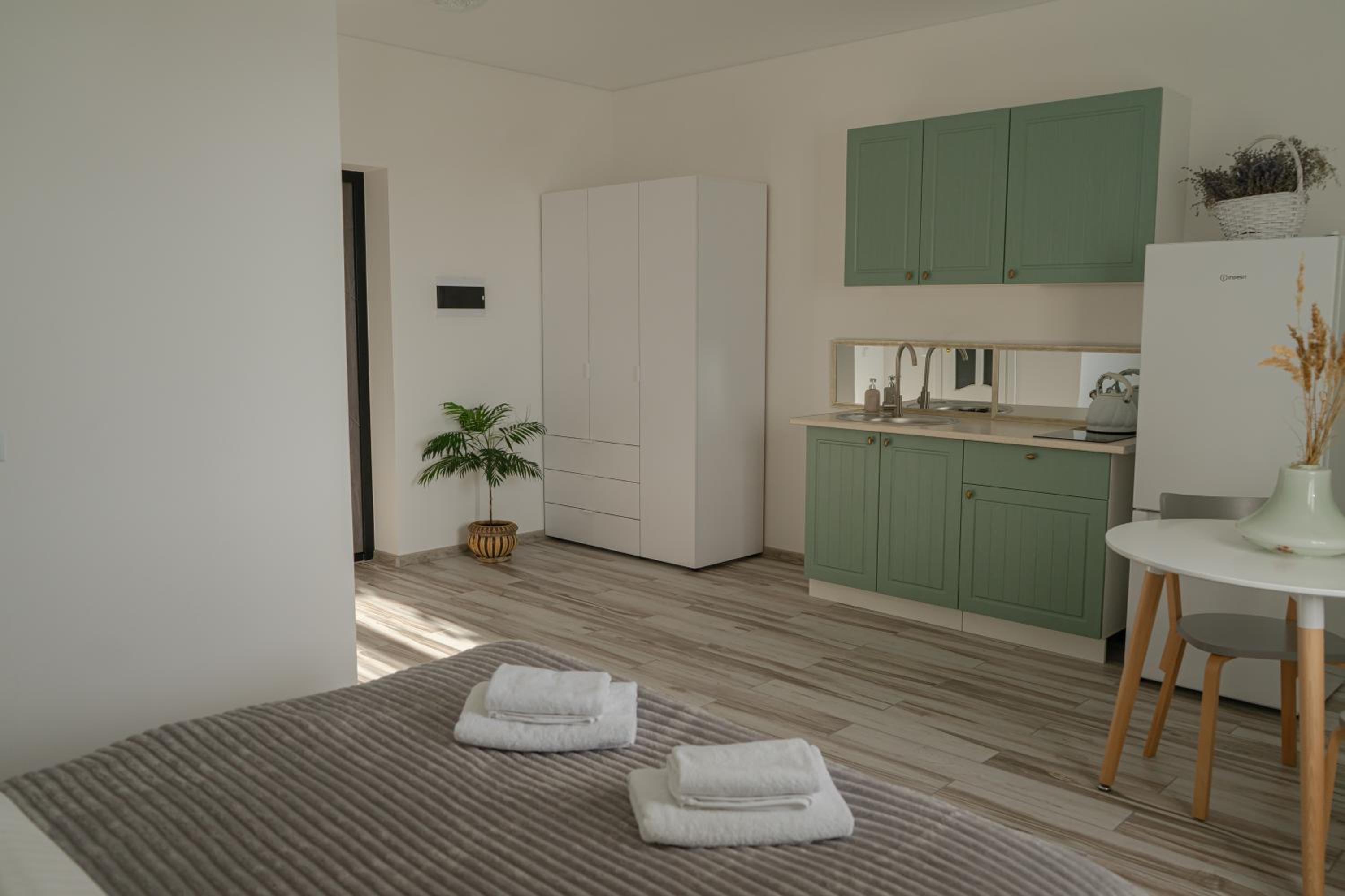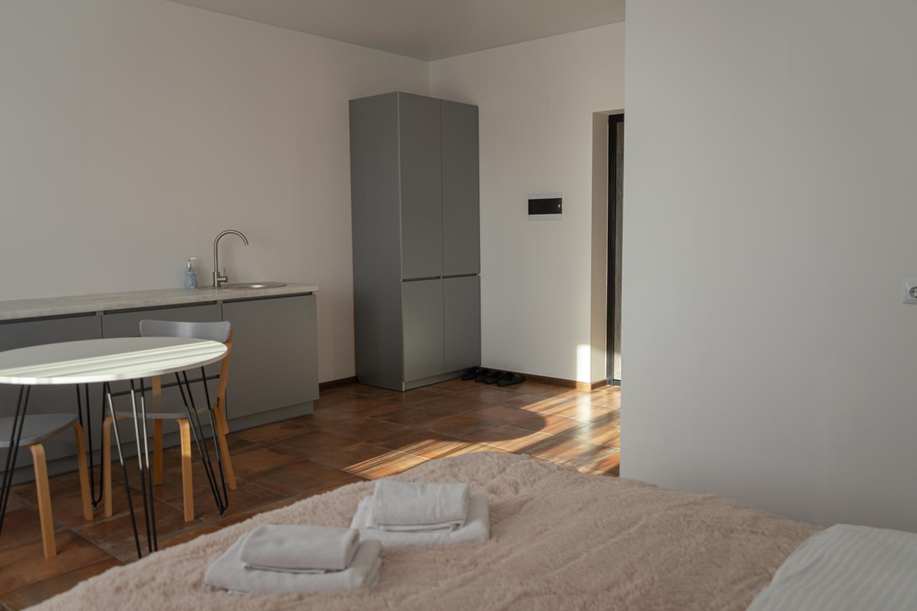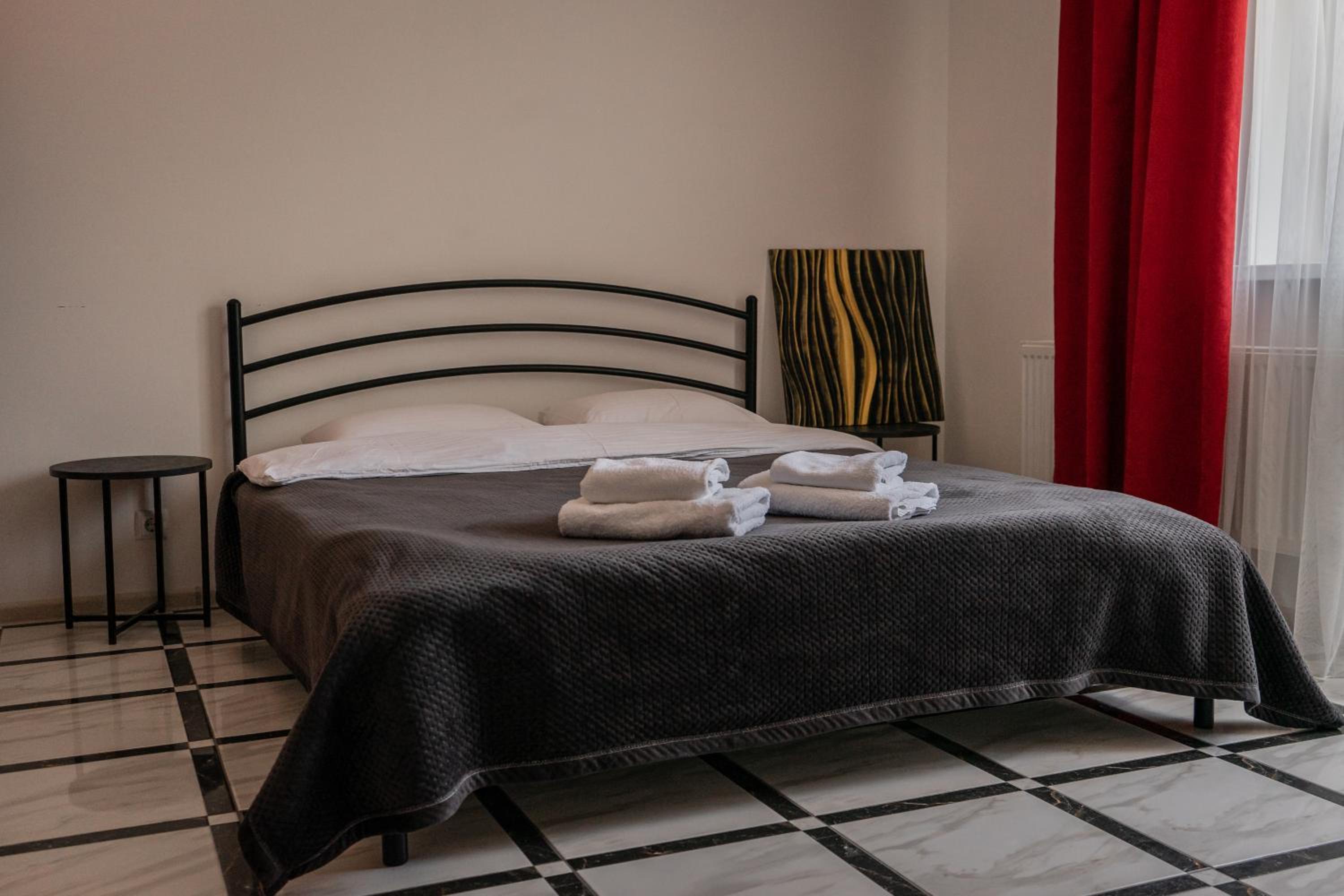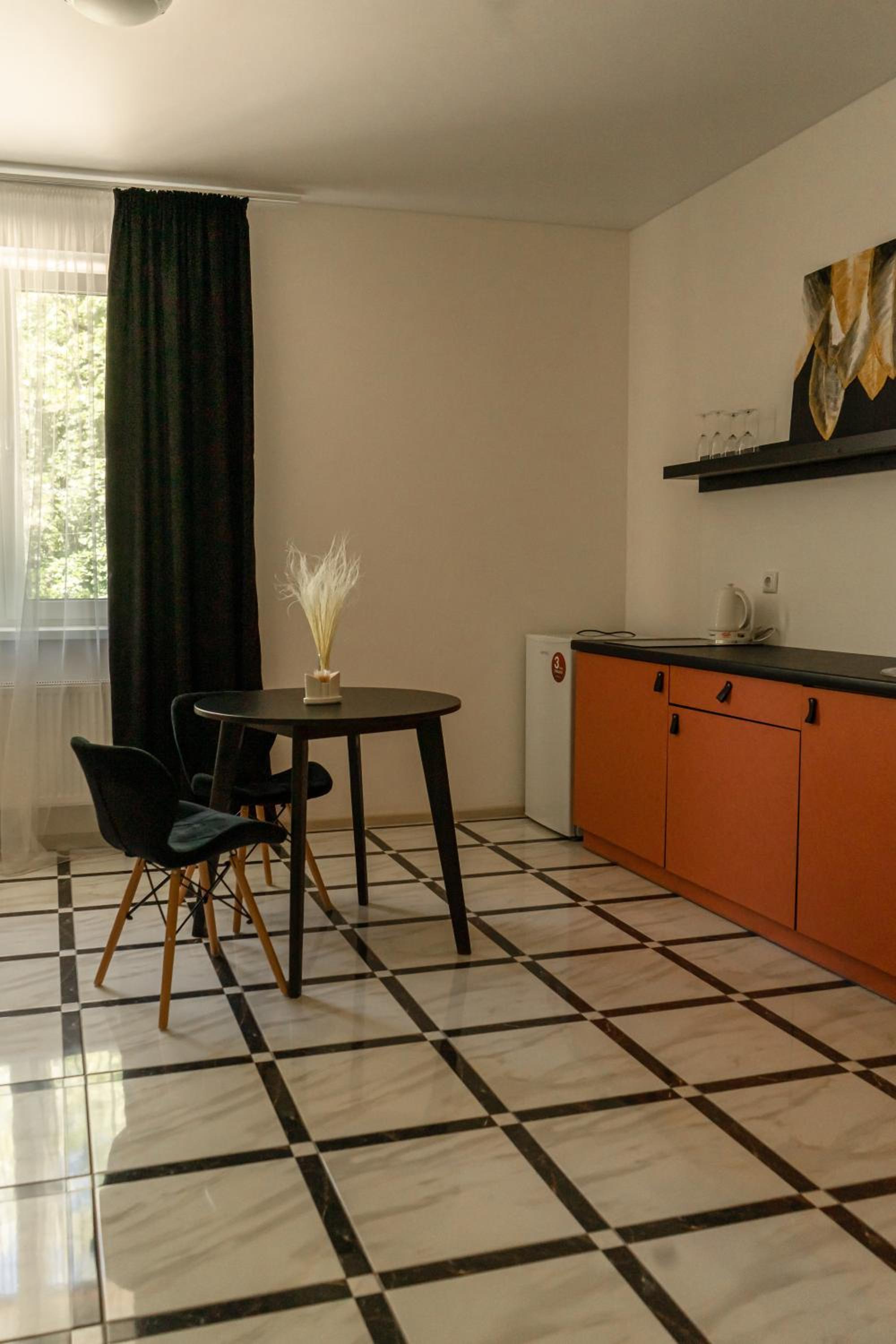 Їхали з запізненням відносно запланованого часу. Важливо було переночувати в номері, який розрахований на 4 осіб не за всі гроші світу, оскільки по дорозі більшість отелів пропонували 2 окремих номери. Саме ці апартаменти знаходилися по дорозі, що дуже зручно, запропонували необхідне нам розміщення, чистий номер, сучасний ремонт, в номері є все необхідне для самостійного приготування їжі (посуд, мікрохвильовка, індукційна піч, чайник). Привітні адміністартори. Є можливість купити готову їжу.
