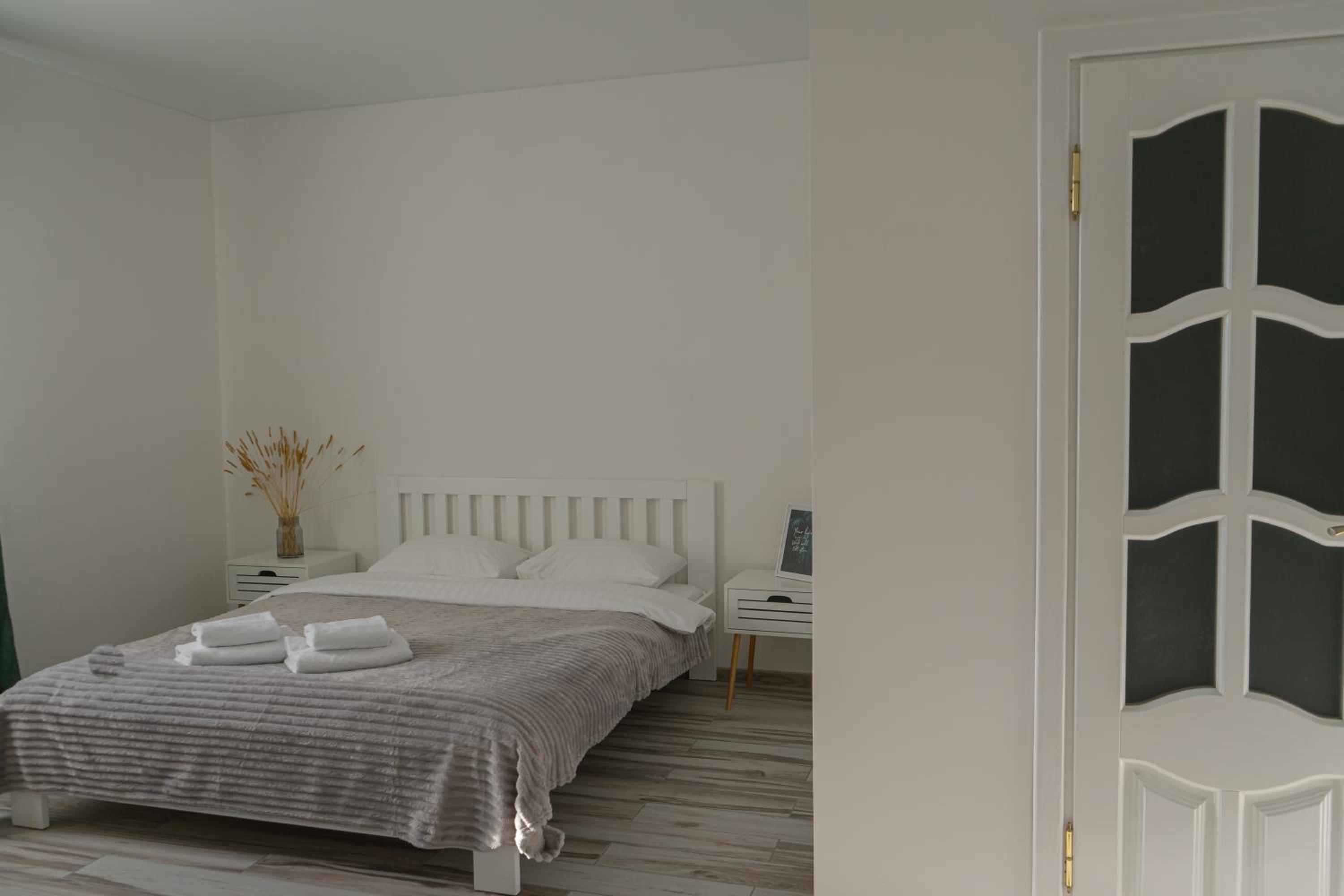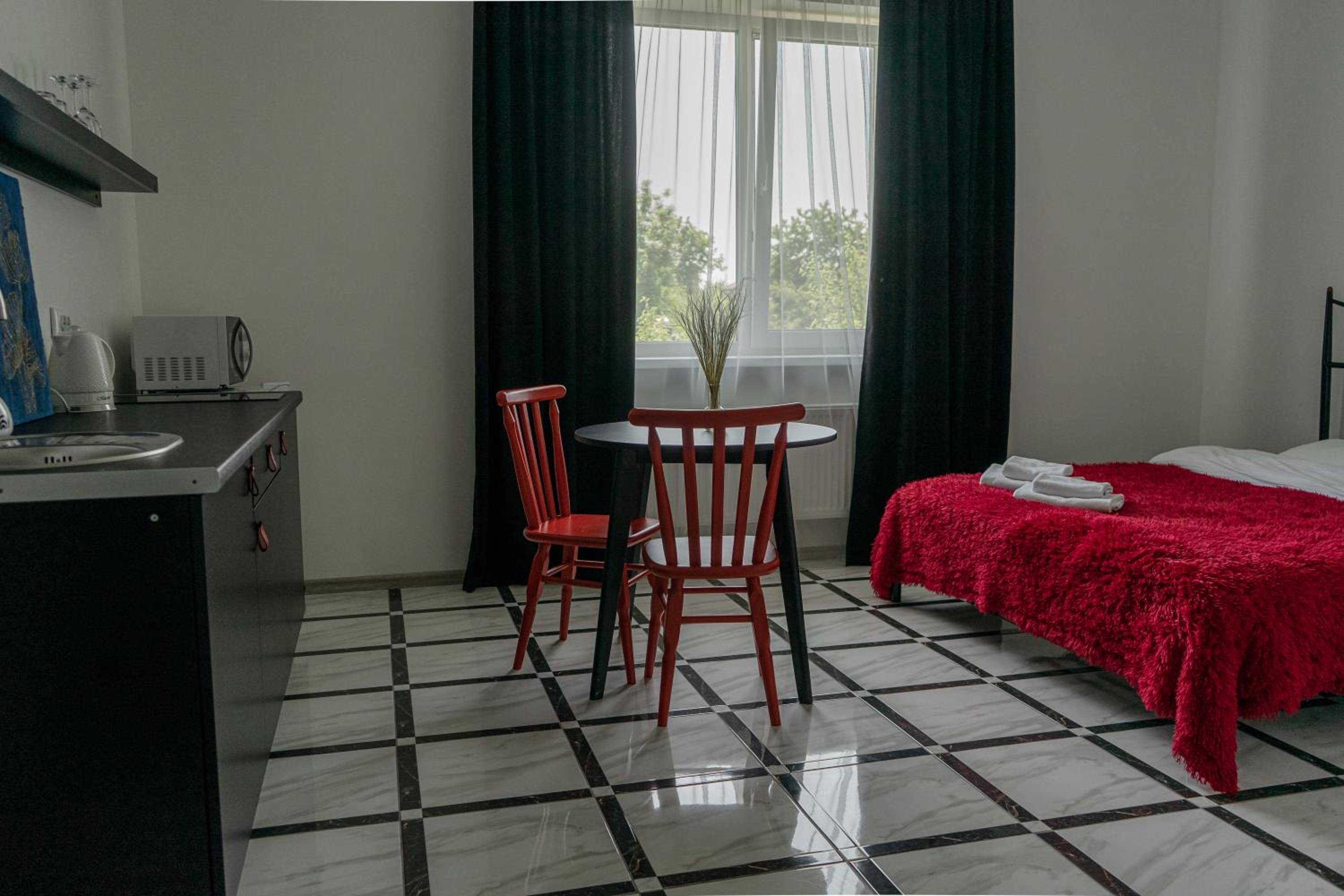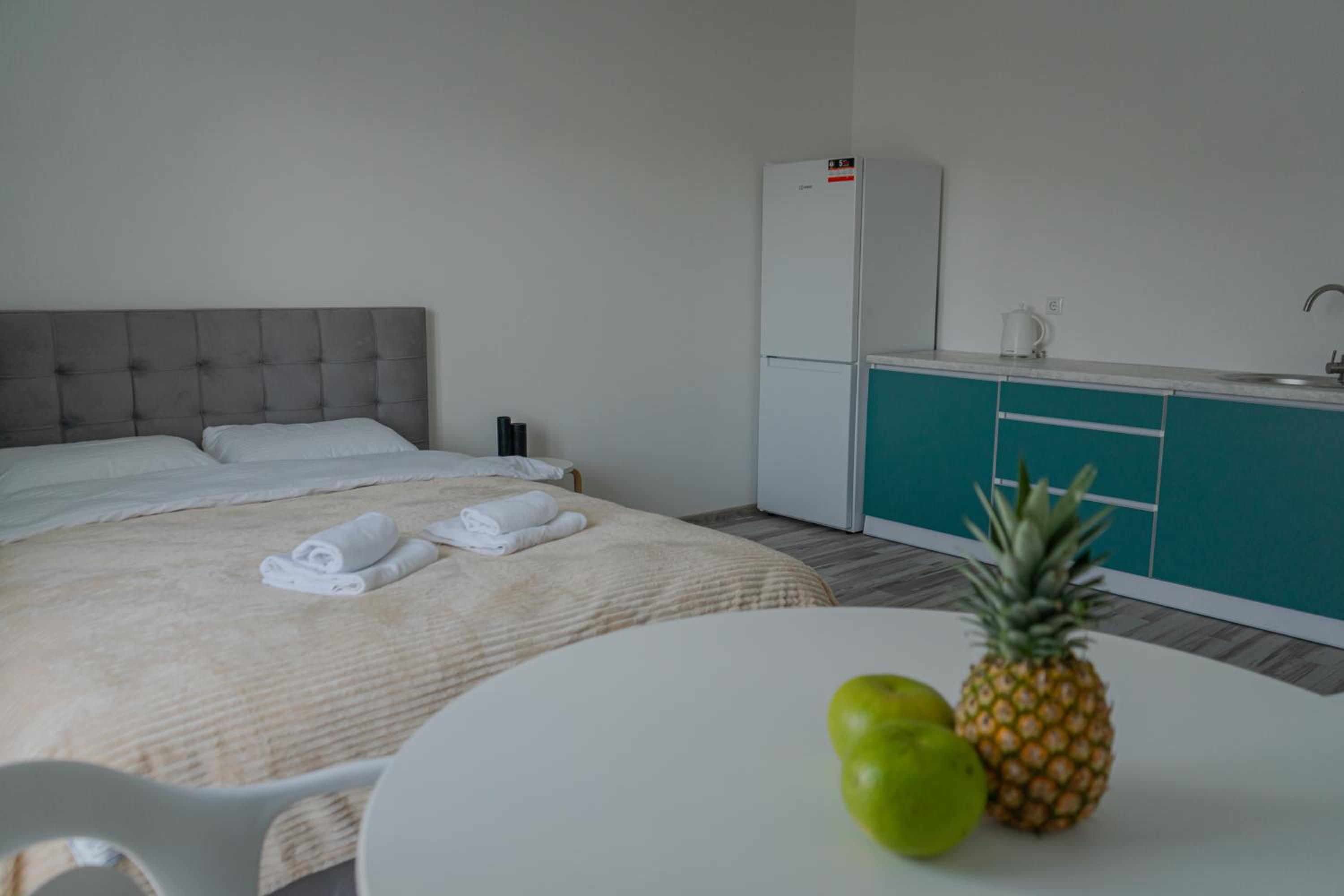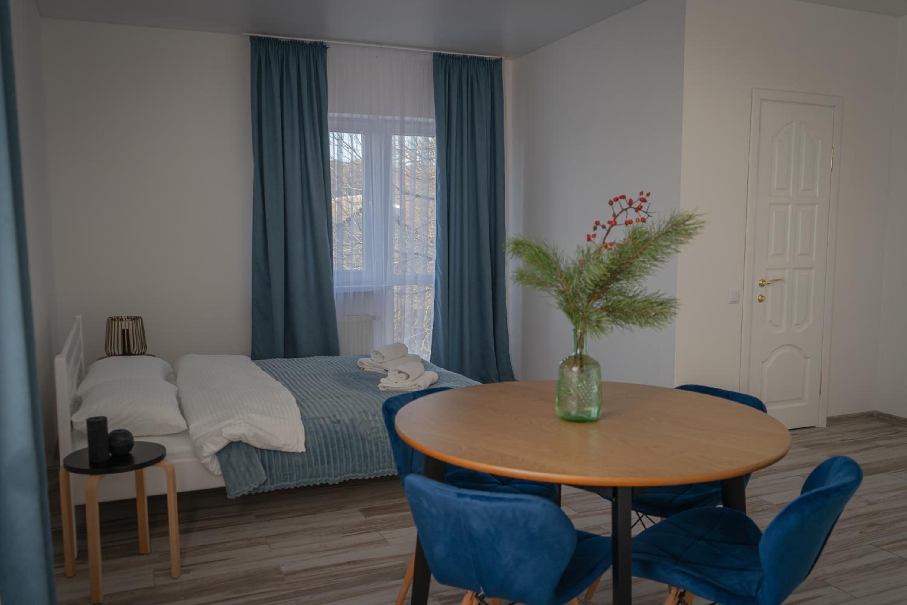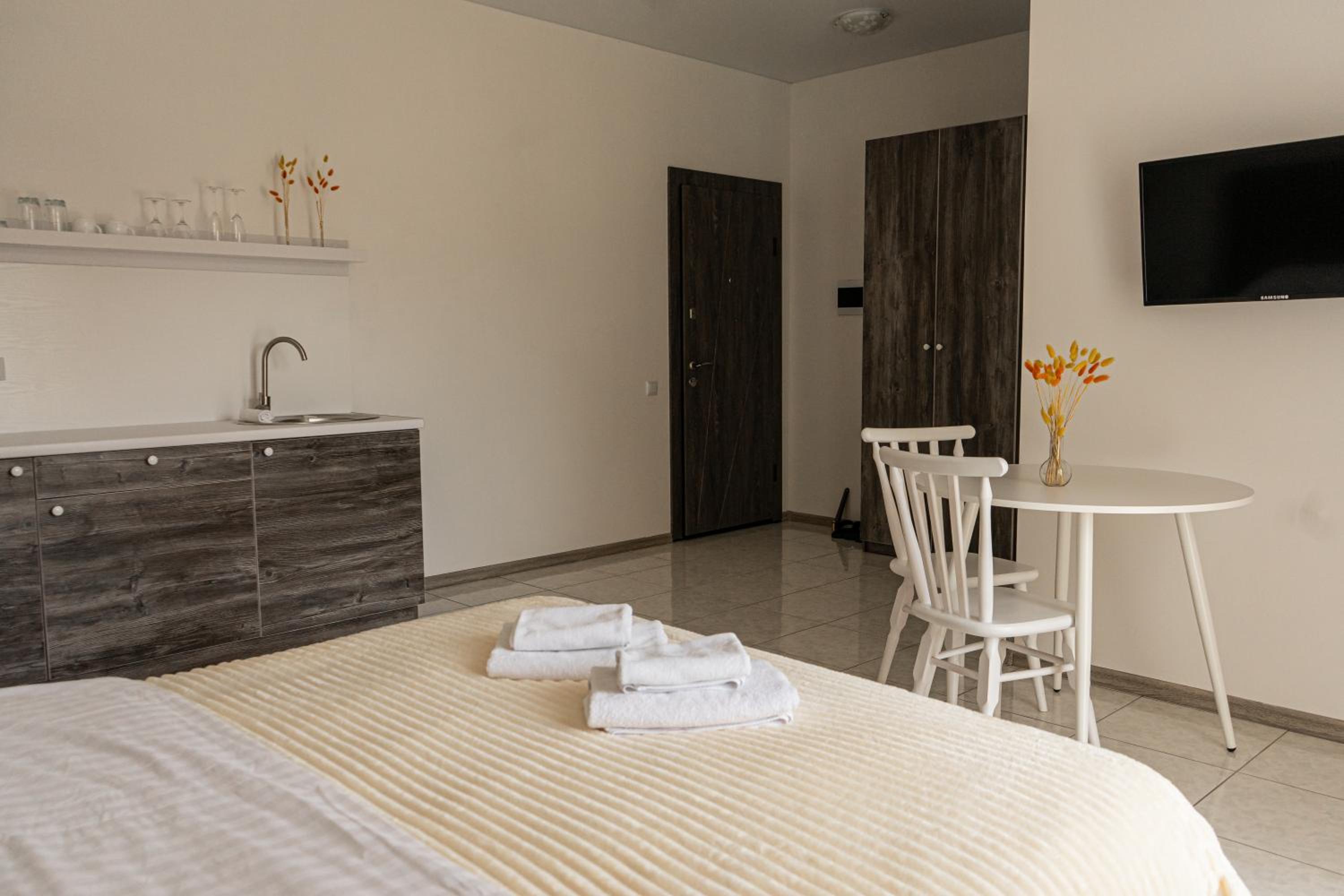 Їхали з запізненням відносно запланованого часу. Важливо було переночувати в номері, який розрахований на 4 осіб не за всі гроші світу, оскільки по дорозі більшість отелів пропонували 2 окремих номери. Саме ці апартаменти знаходилися по дорозі, що дуже зручно, запропонували необхідне нам розміщення, чистий номер, сучасний ремонт, в номері є все необхідне для самостійного приготування їжі (посуд, мікрохвильовка, індукційна піч, чайник). Привітні адміністартори. Є можливість купити готову їжу.