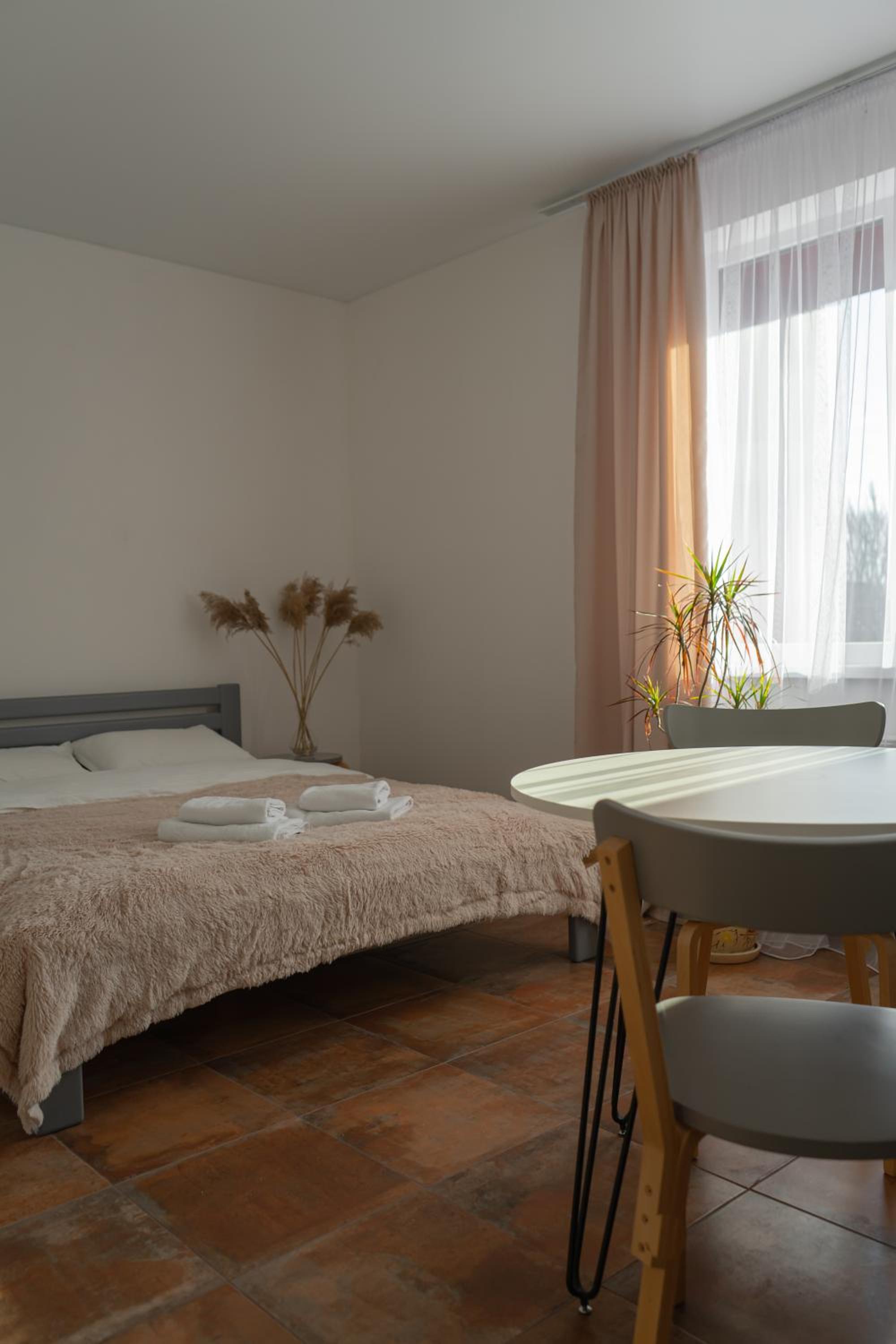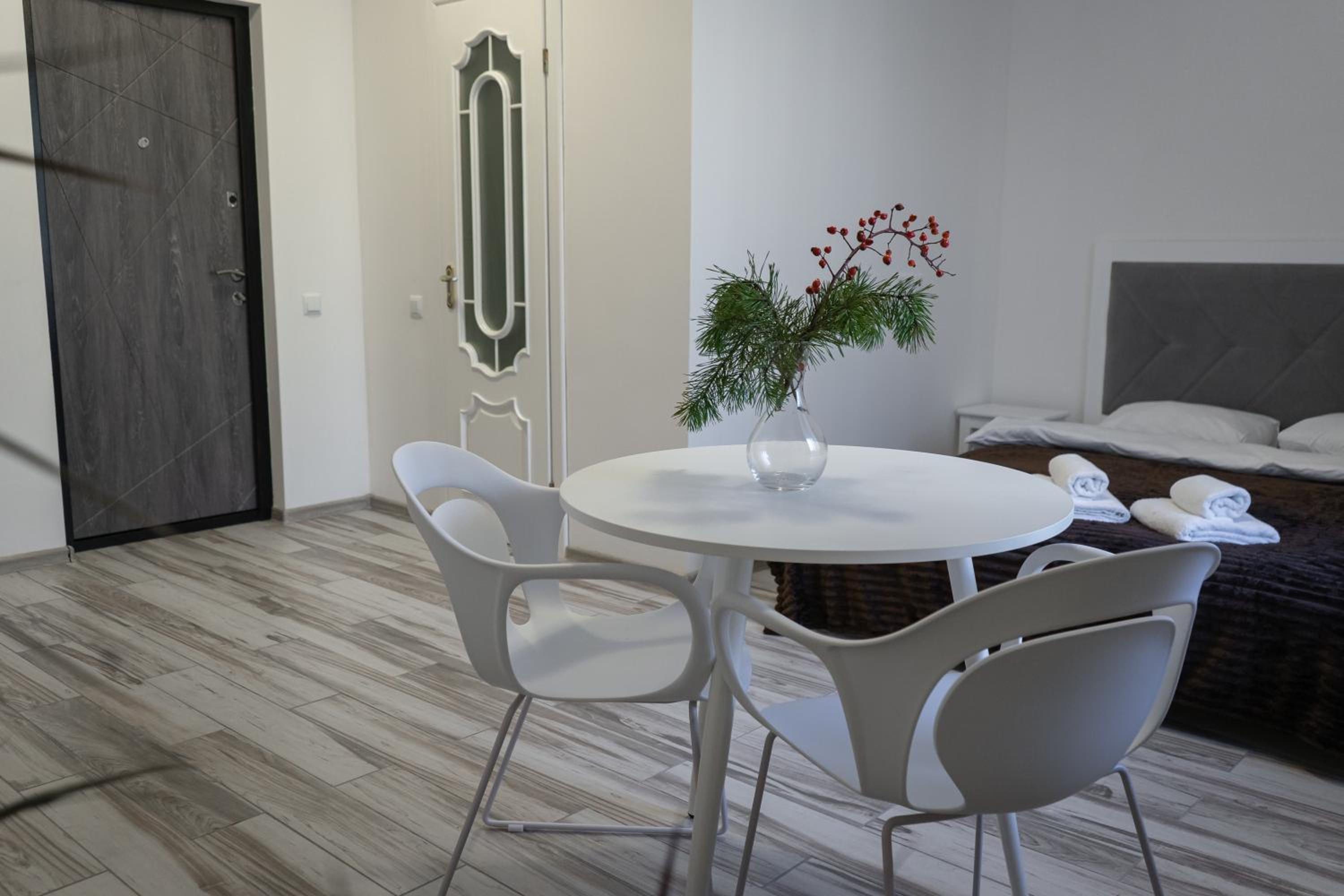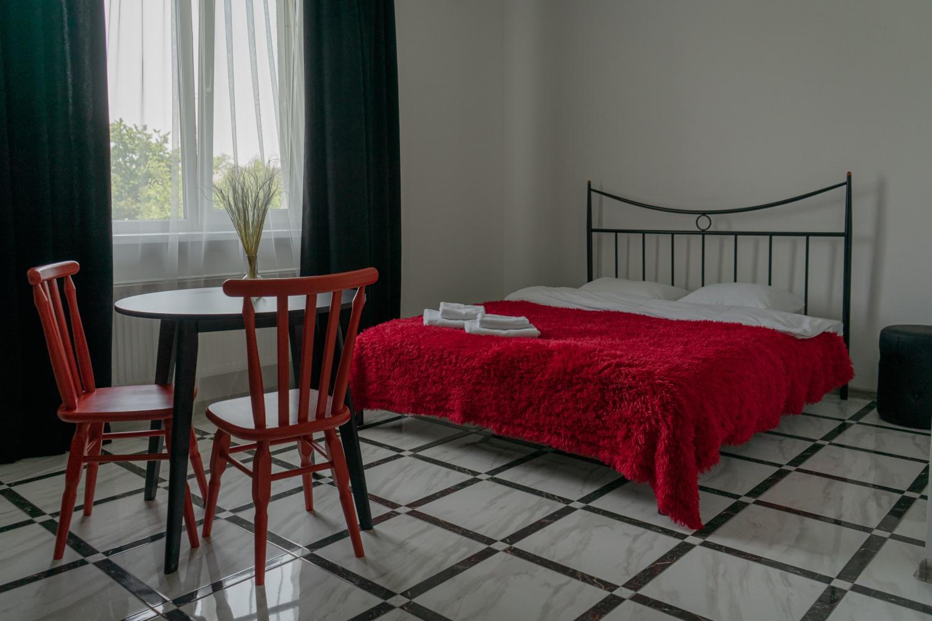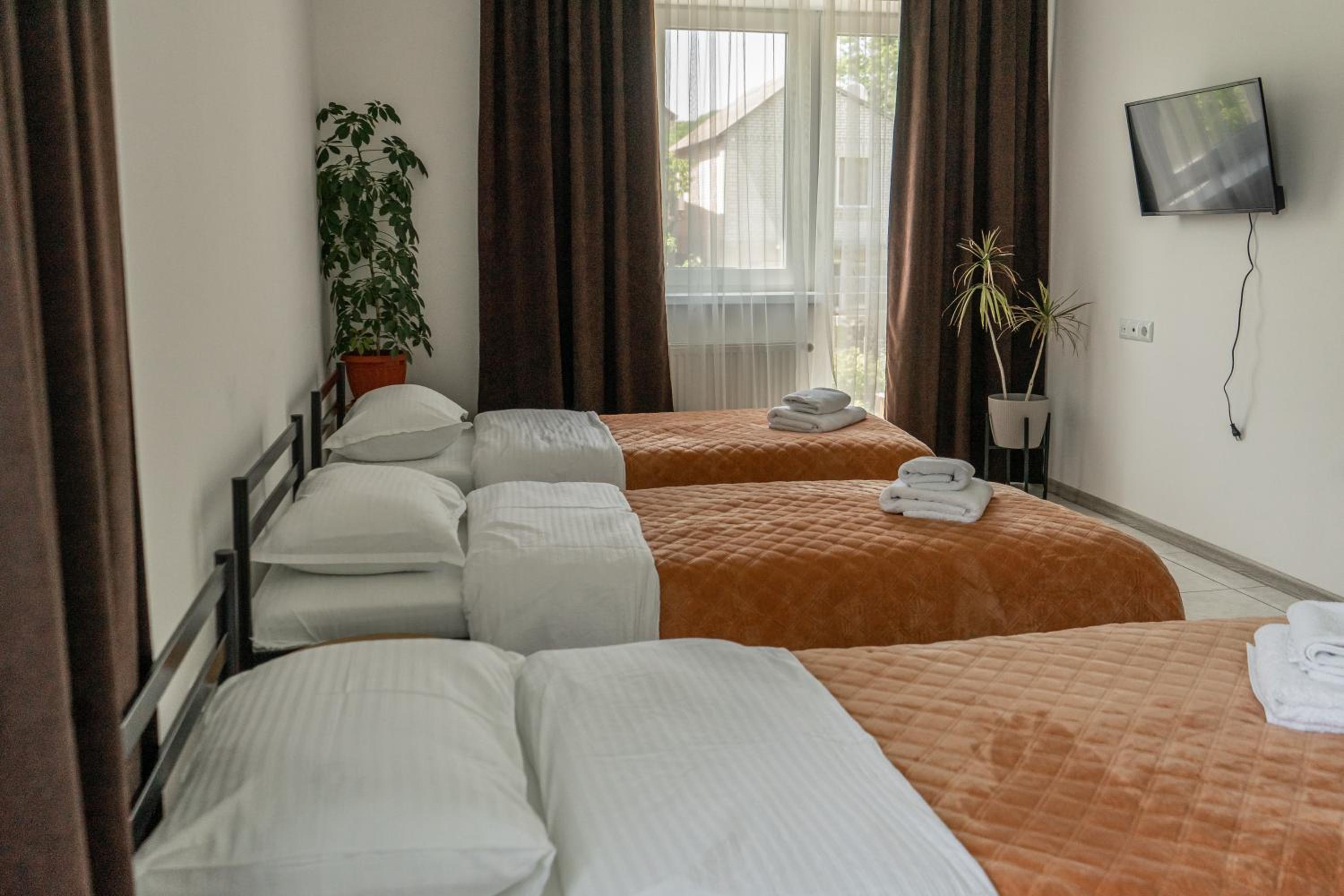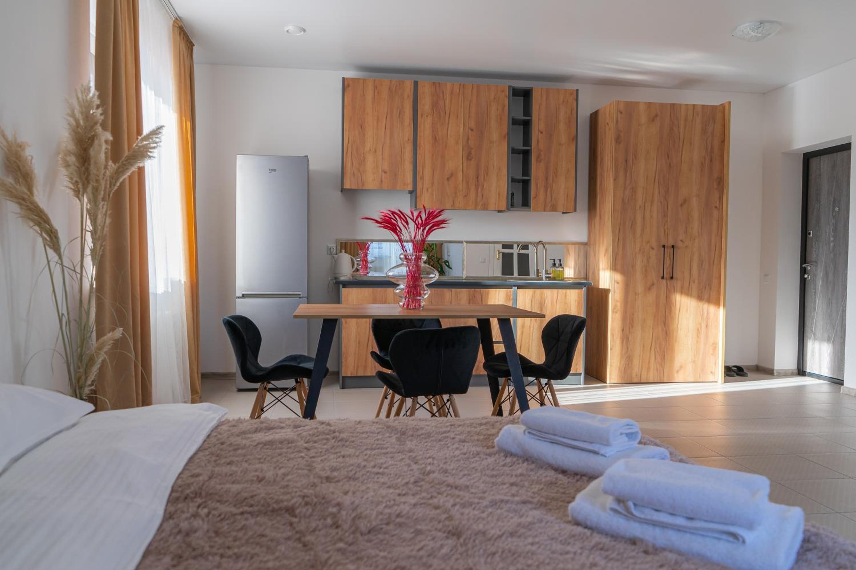 Їхали з запізненням відносно запланованого часу. Важливо було переночувати в номері, який розрахований на 4 осіб не за всі гроші світу, оскільки по дорозі більшість отелів пропонували 2 окремих номери. Саме ці апартаменти знаходилися по дорозі, що дуже зручно, запропонували необхідне нам розміщення, чистий номер, сучасний ремонт, в номері є все необхідне для самостійного приготування їжі (посуд, мікрохвильовка, індукційна піч, чайник). Привітні адміністартори. Є можливість купити готову їжу.