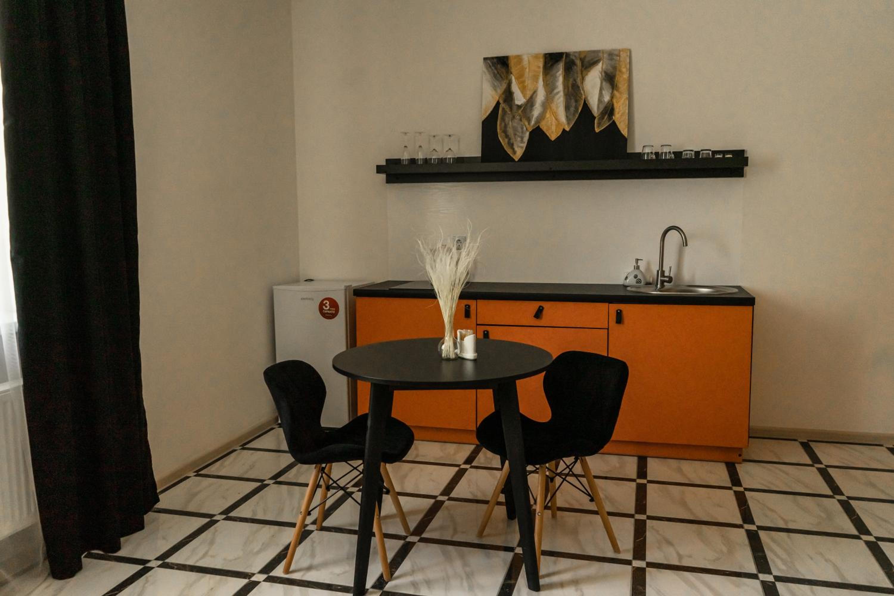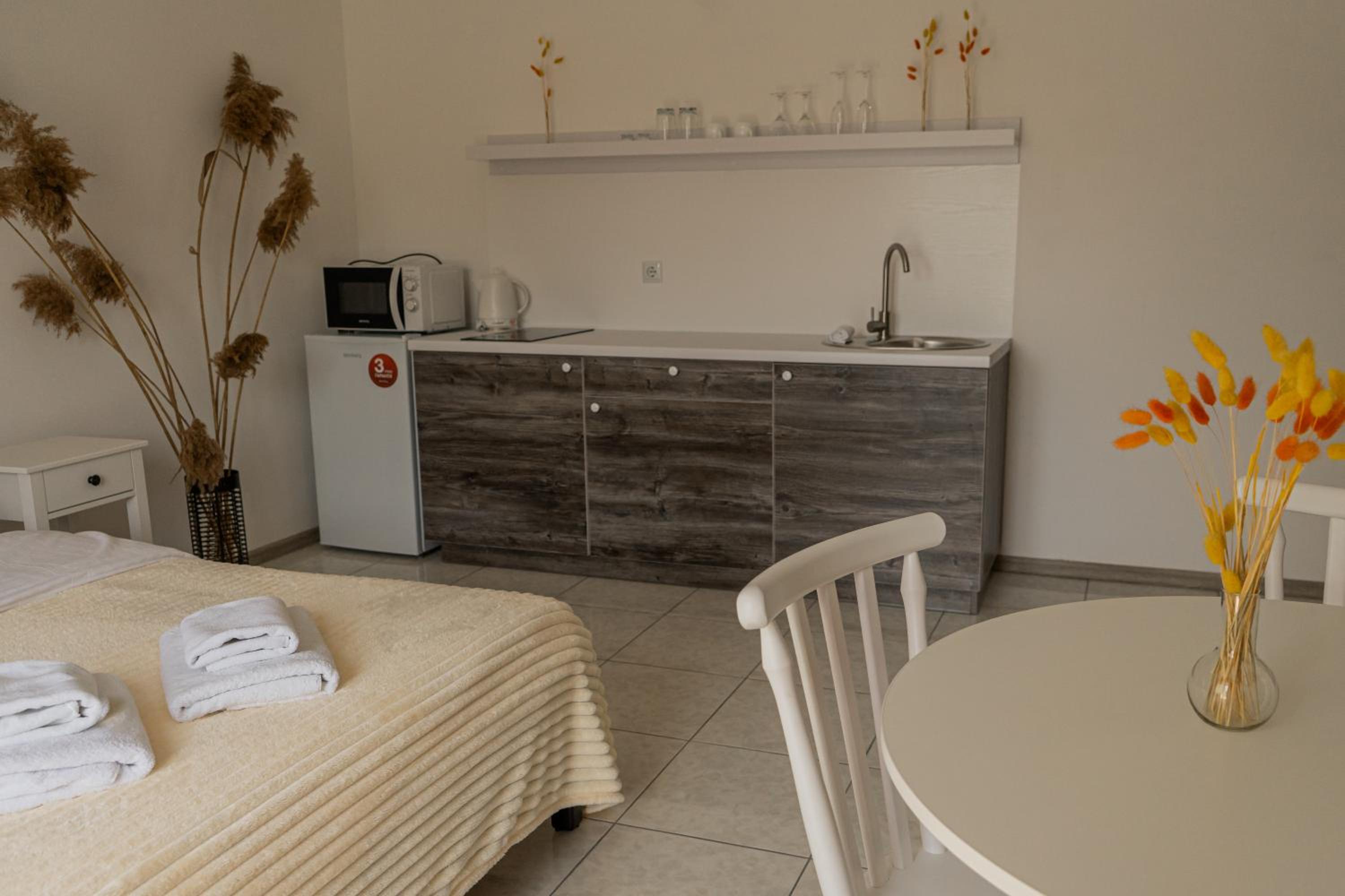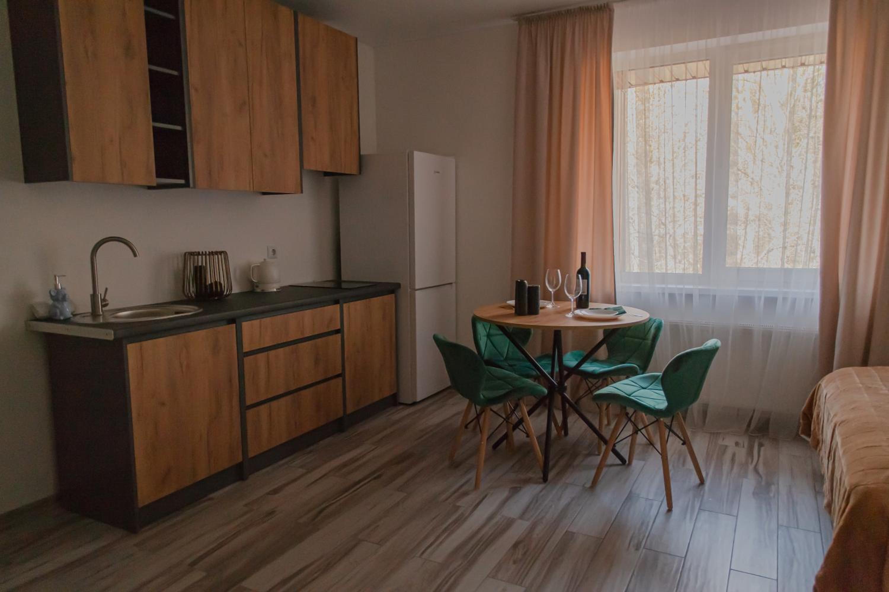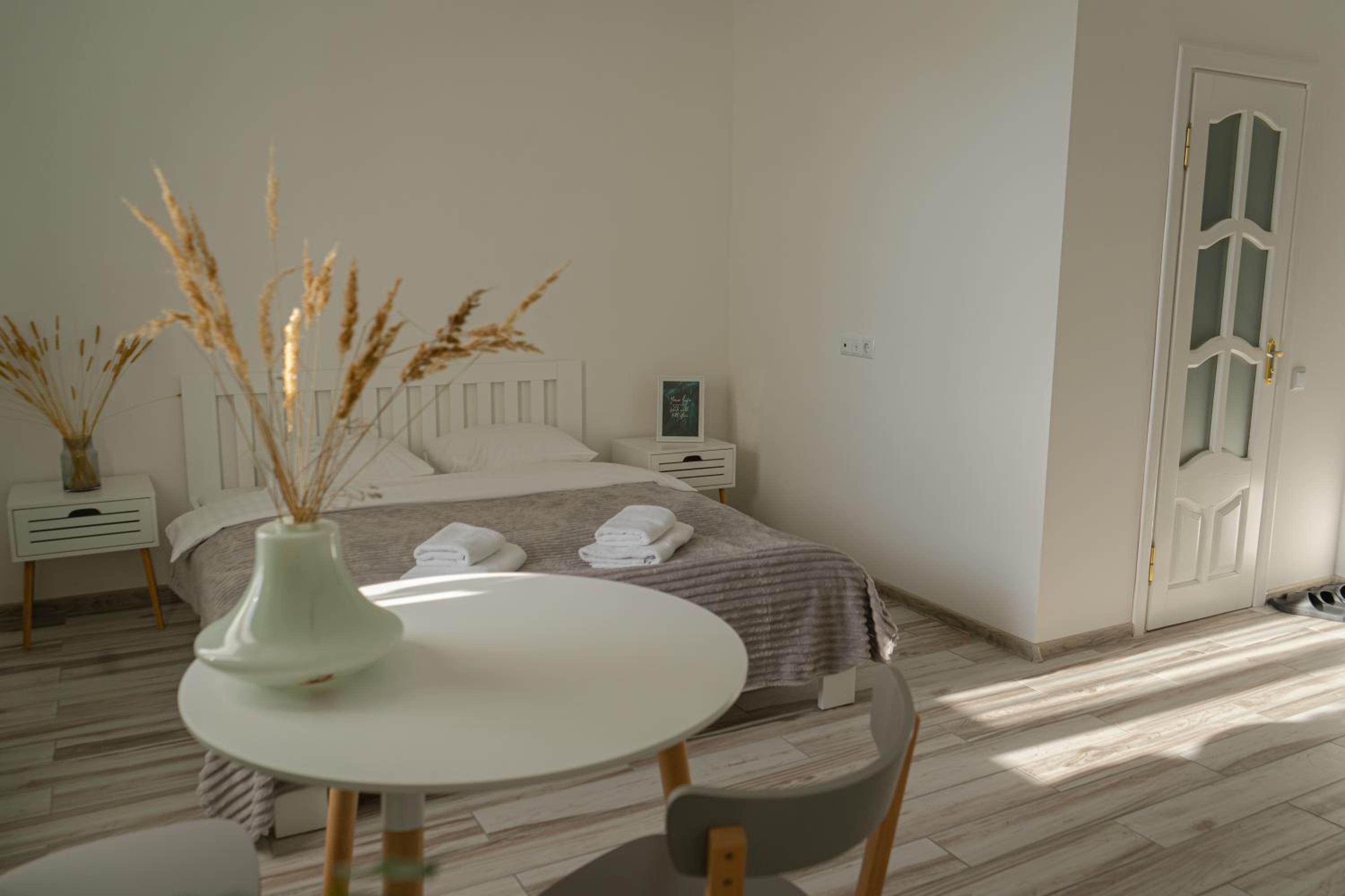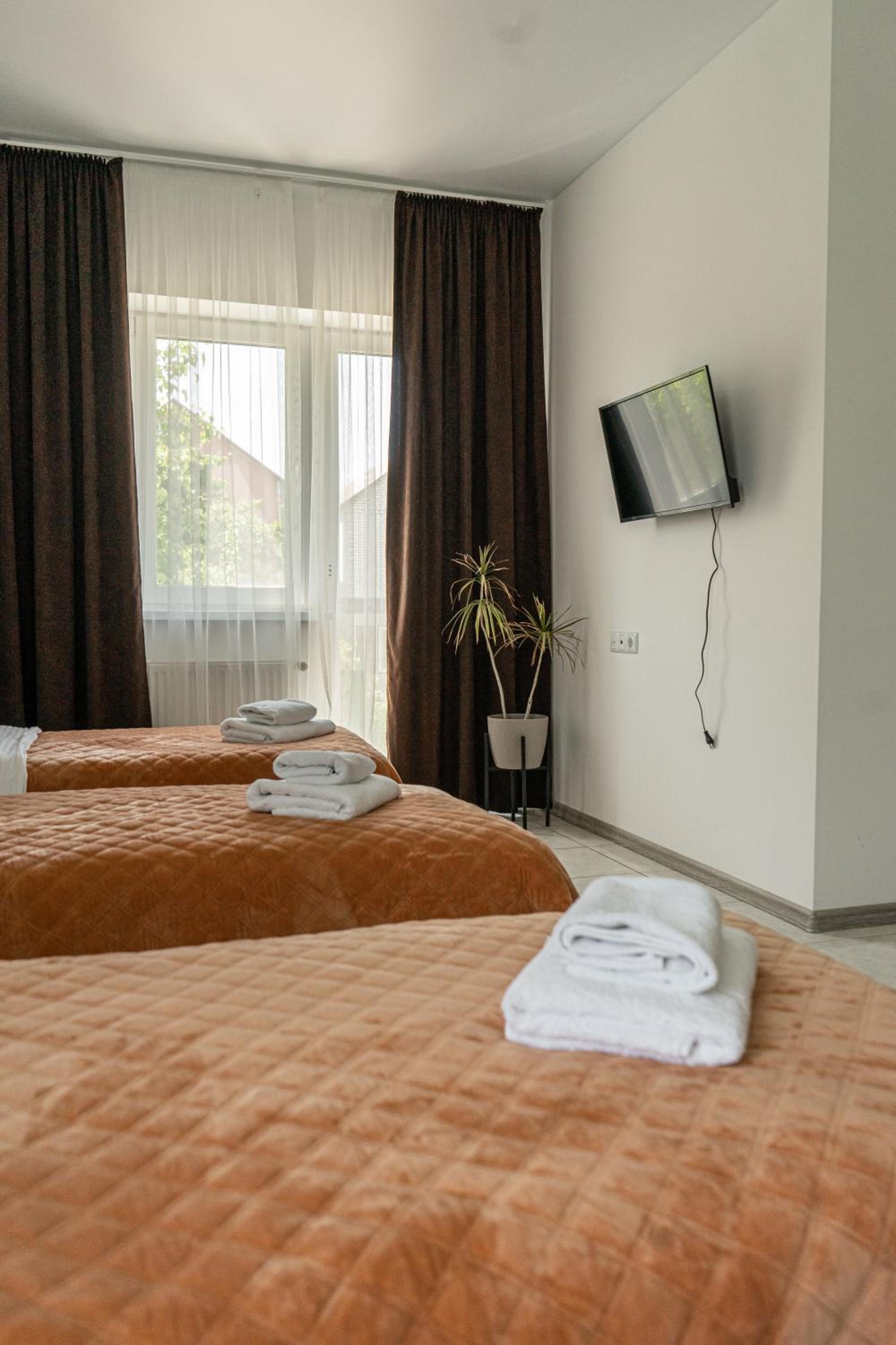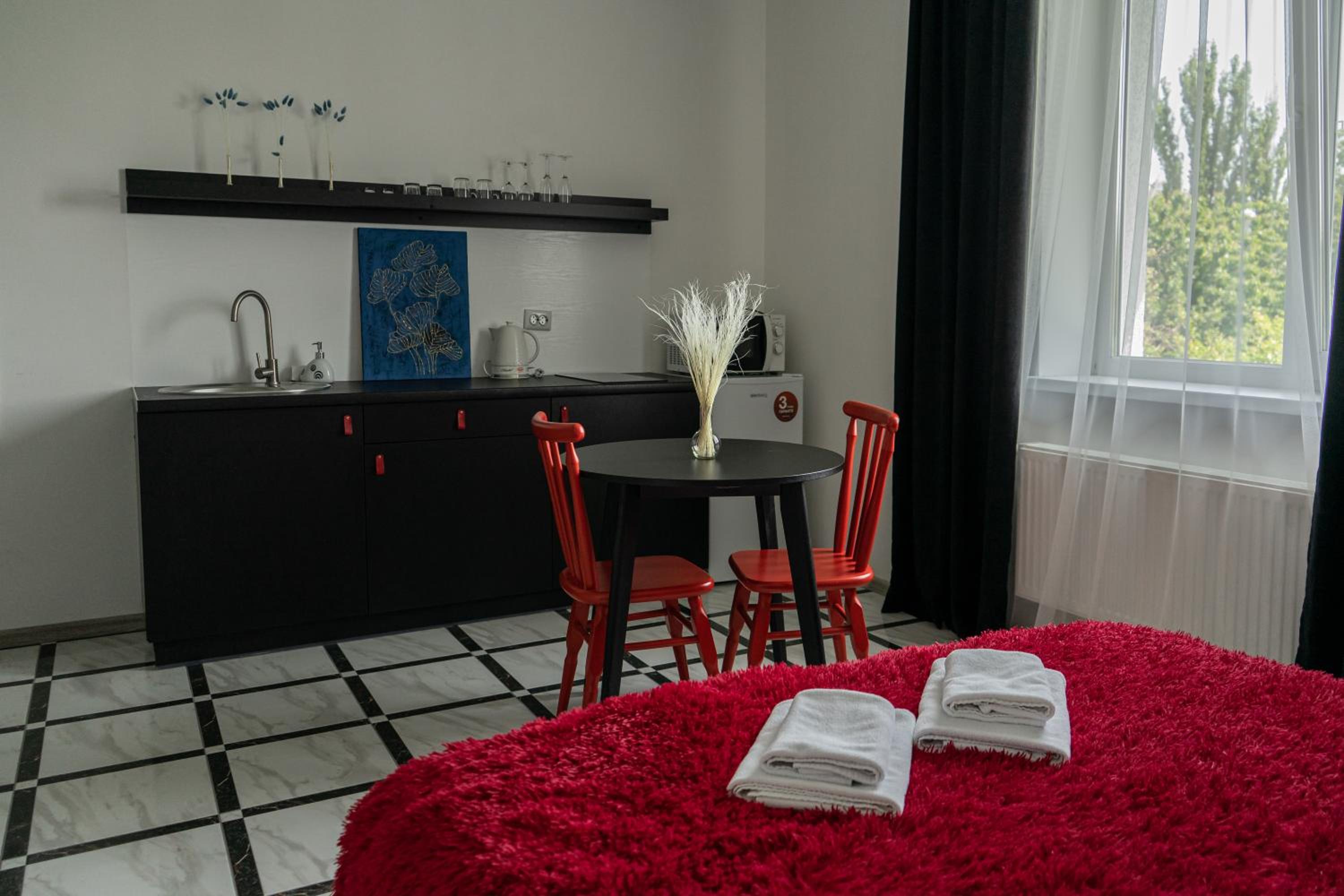 Їхали з запізненням відносно запланованого часу. Важливо було переночувати в номері, який розрахований на 4 осіб не за всі гроші світу, оскільки по дорозі більшість отелів пропонували 2 окремих номери. Саме ці апартаменти знаходилися по дорозі, що дуже зручно, запропонували необхідне нам розміщення, чистий номер, сучасний ремонт, в номері є все необхідне для самостійного приготування їжі (посуд, мікрохвильовка, індукційна піч, чайник). Привітні адміністартори. Є можливість купити готову їжу.