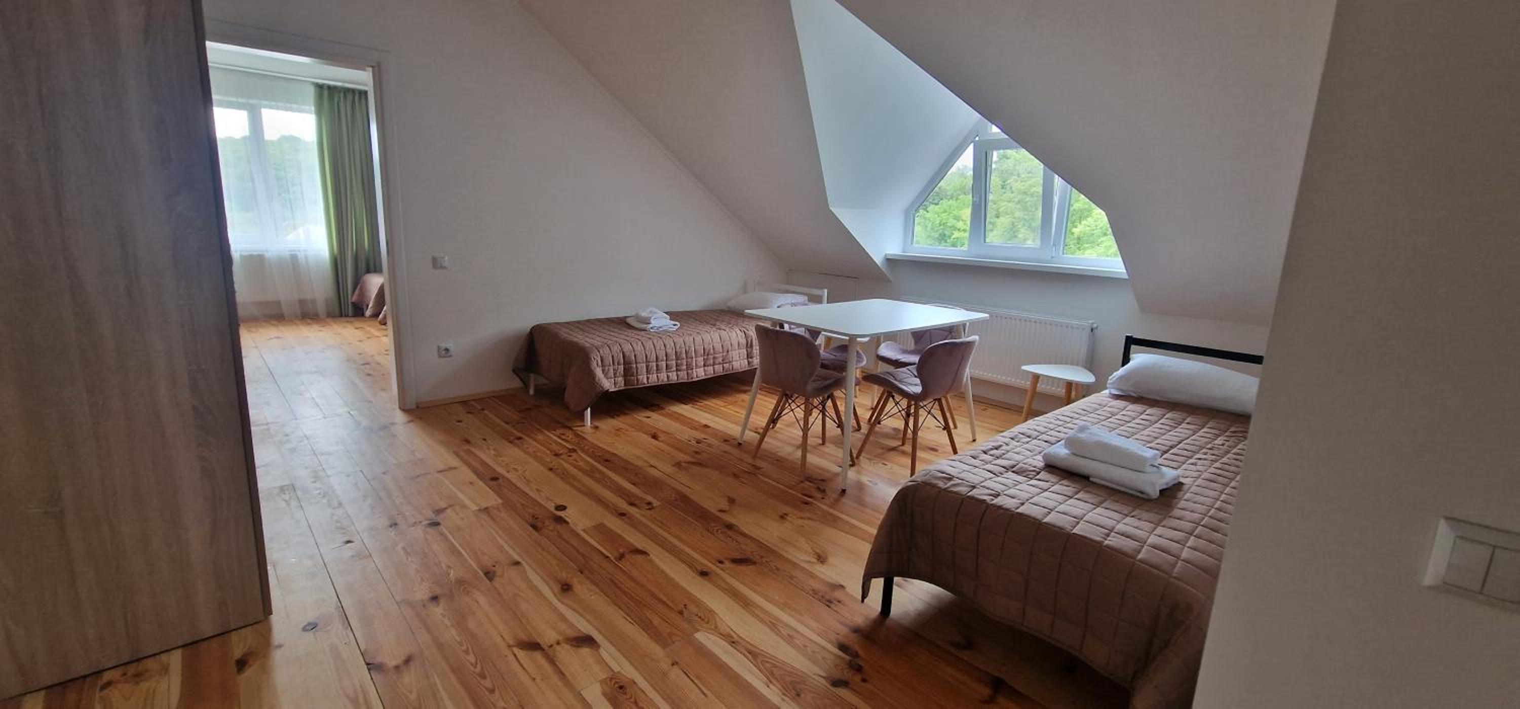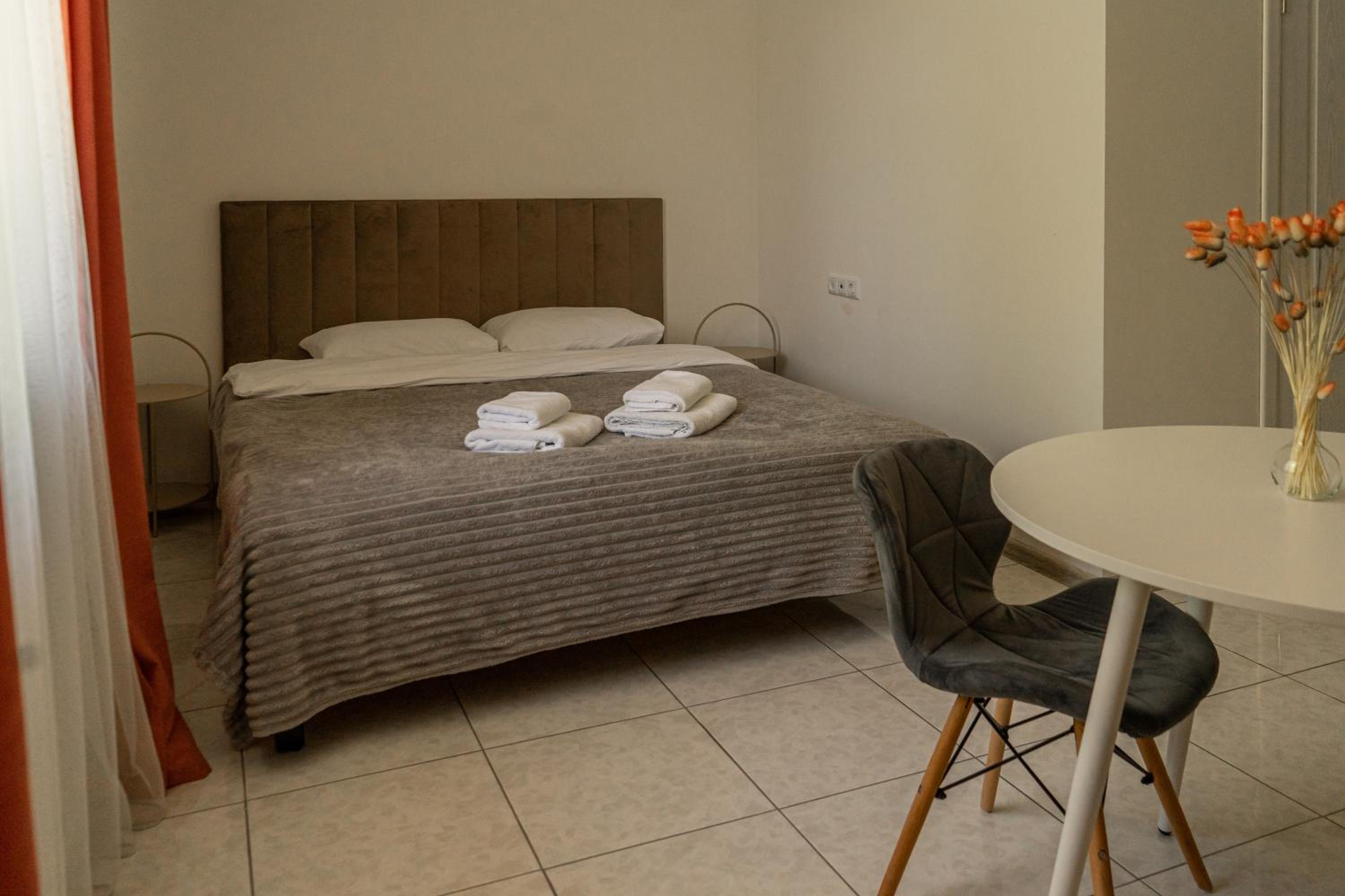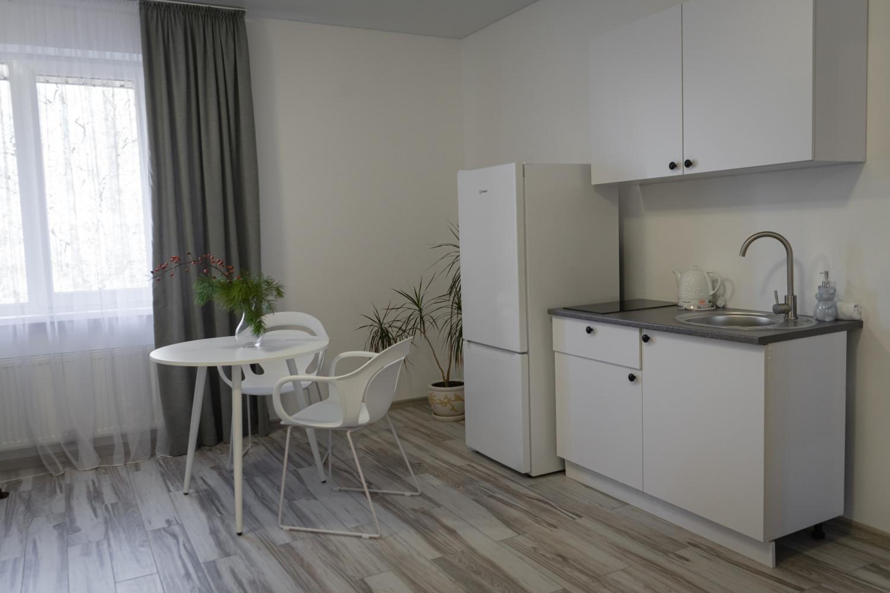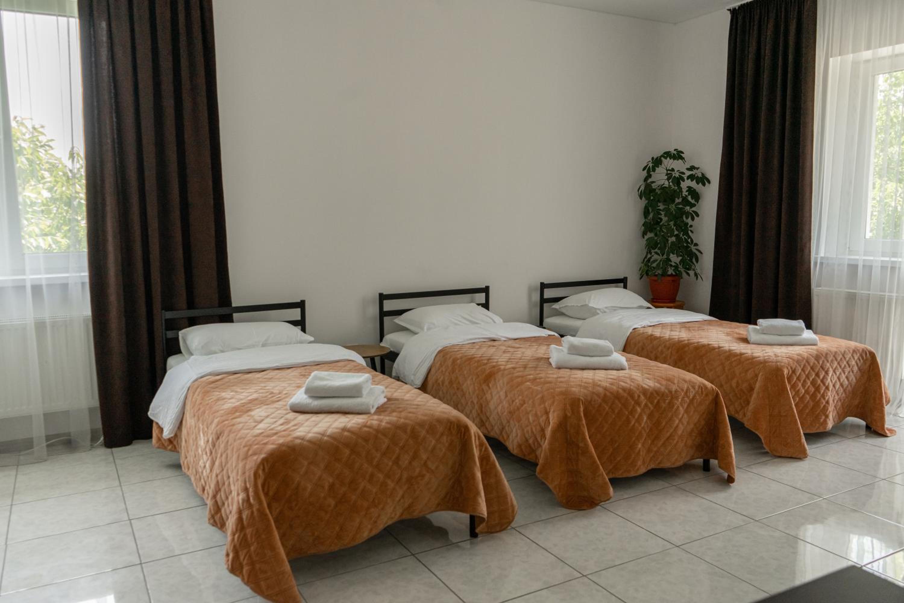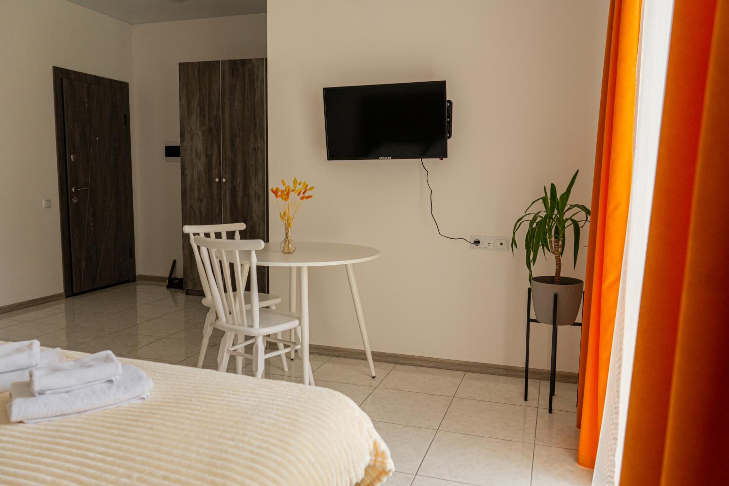 Їхали з запізненням відносно запланованого часу. Важливо було переночувати в номері, який розрахований на 4 осіб не за всі гроші світу, оскільки по дорозі більшість отелів пропонували 2 окремих номери. Саме ці апартаменти знаходилися по дорозі, що дуже зручно, запропонували необхідне нам розміщення, чистий номер, сучасний ремонт, в номері є все необхідне для самостійного приготування їжі (посуд, мікрохвильовка, індукційна піч, чайник). Привітні адміністартори. Є можливість купити готову їжу.