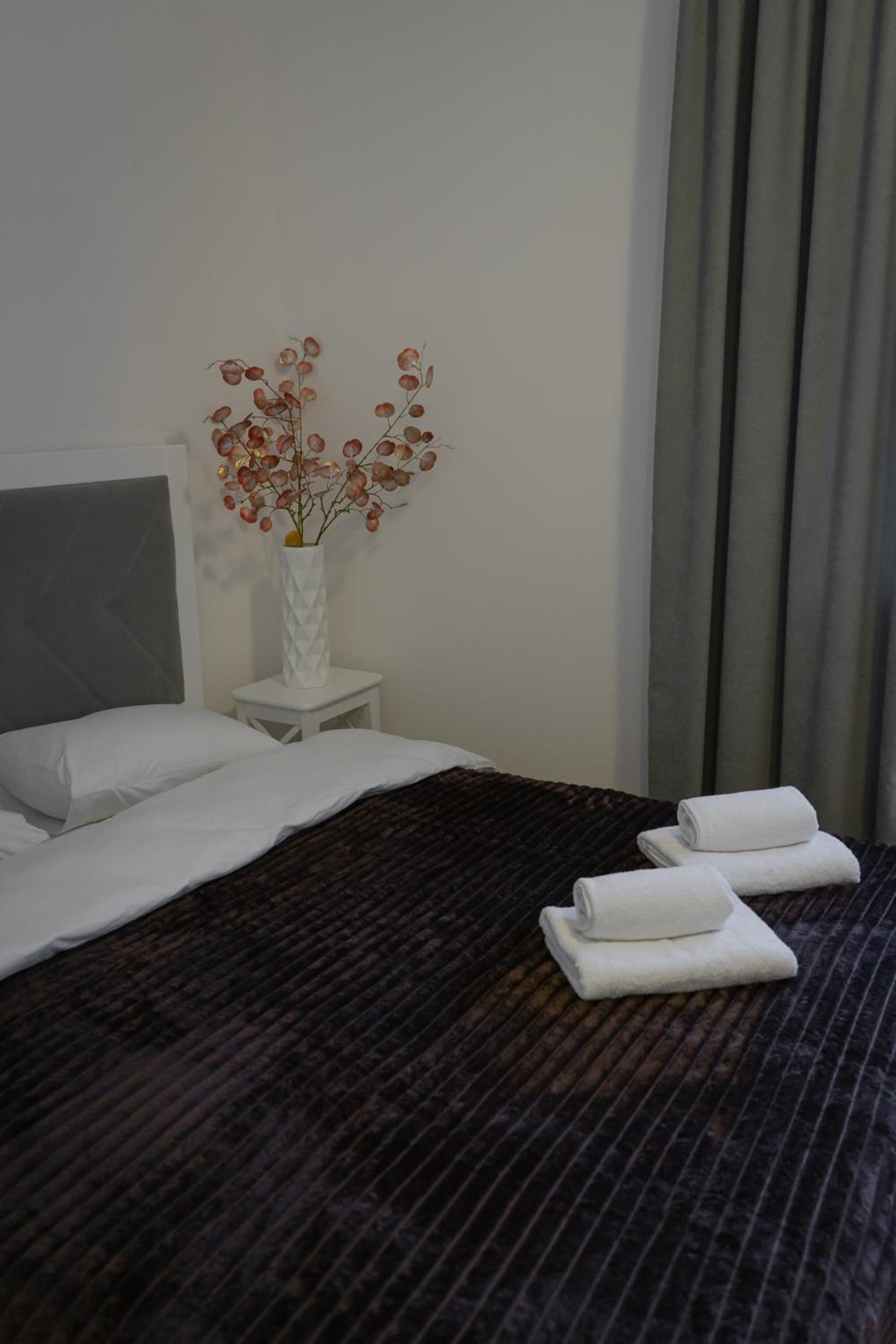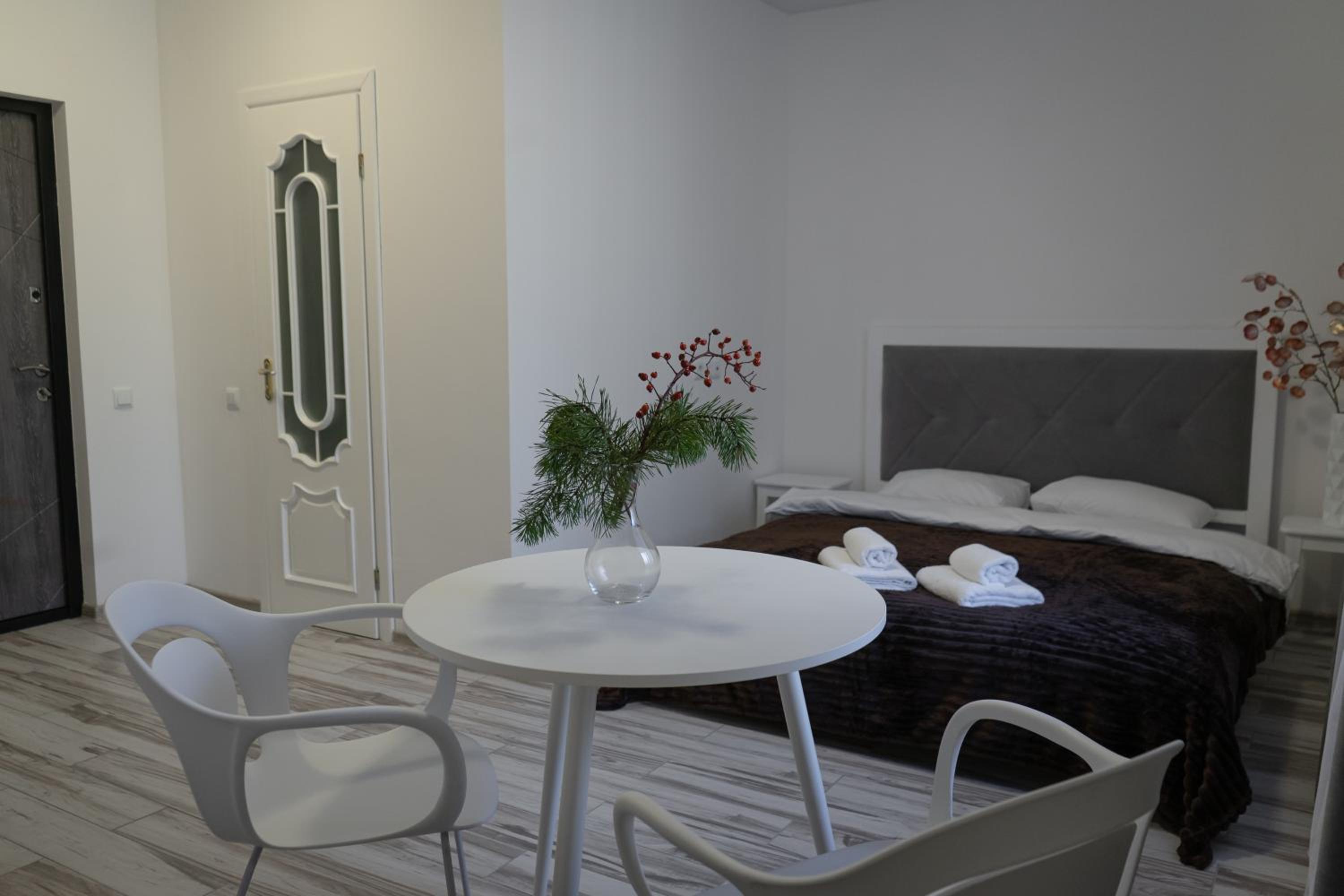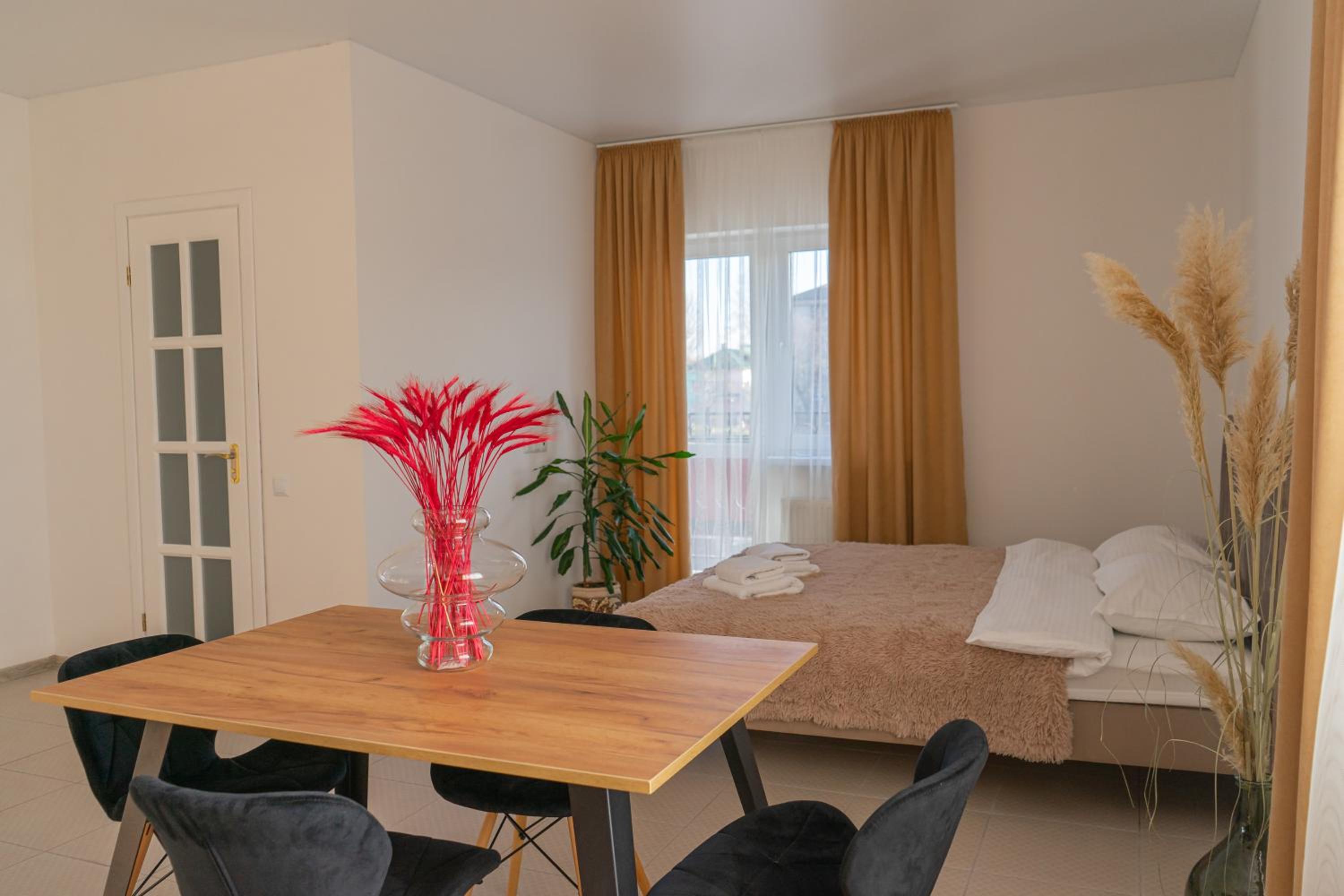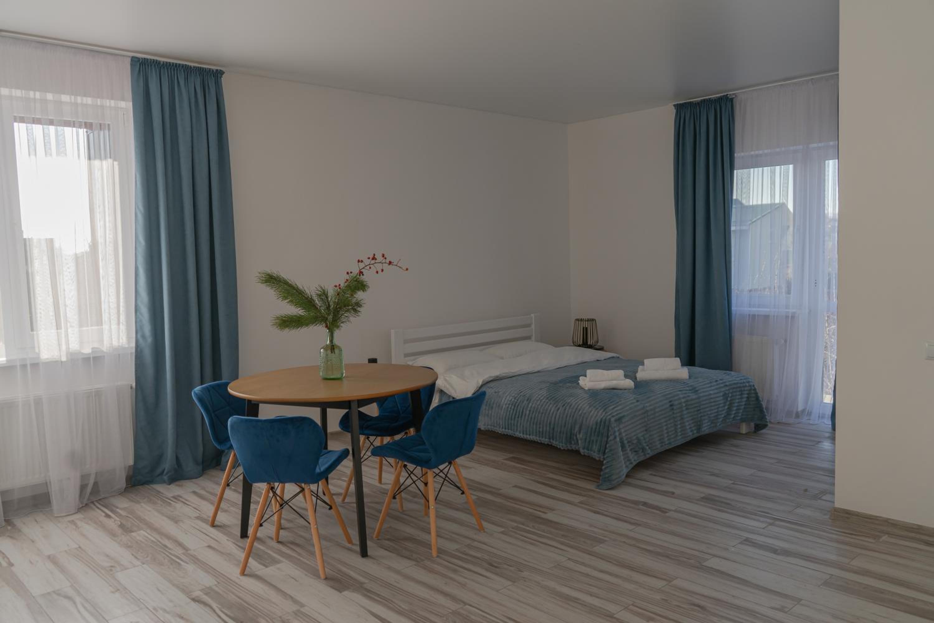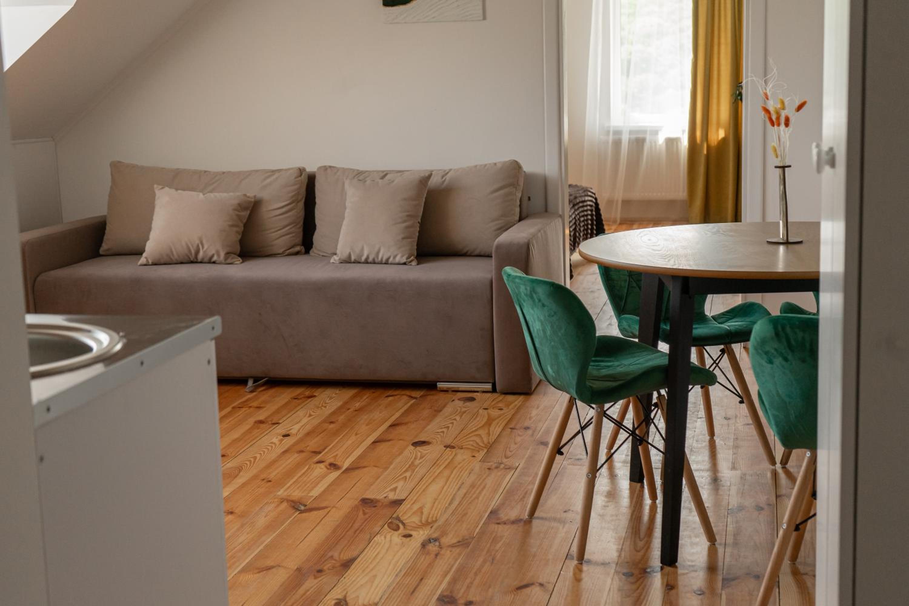 Їхали з запізненням відносно запланованого часу. Важливо було переночувати в номері, який розрахований на 4 осіб не за всі гроші світу, оскільки по дорозі більшість отелів пропонували 2 окремих номери. Саме ці апартаменти знаходилися по дорозі, що дуже зручно, запропонували необхідне нам розміщення, чистий номер, сучасний ремонт, в номері є все необхідне для самостійного приготування їжі (посуд, мікрохвильовка, індукційна піч, чайник). Привітні адміністартори. Є можливість купити готову їжу.